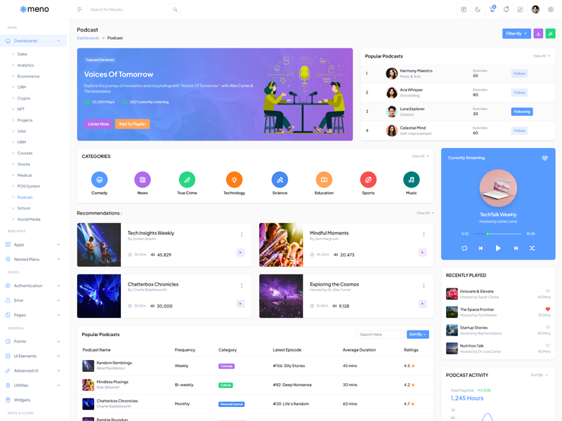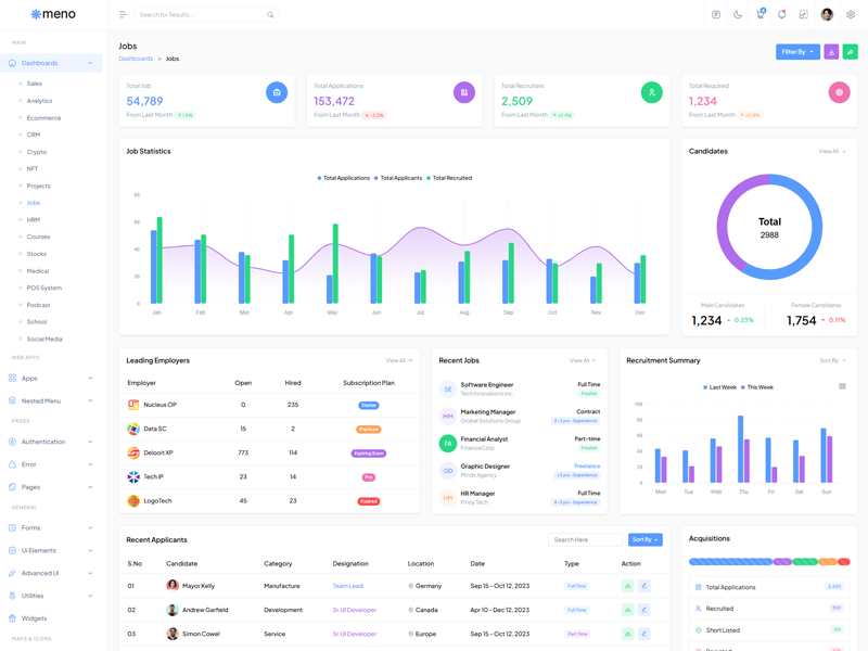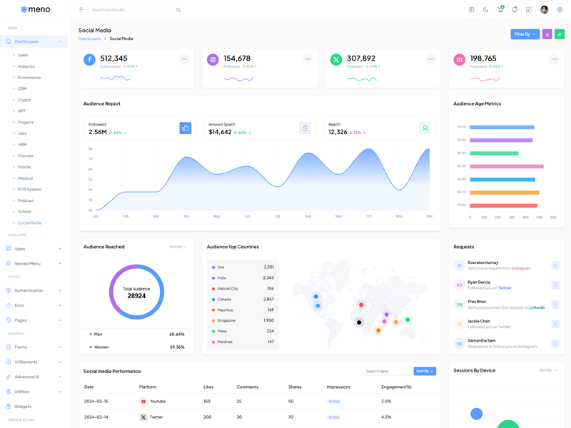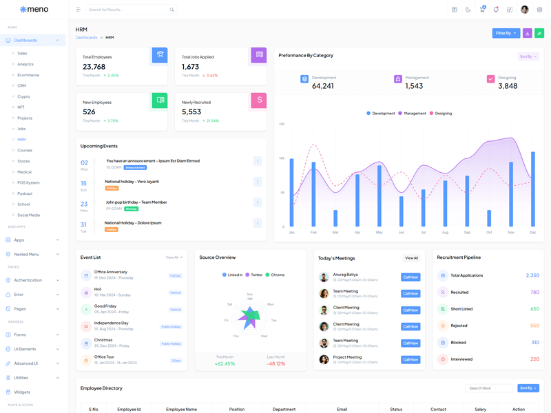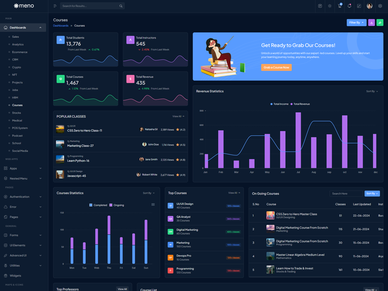 Meno NextJS App-Router Typescript React Bootstrap Admin Template Main Features