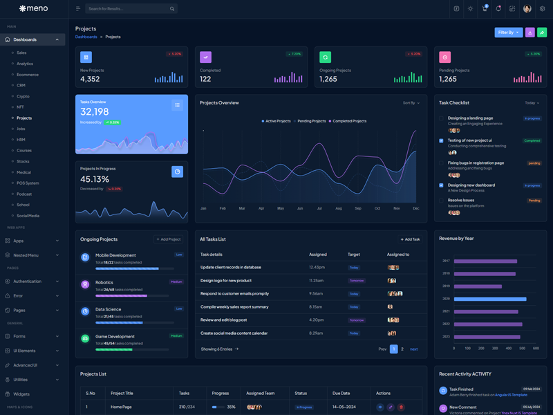 The Meno NextJS App-Router Typescript React Bootstrap admin template comes packed with ready-to-use features, providing numerous pre-built components that save developers valuable time.
