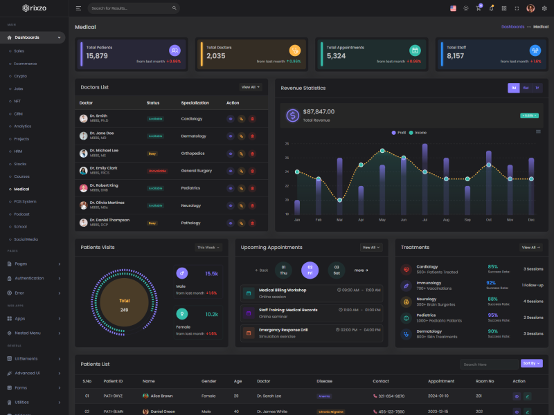 Rixzo offers 16 attractive dashboards with various themes for users to customize the Premium Bootstrap Admin Template based on their preference.
