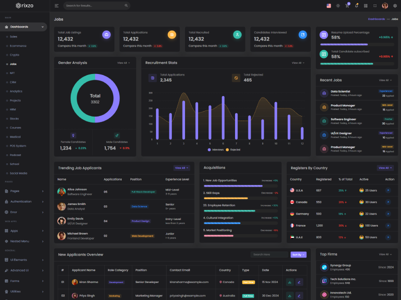 Explore the latest trending features incorporated into the Rixzo Nextjs App-Router Javascript React Bootstrap Admin template, showcasing how we have enhanced and designed our template. When it comes to design, we always keep a close watch on the most trending features.