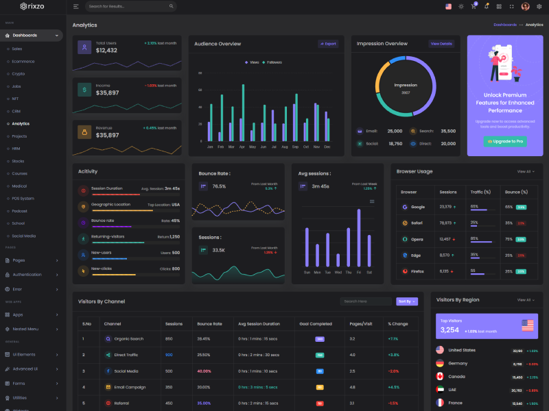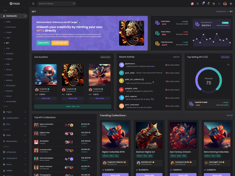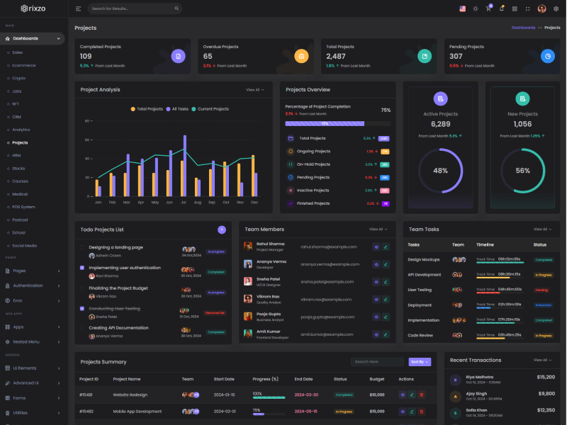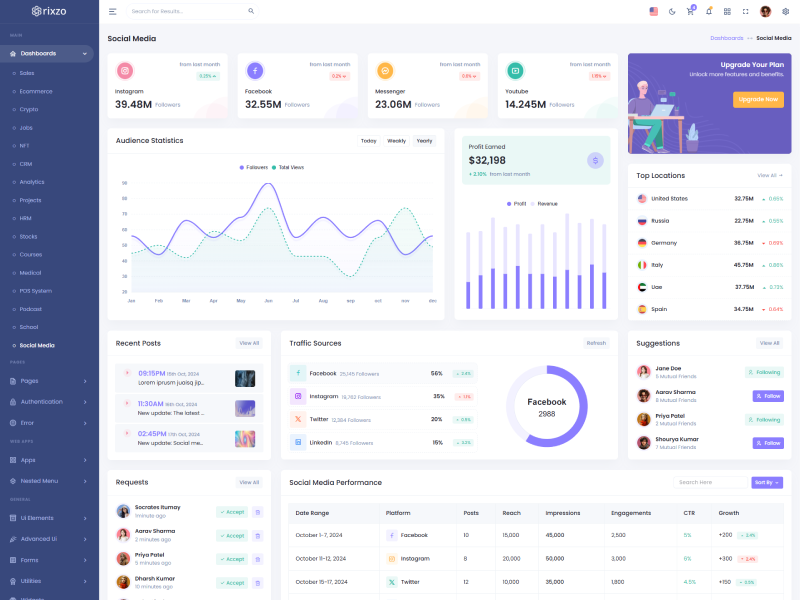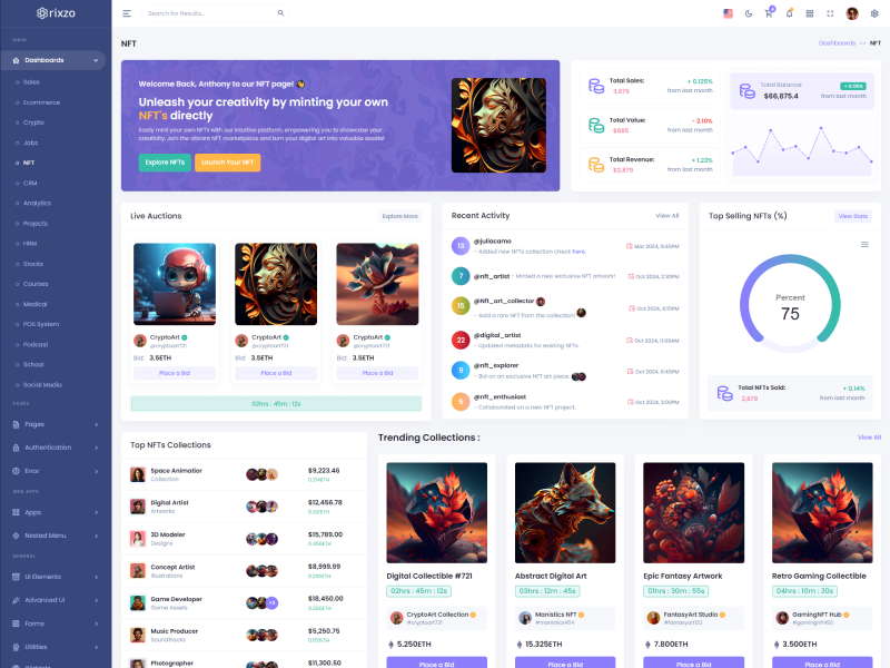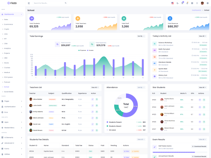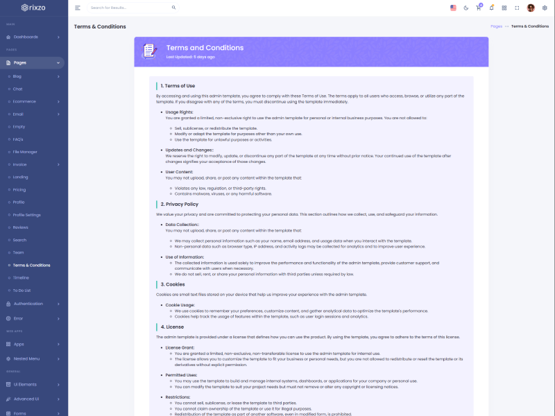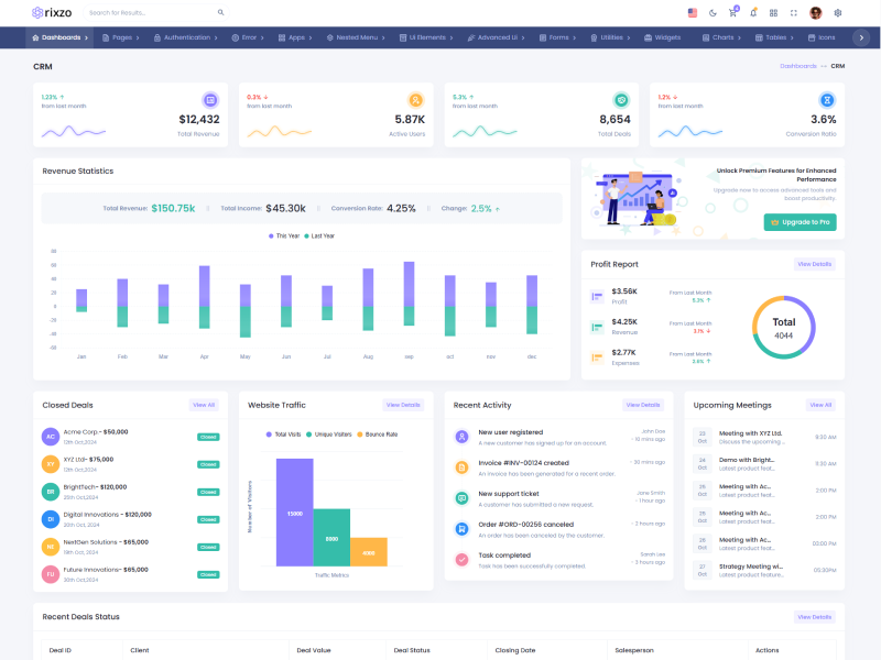 Rixzo NextJs Admin Template Main Features