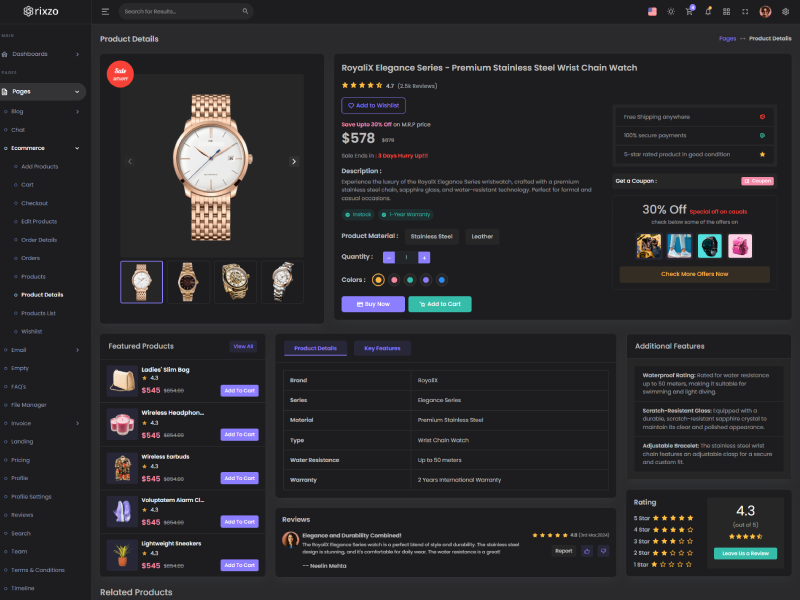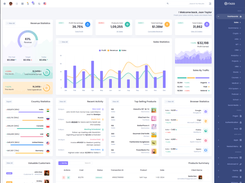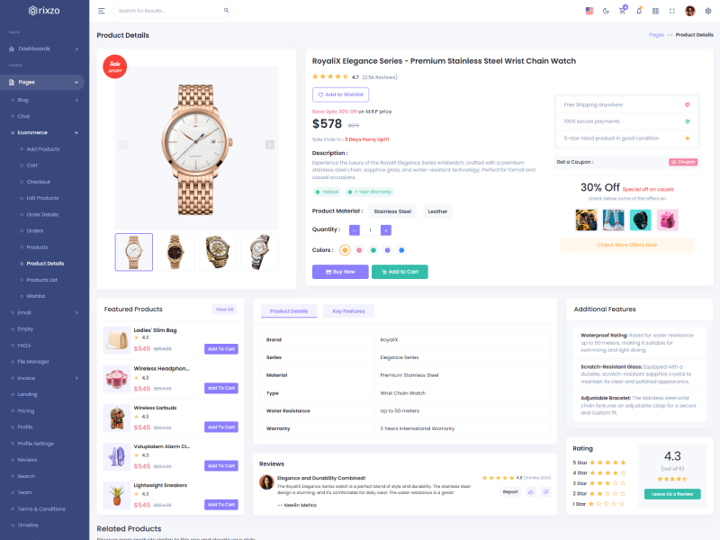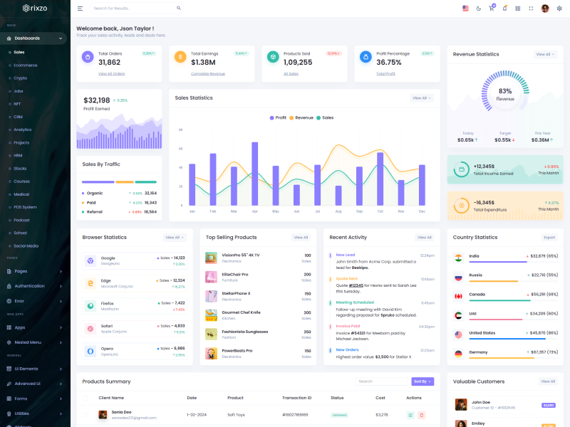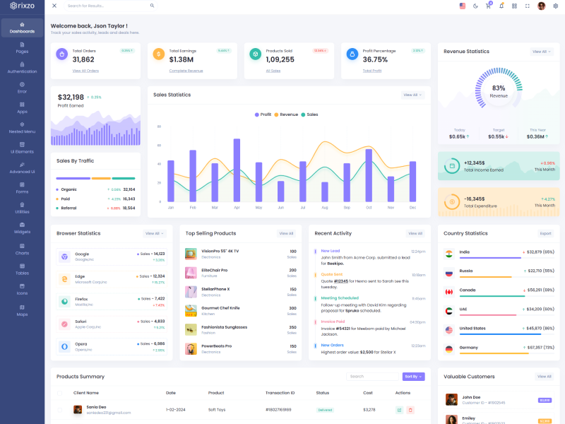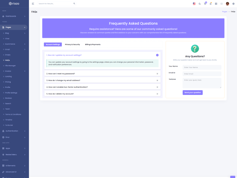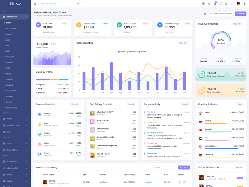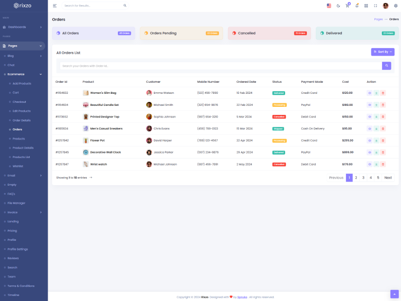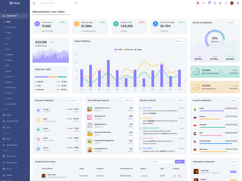 Rixzo admin template comes with ready to use features. It has lots of ready-made features saves more time for developers.
