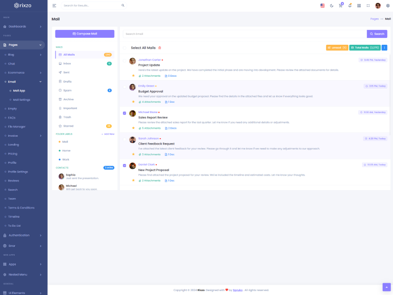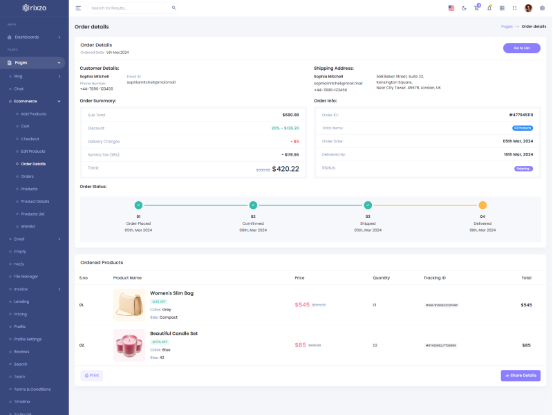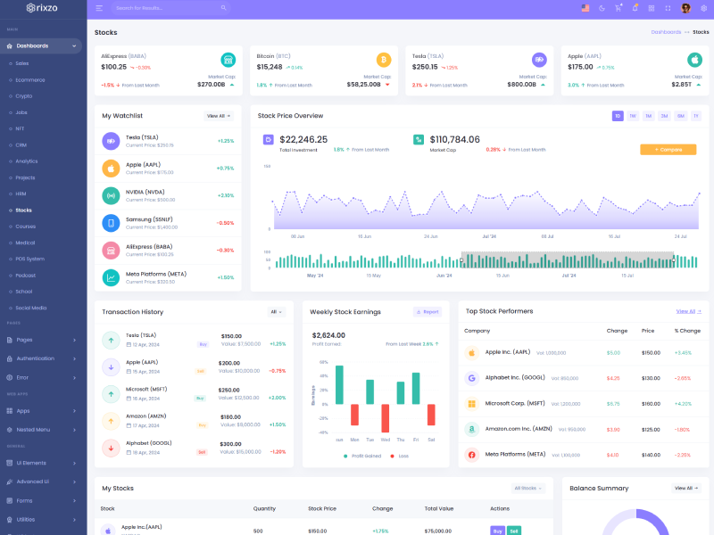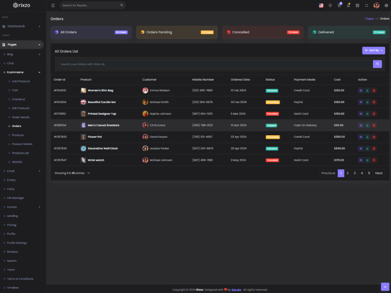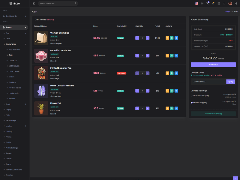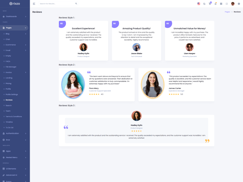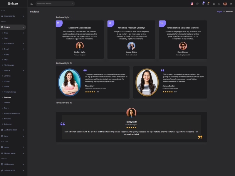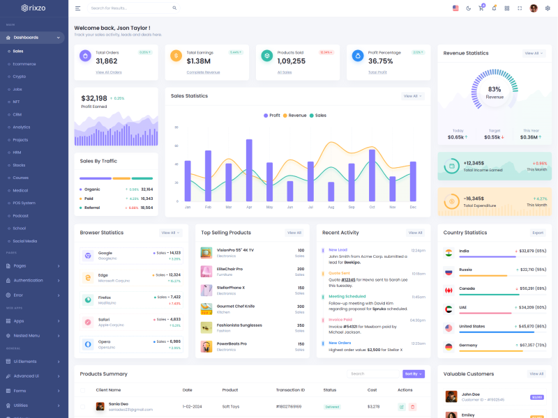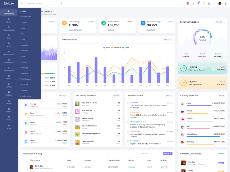 Rixzo admin template comes with ready to use features. It has lots of ready-made features saves more time for developers.