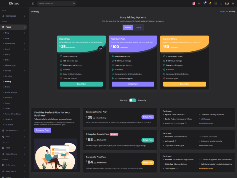 Take a look at the numerous versions we've integrated into the Rixzo Nextjs Premium Admin and Dashboard Template, where you can customize it in countless ways.