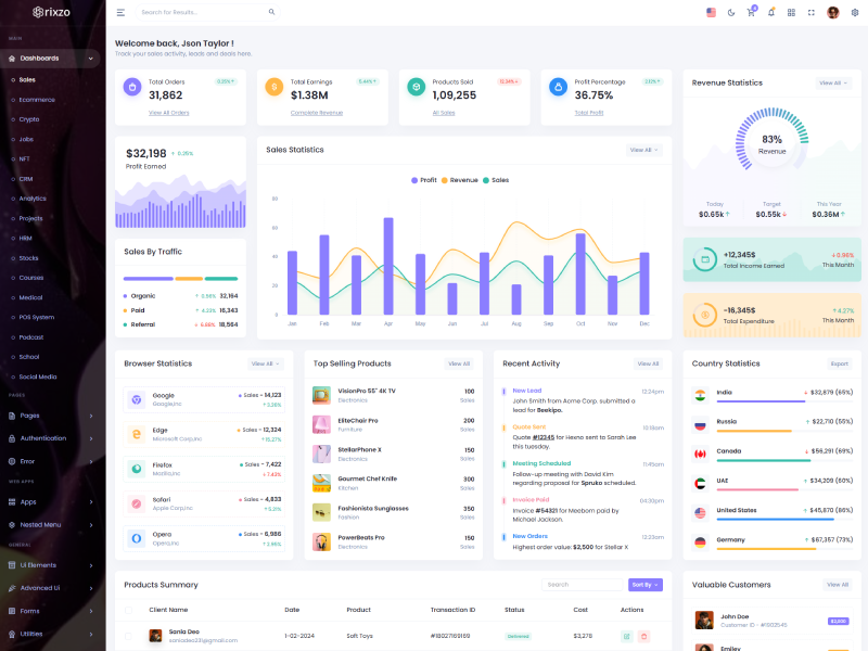 Enjoy lifetime updates for free with your purchase of the Rixzo Admin Dashboard template. For any questions our support team is always available to assist you.