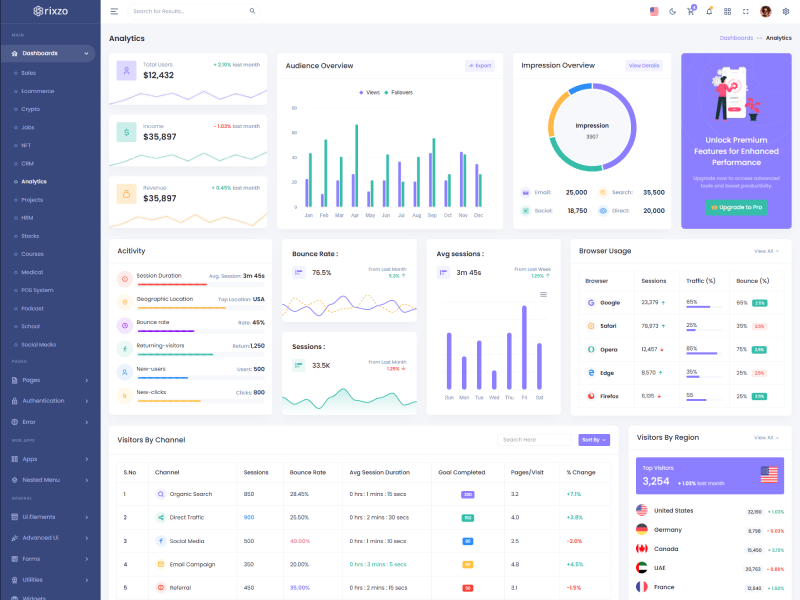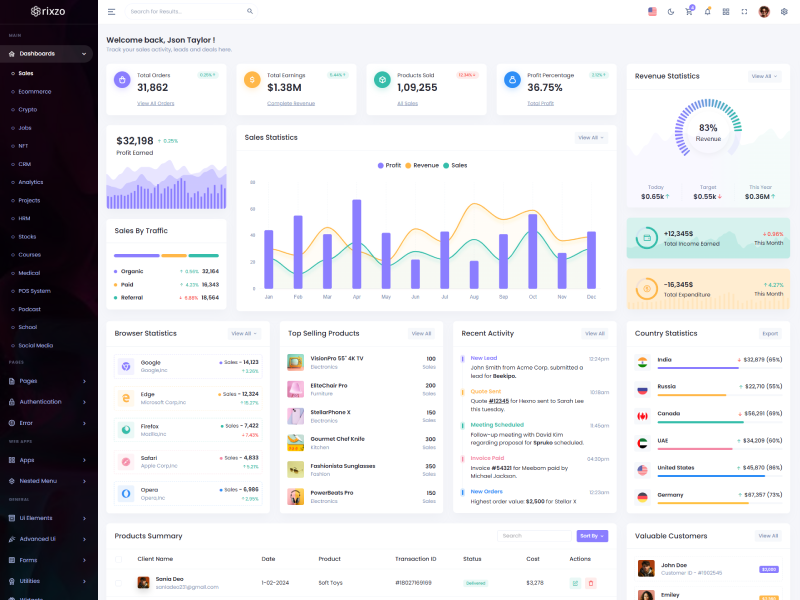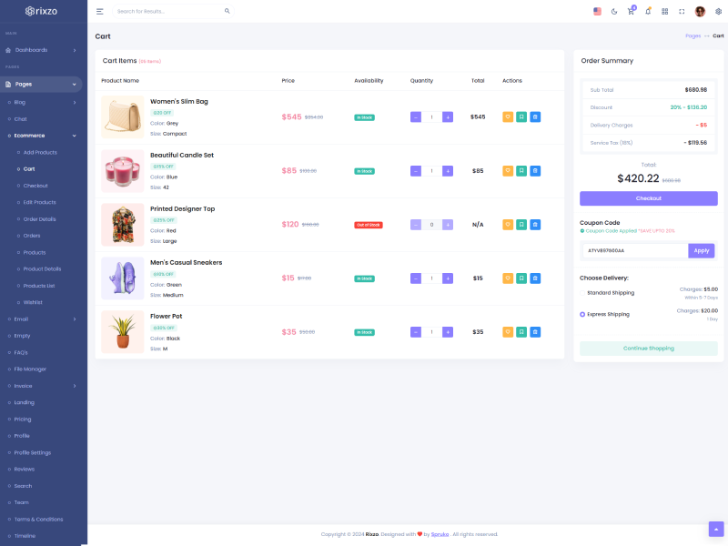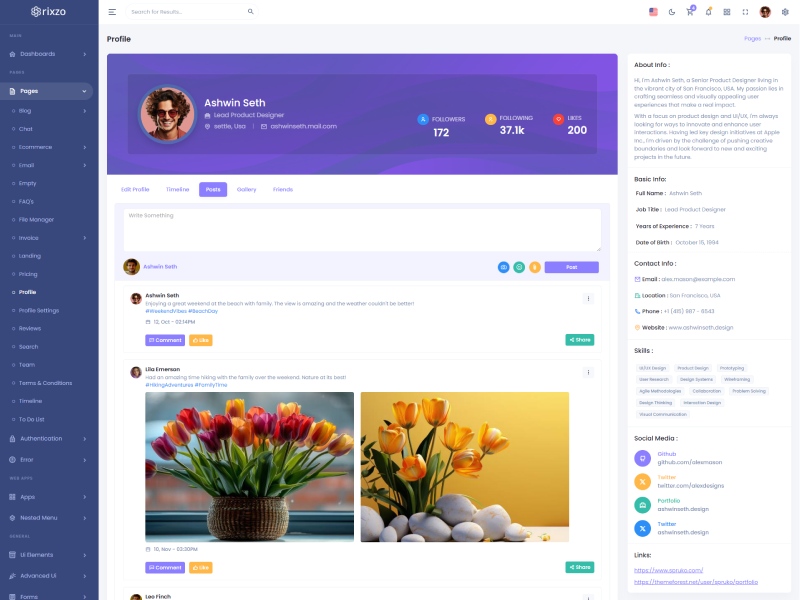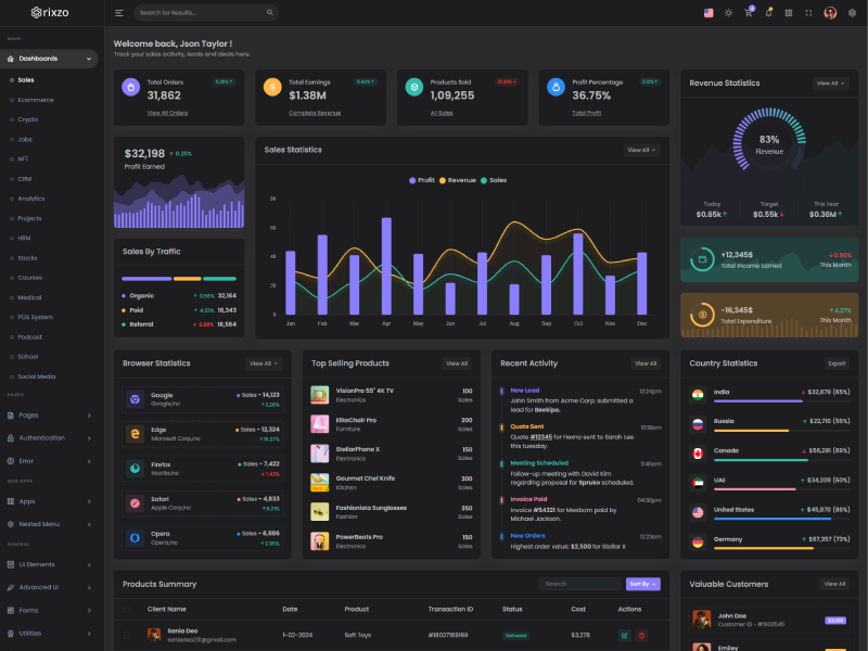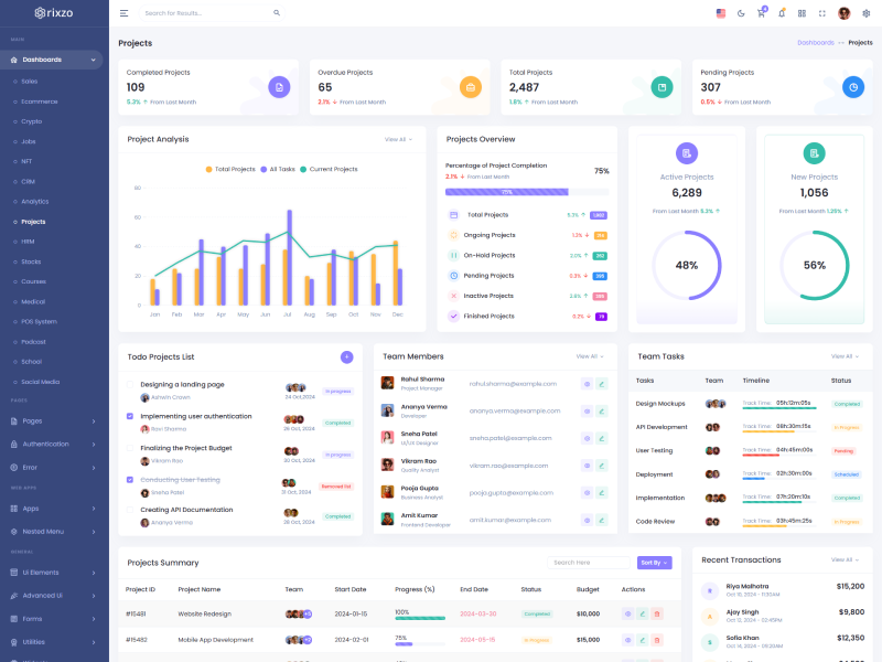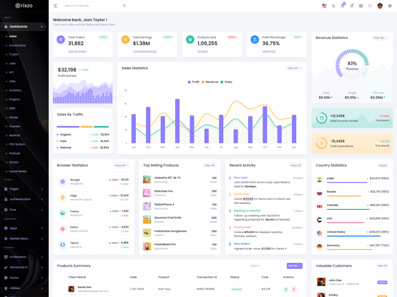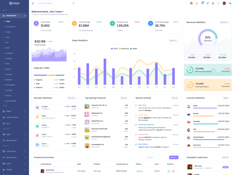 Rixzo admin template comes with ready to use features. It has lots of ready-made features saves more time for developers.