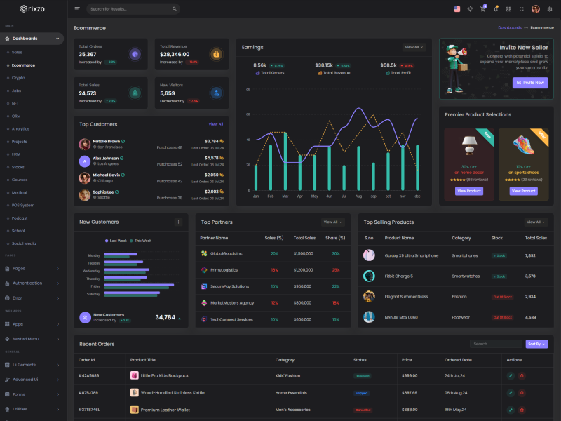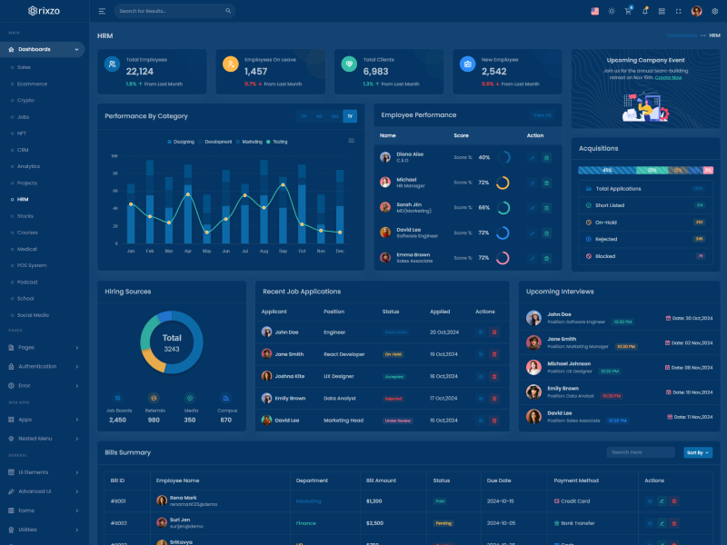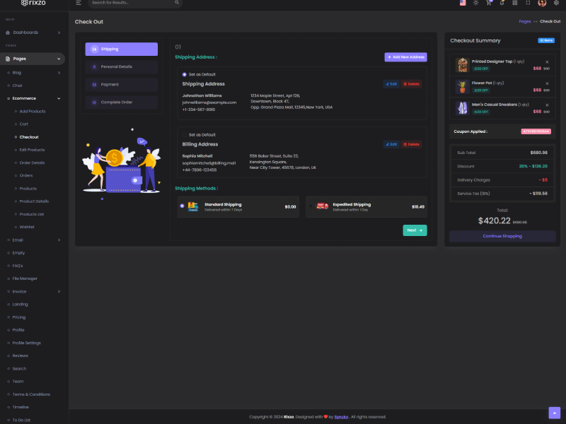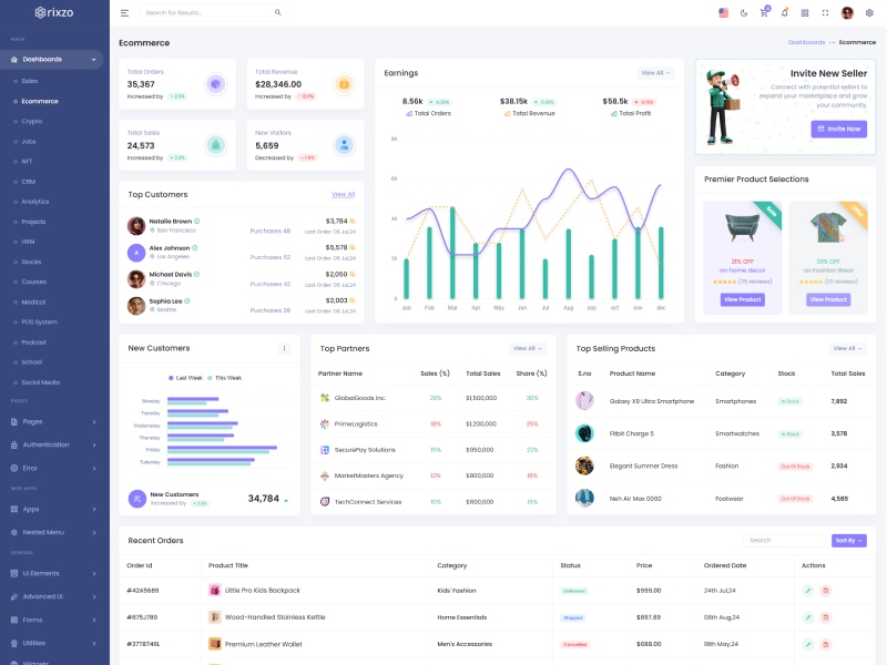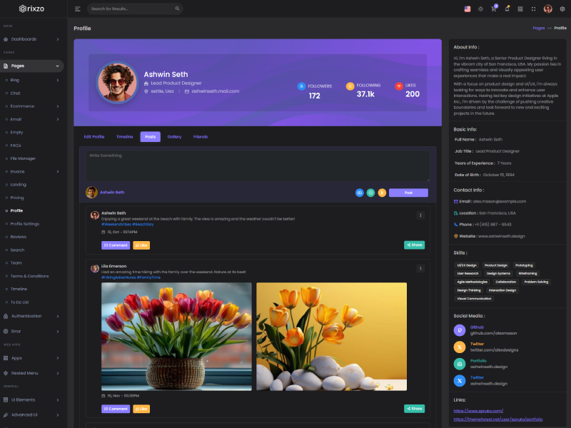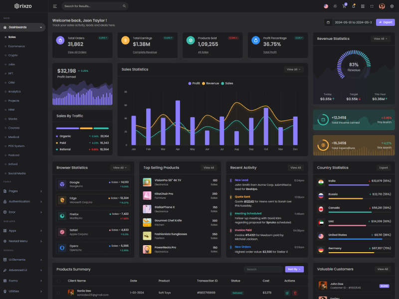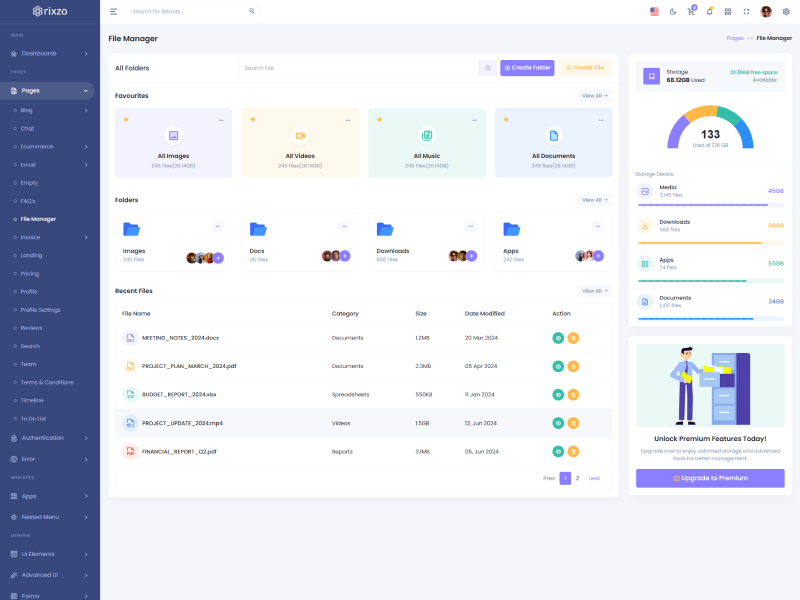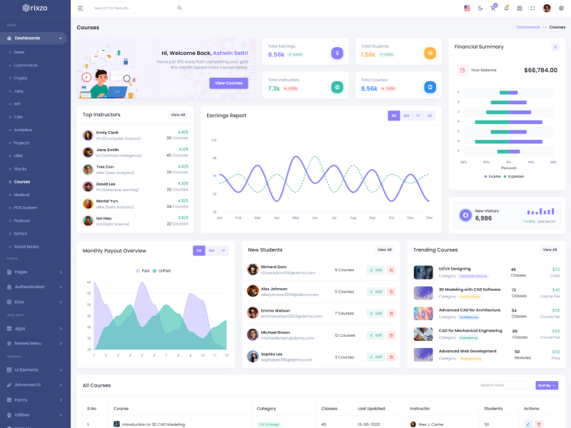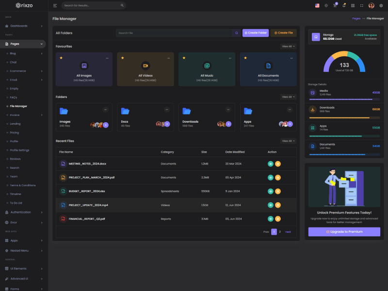 Rixzo admin template comes with ready to use features. It has lots of ready-made features saves more time for developers.