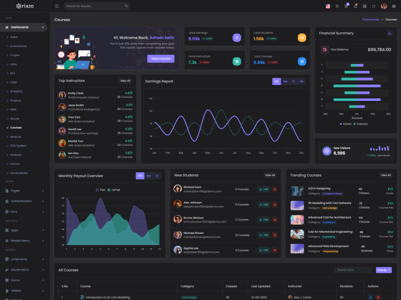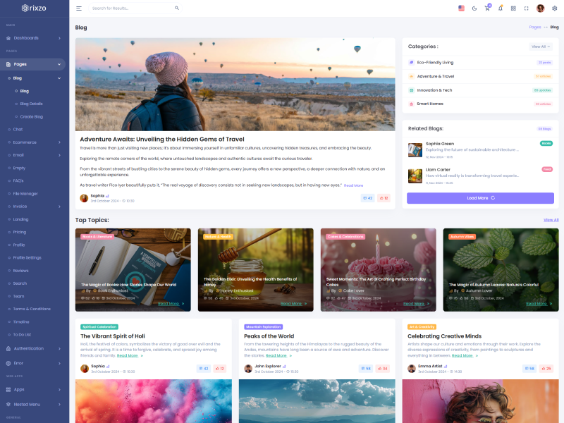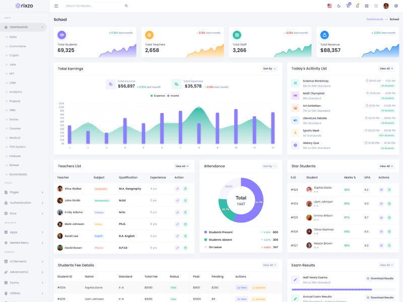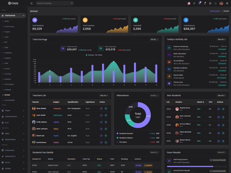 Explore the latest trending features incorporated into the Rixzo Nextjs App-Router Typescript React Bootstrap Admin template, showcasing how we have enhanced and designed our template. When it comes to design, we always keep a close watch on the most trending features.