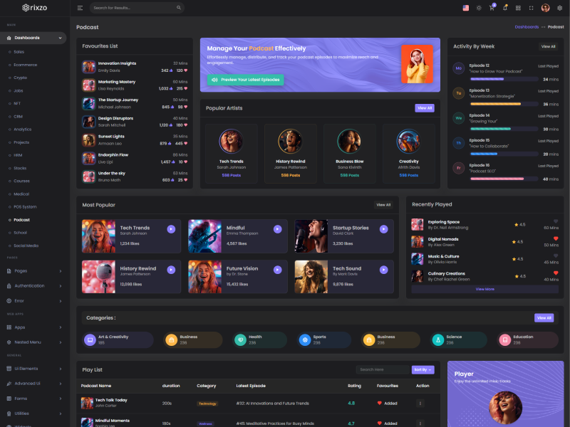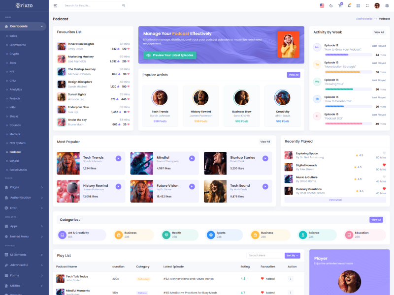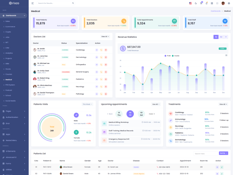 Rixzo offers 16 attractive dashboards with various themes for users to customize the Premium Bootstrap Admin Template based on their preference.
