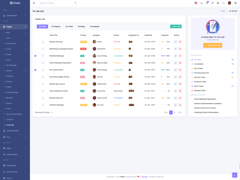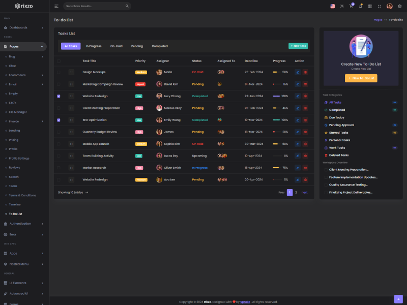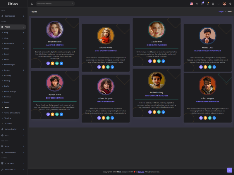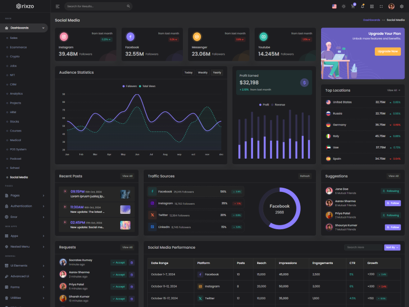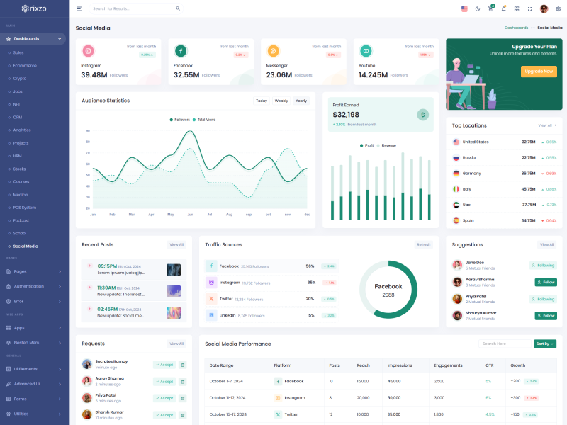 Rixzo - Premium NextJs App-Router Typescript React Bootstrap Admin & Dashboard Template boasts essential features such as design quality, compatibility with your front-end framework, responsiveness, ease of customization, comprehensive documentation, and dedicated support. Additionally, it includes integrated plugins and other supplementary features.