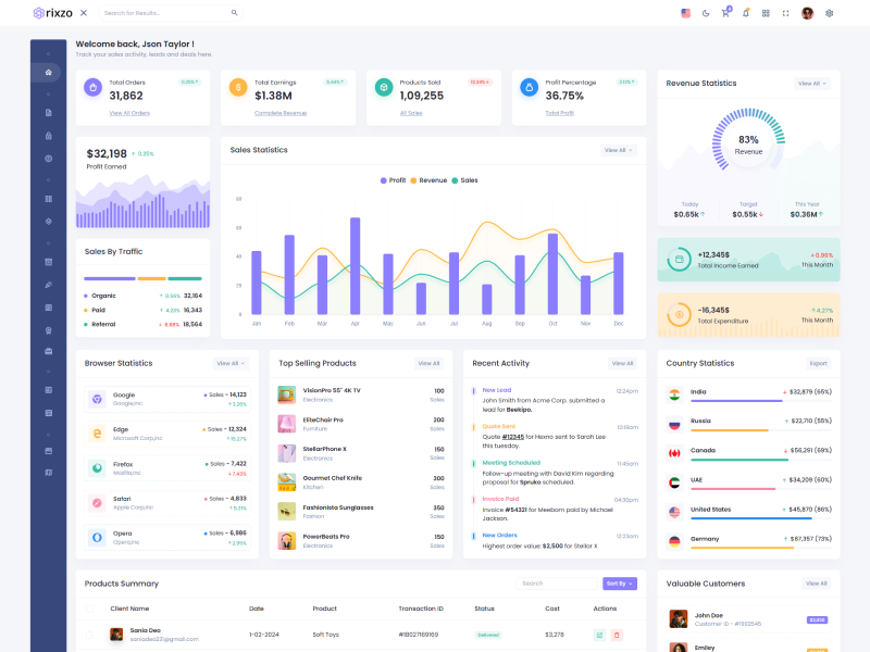 Enjoy lifetime updates for free with your purchase of the Rixzo Admin Dashboard template. For any questions our support team is always available to assist you.