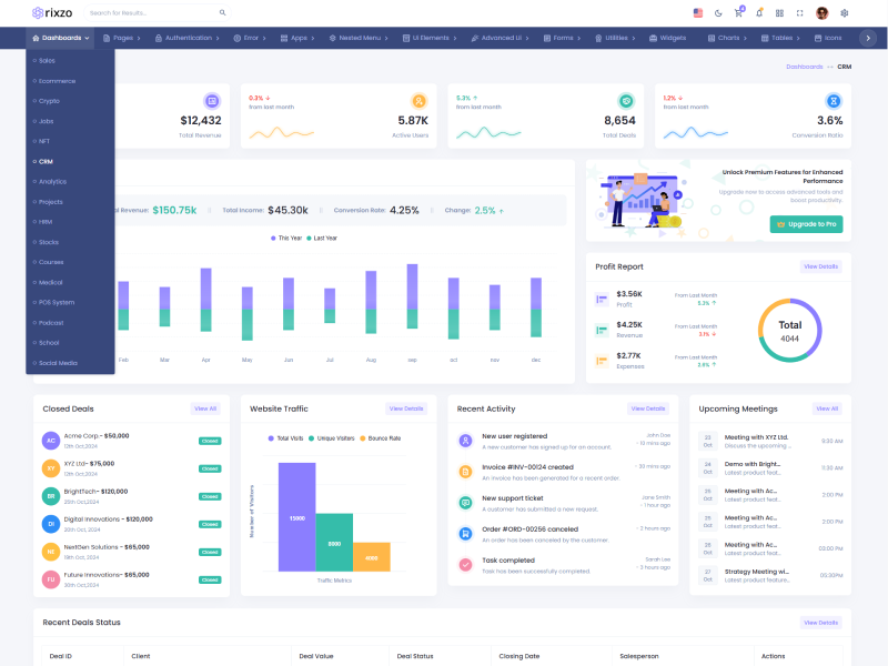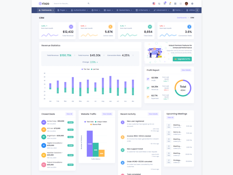 Take a look at the numerous versions we've integrated into the Rixzo Nextjs Premium Admin and Dashboard Template, where you can customize it in countless ways.