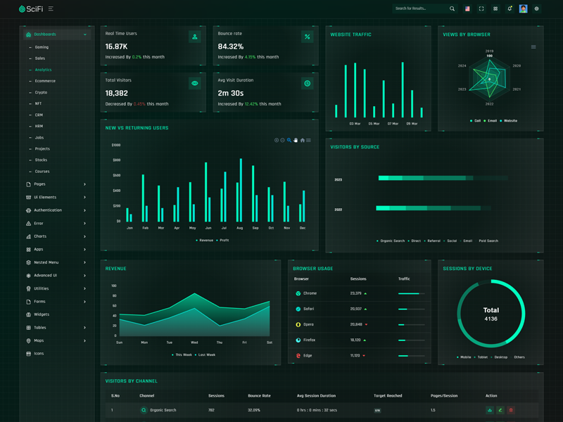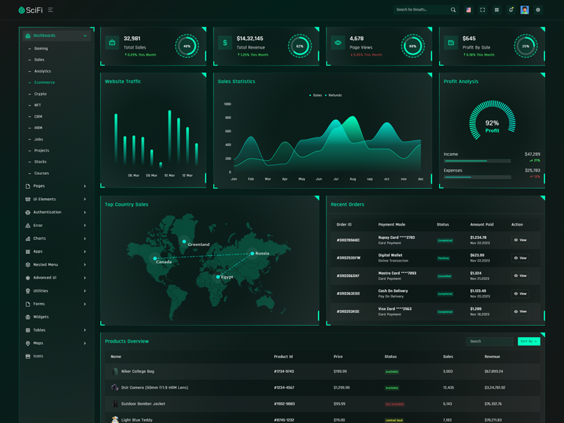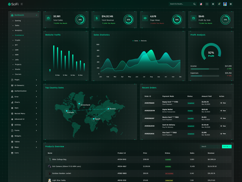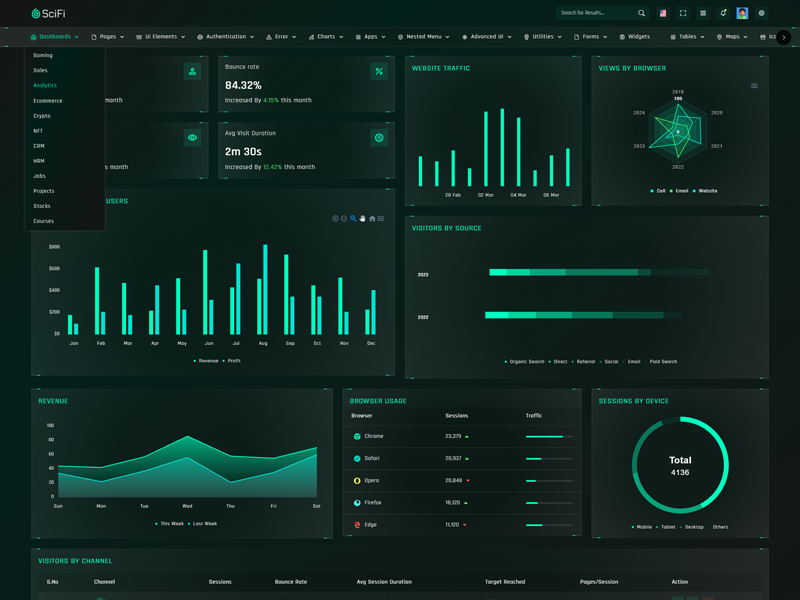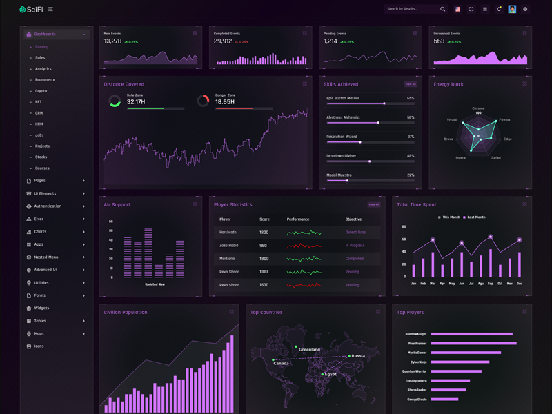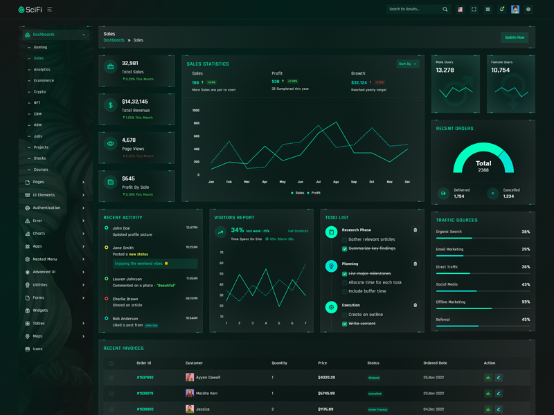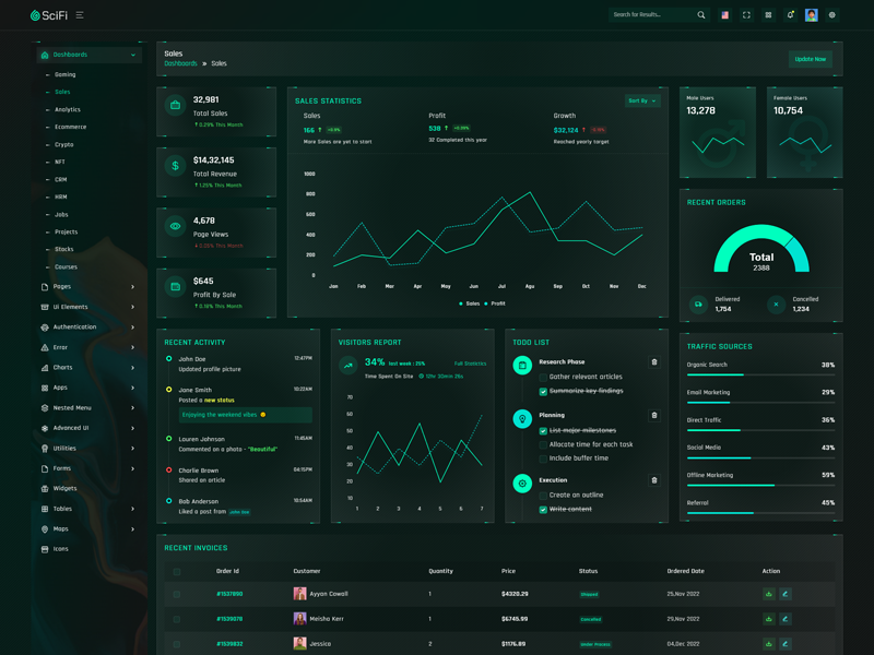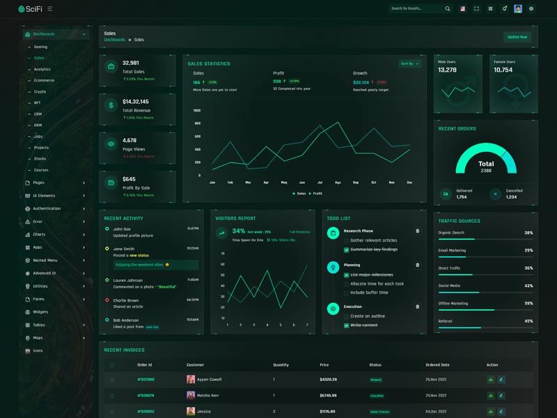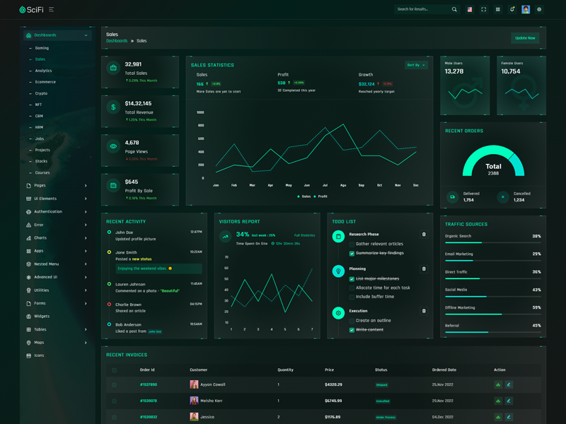 Explore the latest trending features incorporated into the SciFi Admin template, showcasing how we have enhanced and designed our template. When it comes to design, we always keep a close watch on the most trending features.