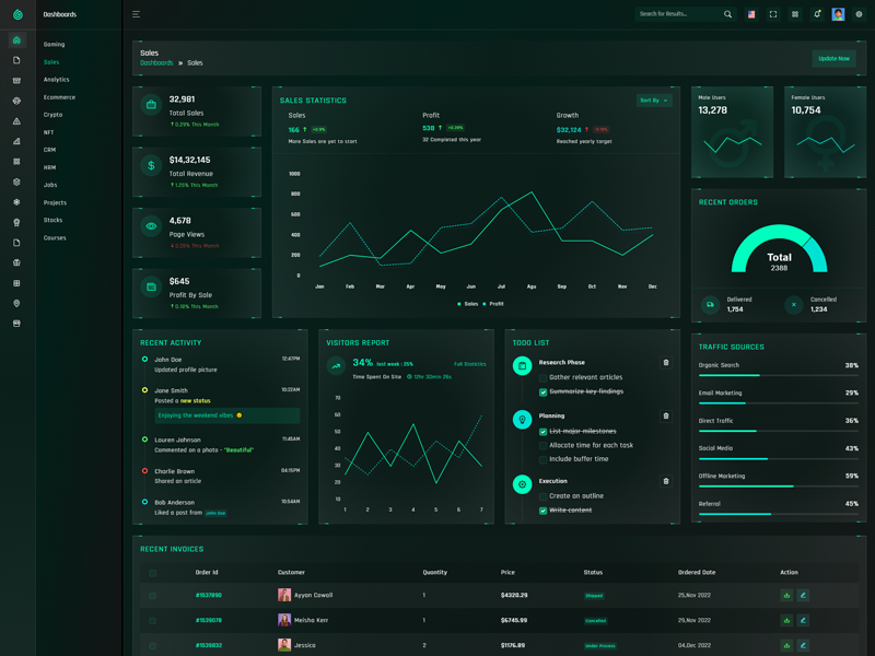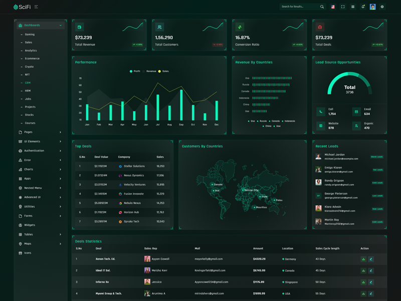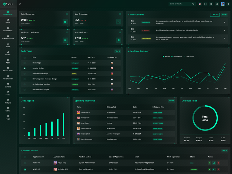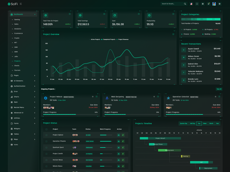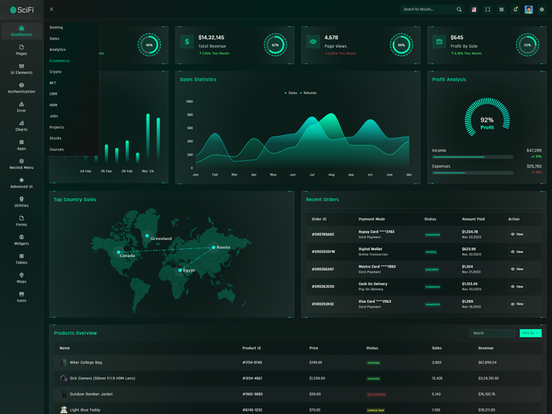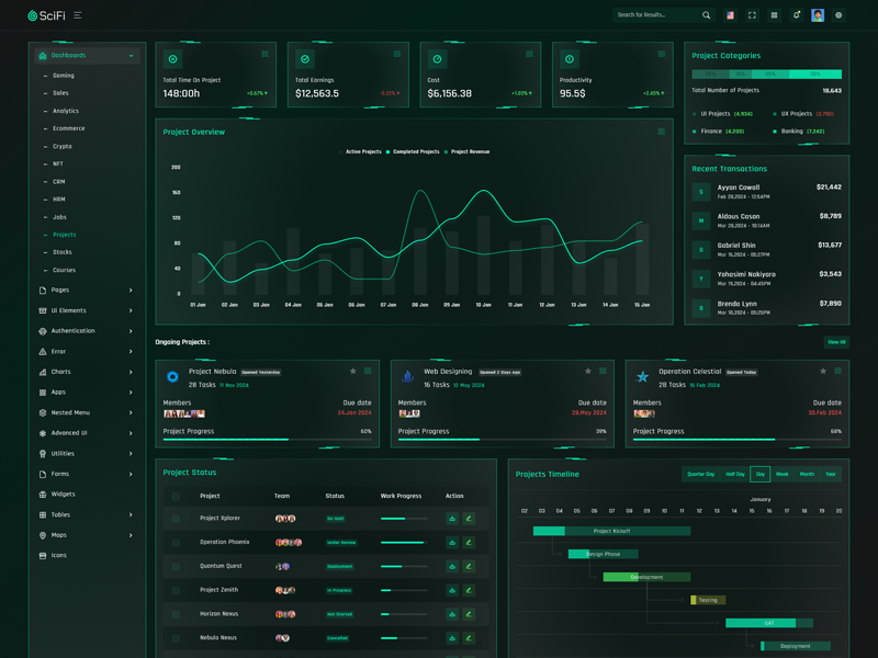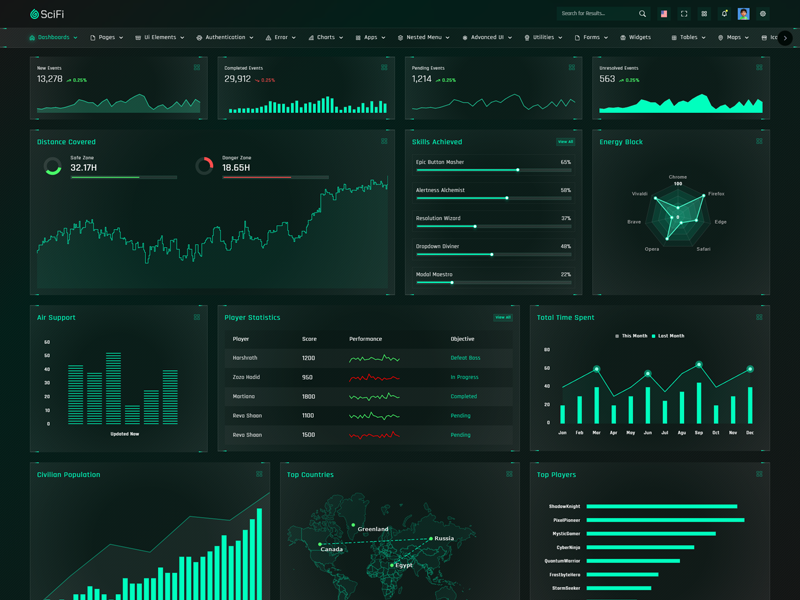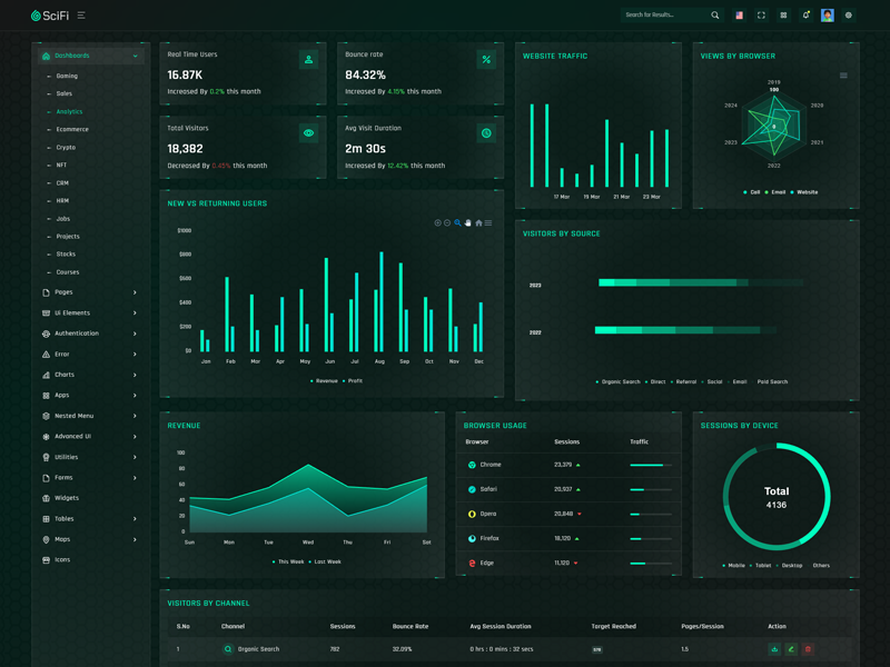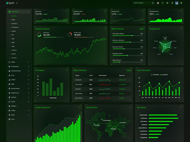 Explore the latest trending features incorporated into the SciFi Admin template, showcasing how we have enhanced and designed our template. When it comes to design, we always keep a close watch on the most trending features.