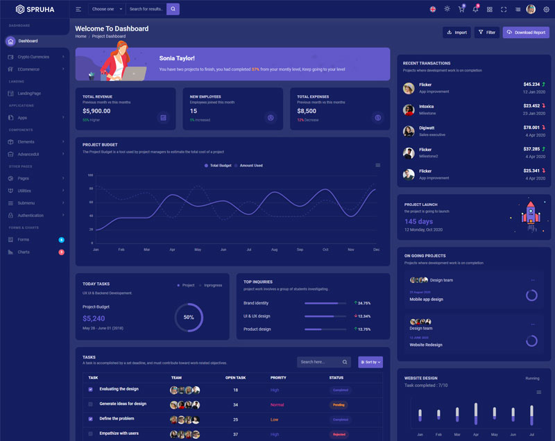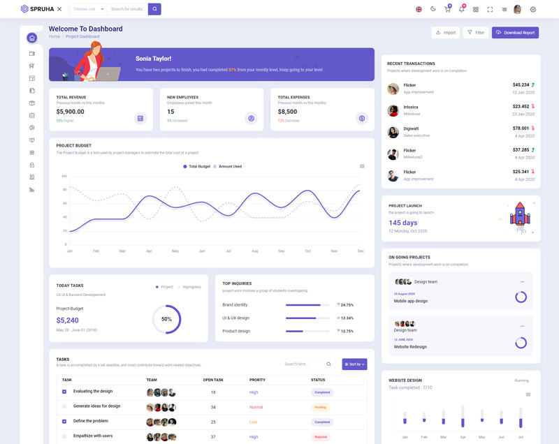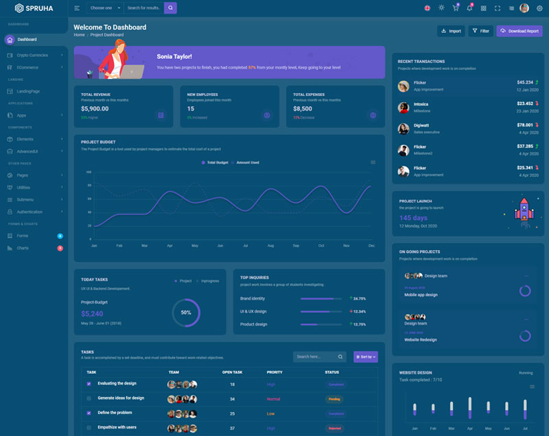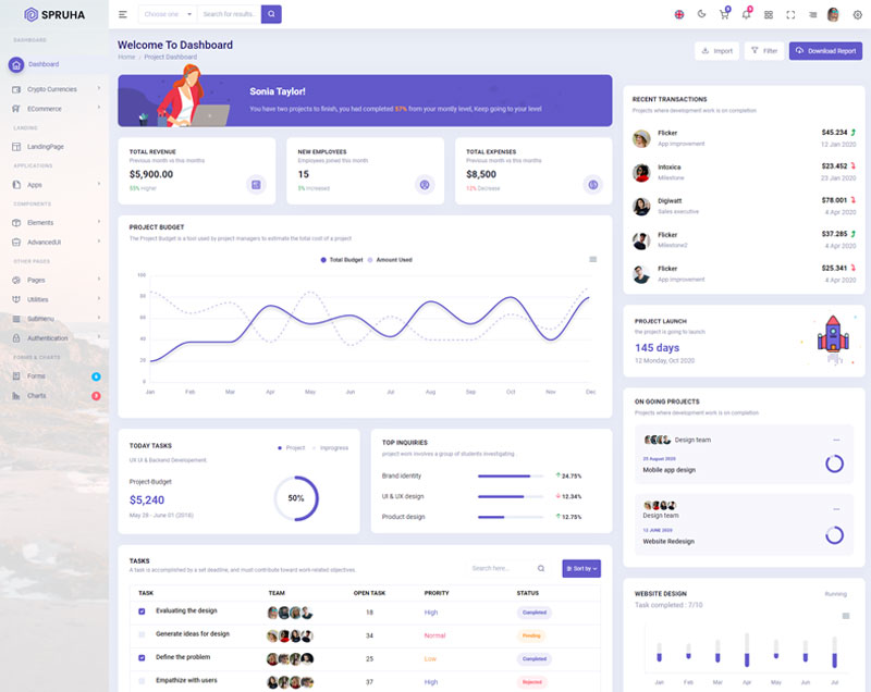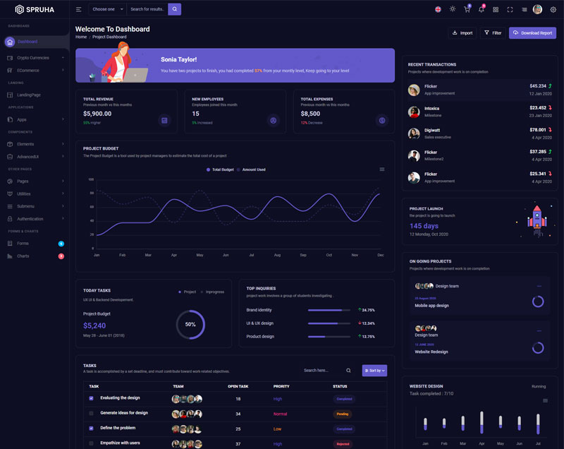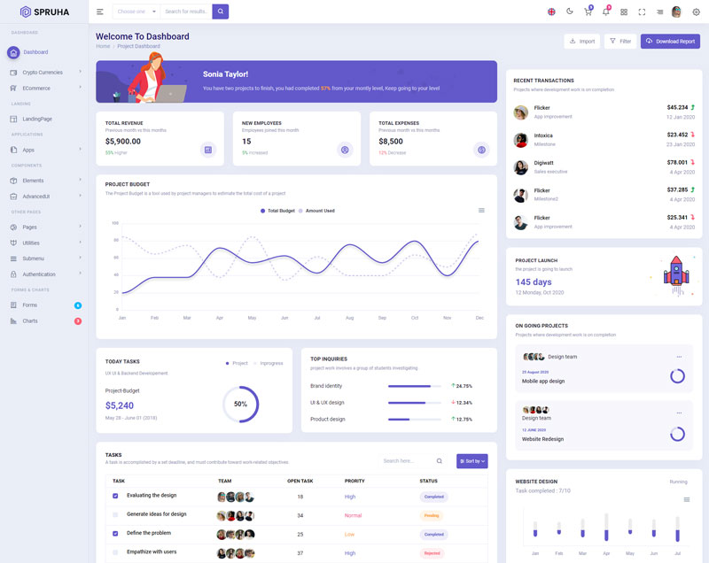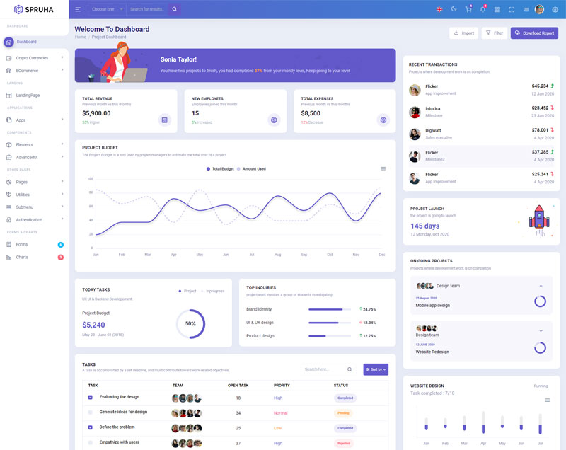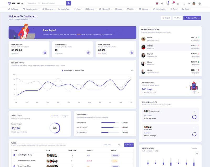 Spruha NextJS Typescript App-Router React-Bootstrap Admin Dashboard Template boasts essential features such as design quality, compatibility with your front-end framework, responsiveness, ease of customization, comprehensive documentation, and dedicated support. Additionally, it includes integrated plugins and other supplementary features.