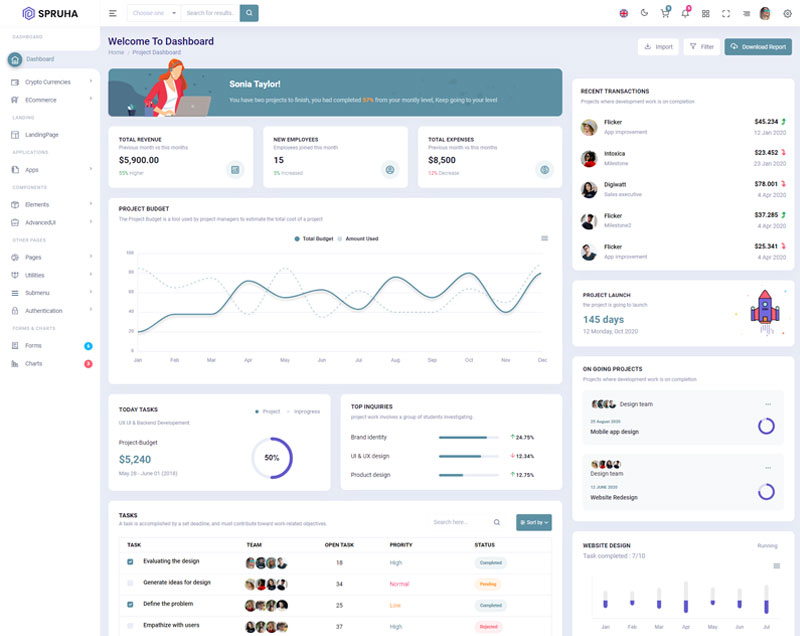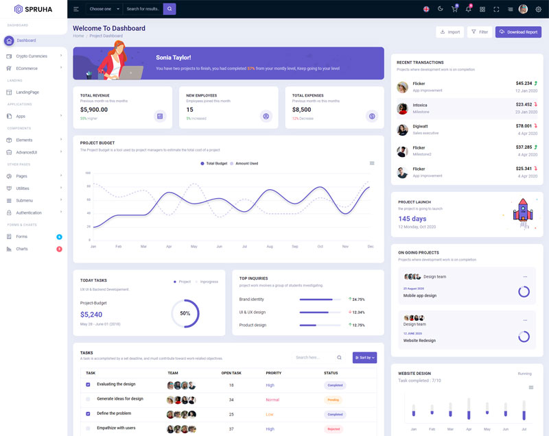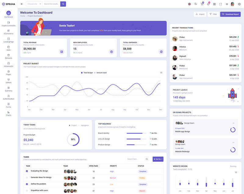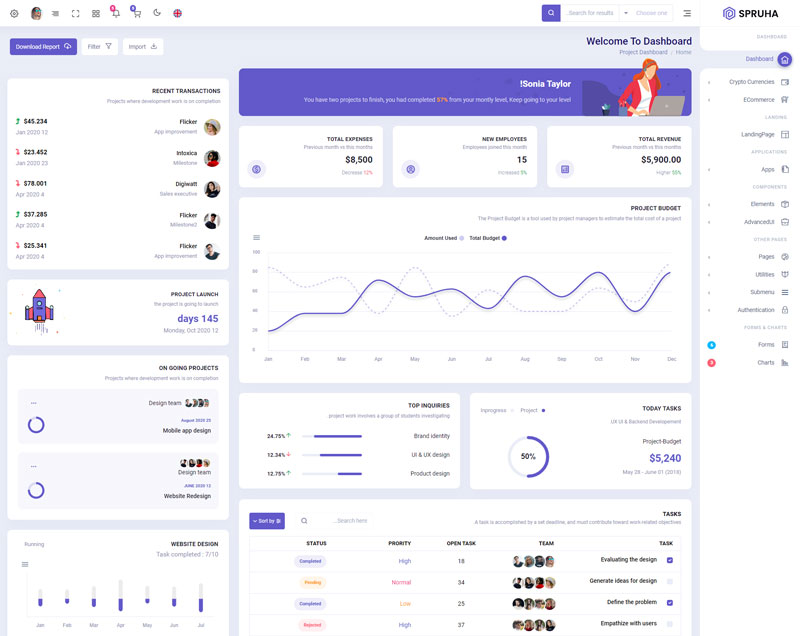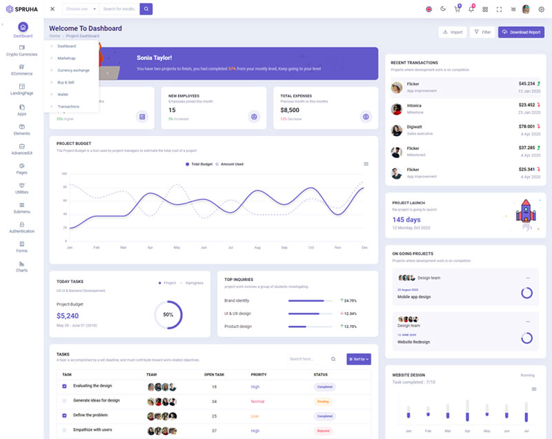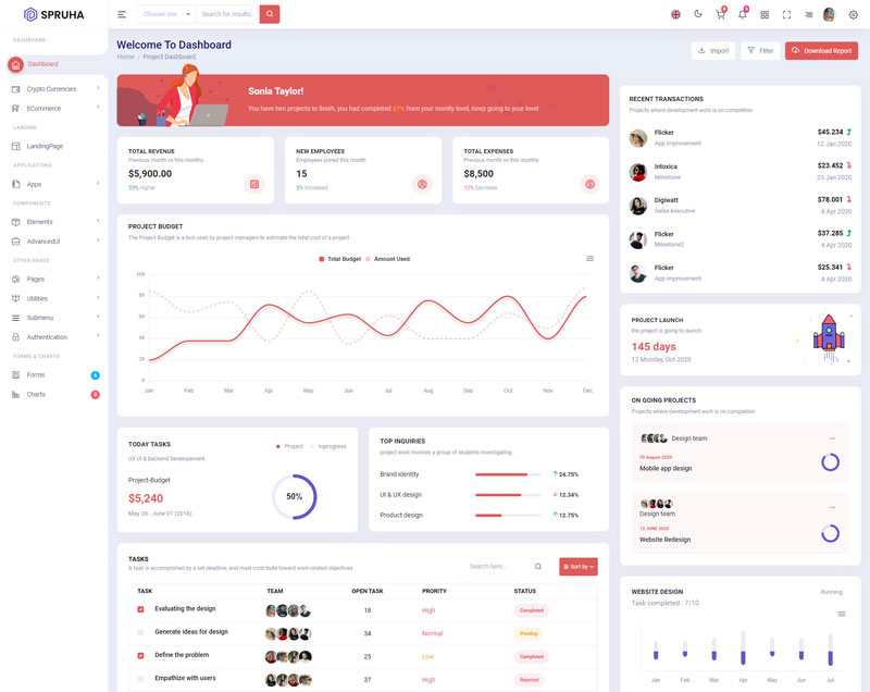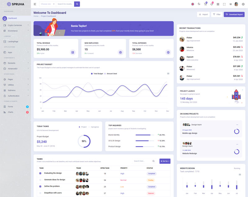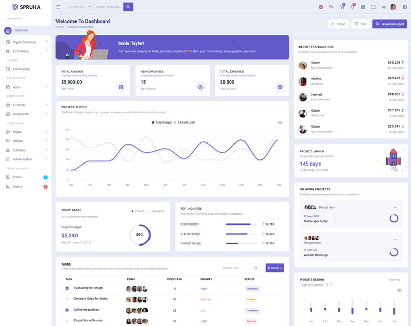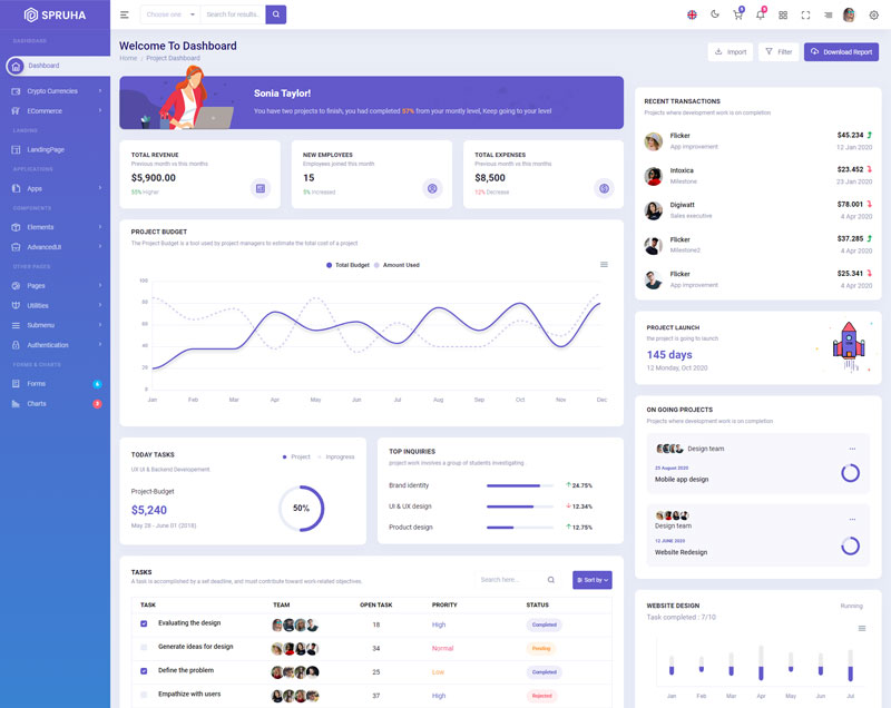 Spruha NextJS Typescript App-Router React-Bootstrap Admin Dashboard Template boasts essential features such as design quality, compatibility with your front-end framework, responsiveness, ease of customization, comprehensive documentation, and dedicated support. Additionally, it includes integrated plugins and other supplementary features.