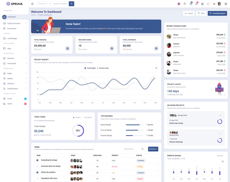 The Spruha NextJS Typescript App-Router React-Bootstrap Admin Dashboard Template comes with a wealth of ready-to-use features, saving developers significant time with its array of pre-built functionalities.