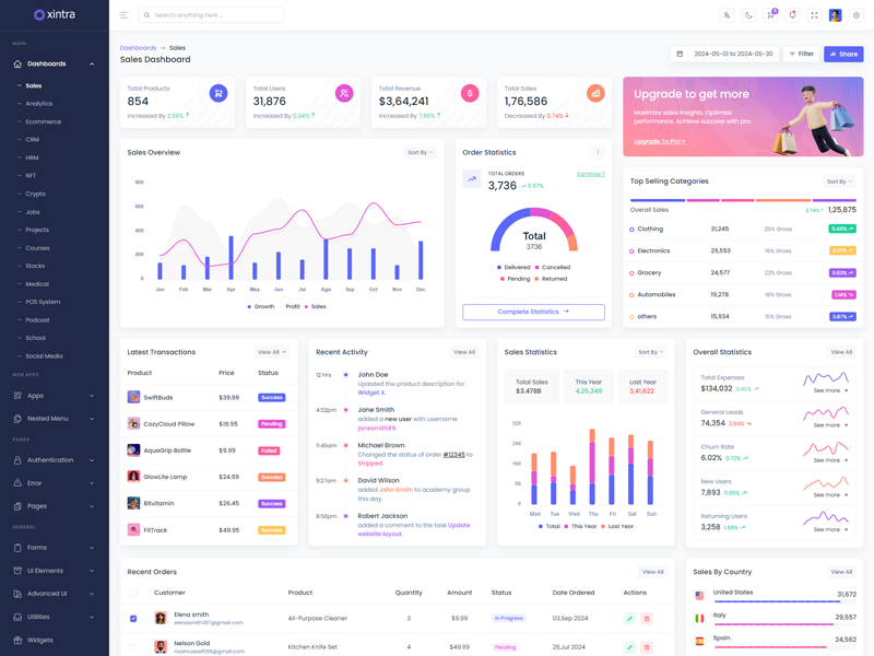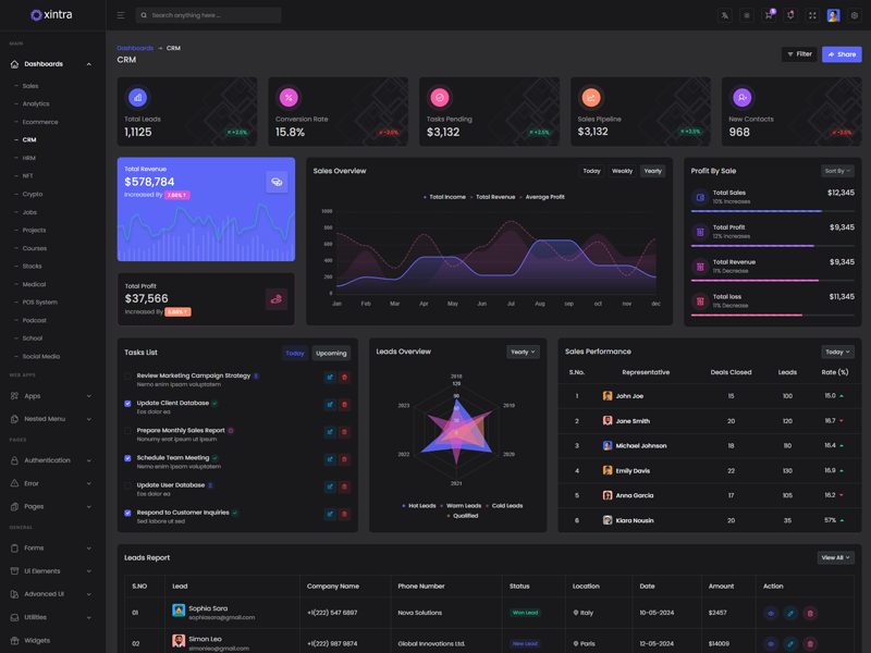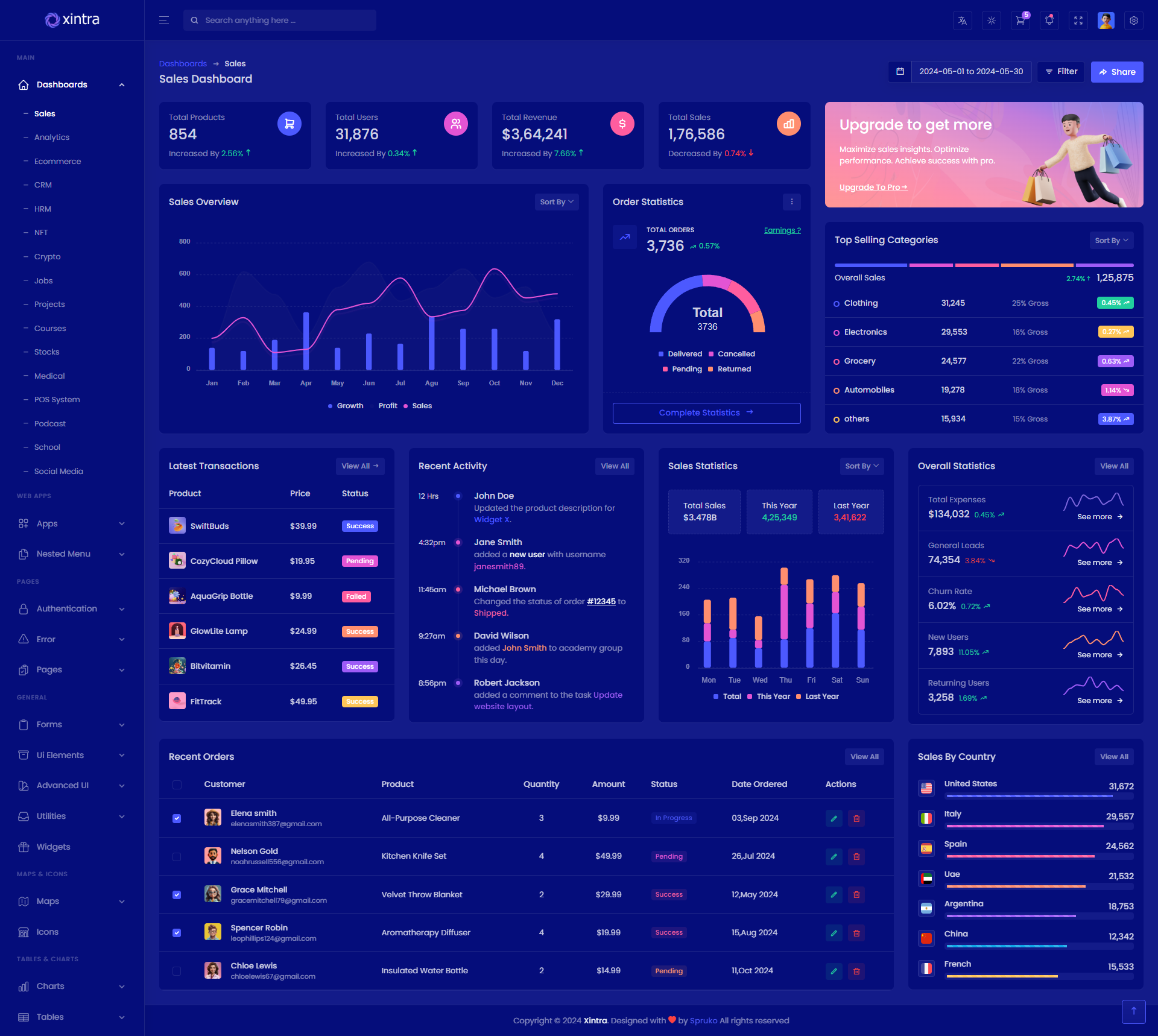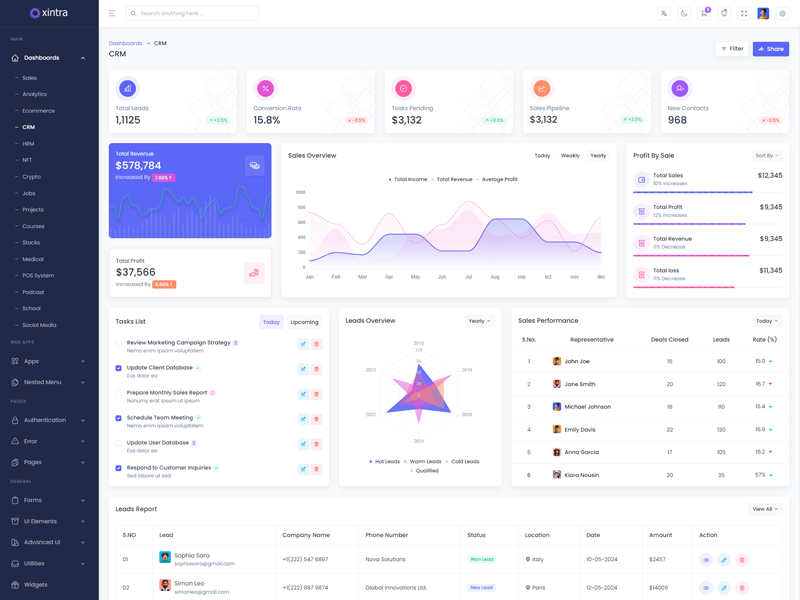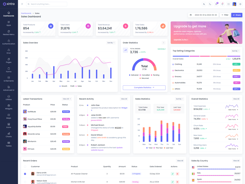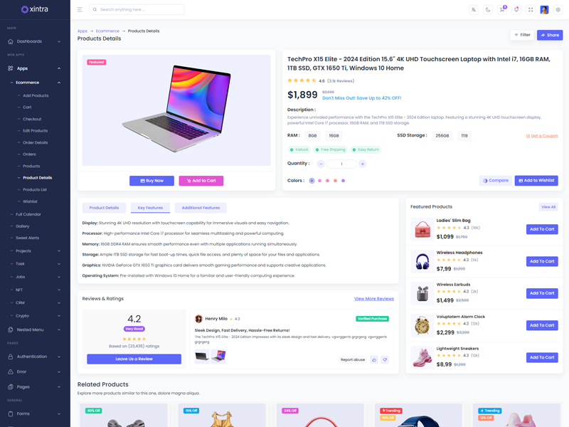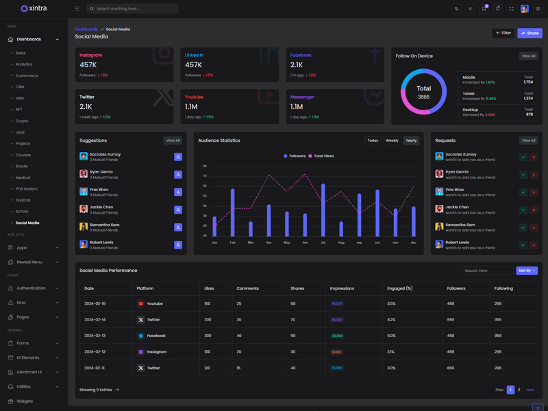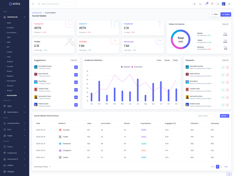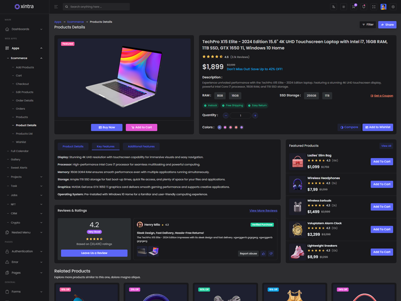 Xintra NextJS App-Router Javascript React-Bootstrap Admin Template Main Features