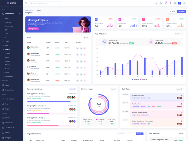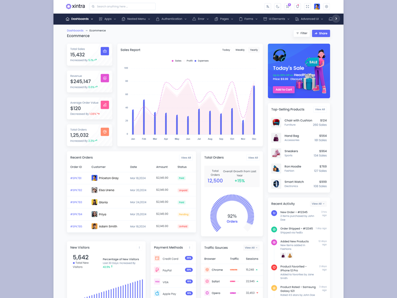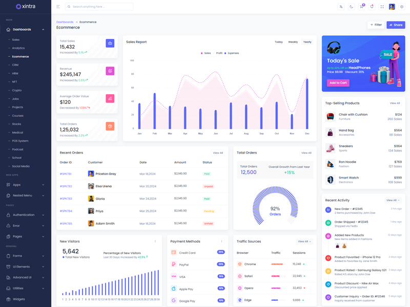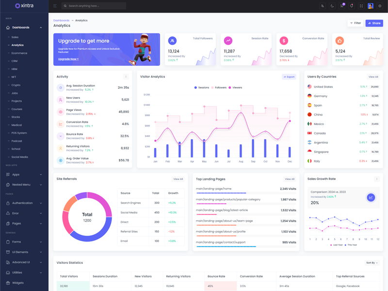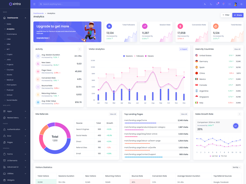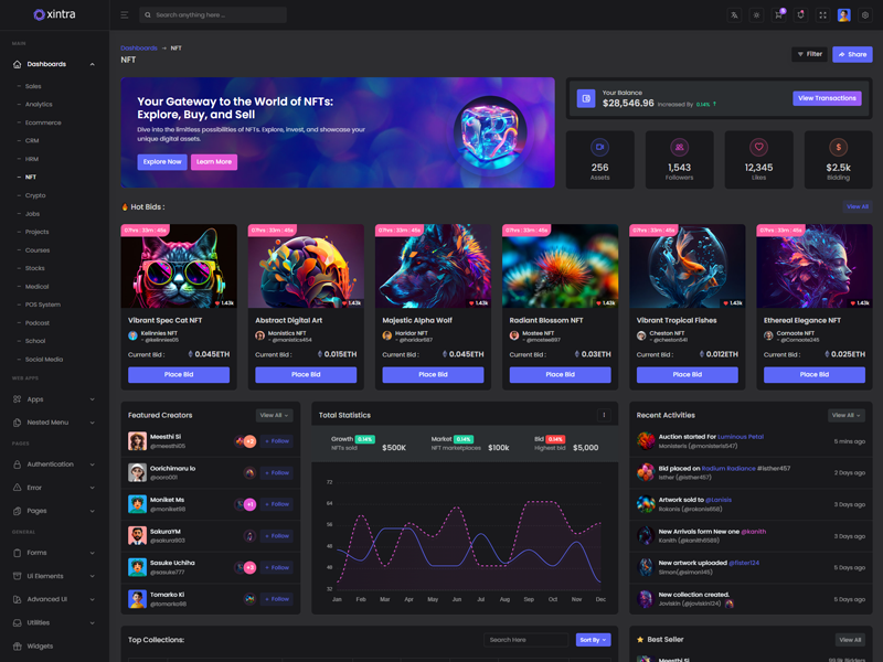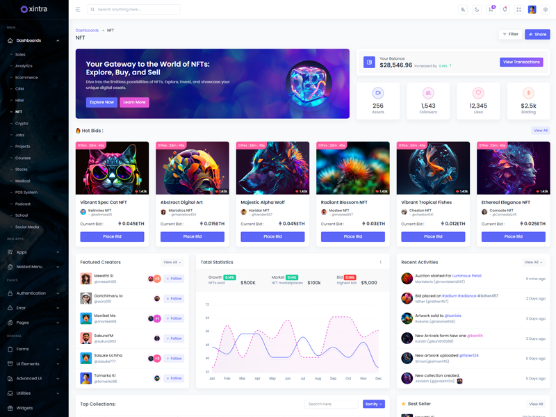 Xintra NextJS App-Router Javascript React-Bootstrap Admin Template comes with ready to use features. It has lots of ready-made features saves more time for developers.