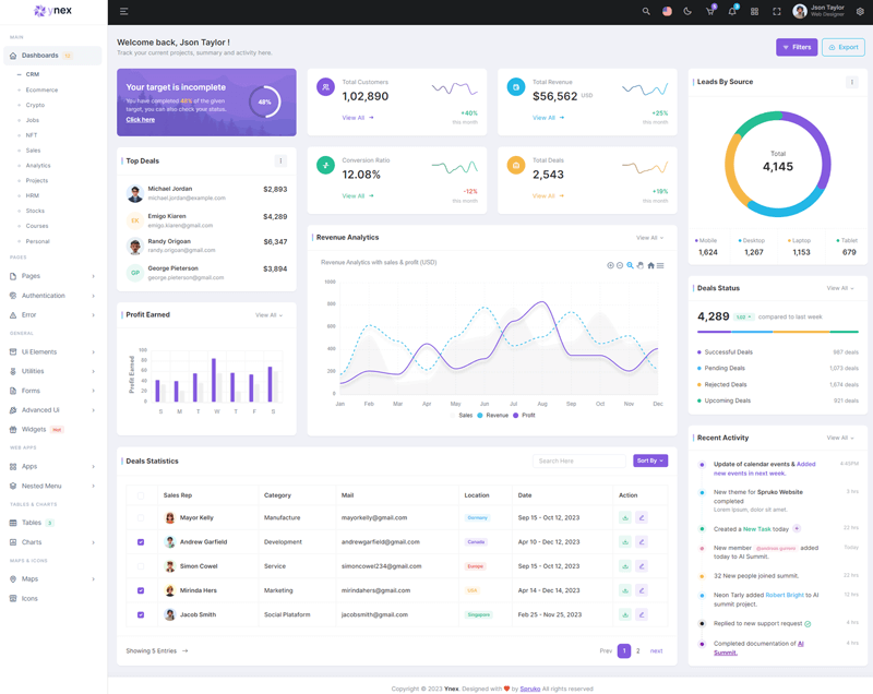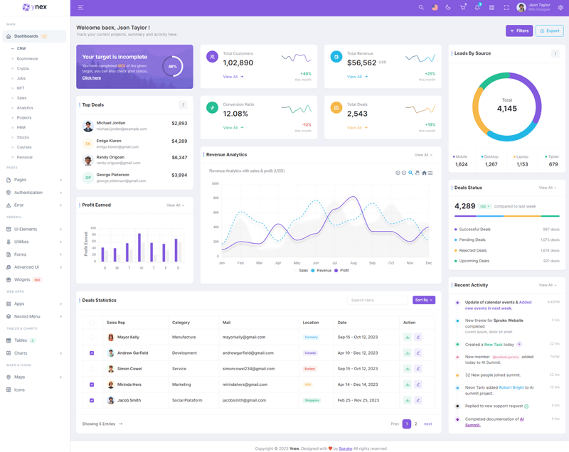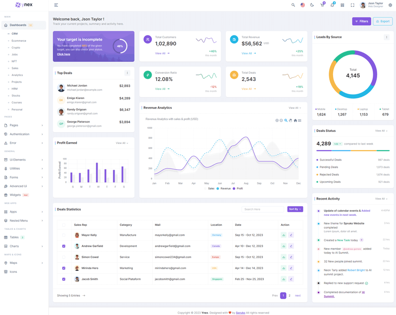 The Ynex NextJs App-Router Javascript Admin Template comes with a wealth of ready-to-use features, saving developers significant time with its array of pre-built functionalities.