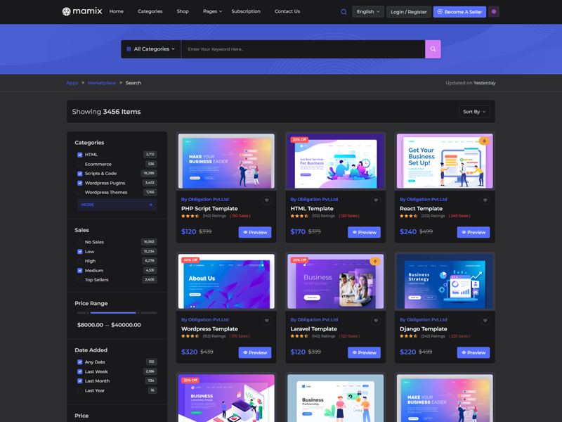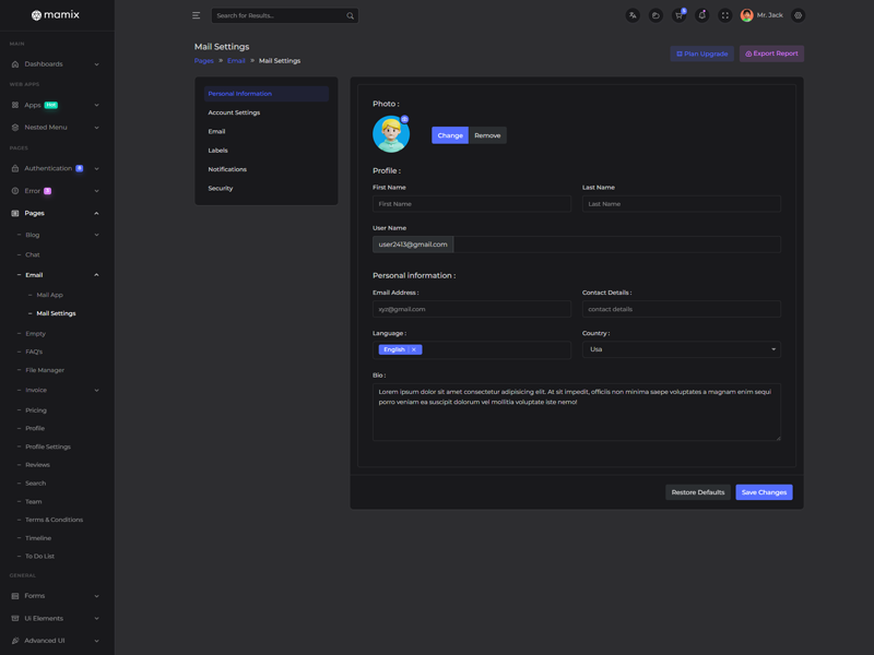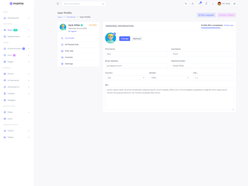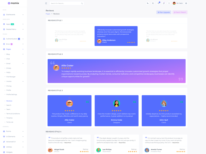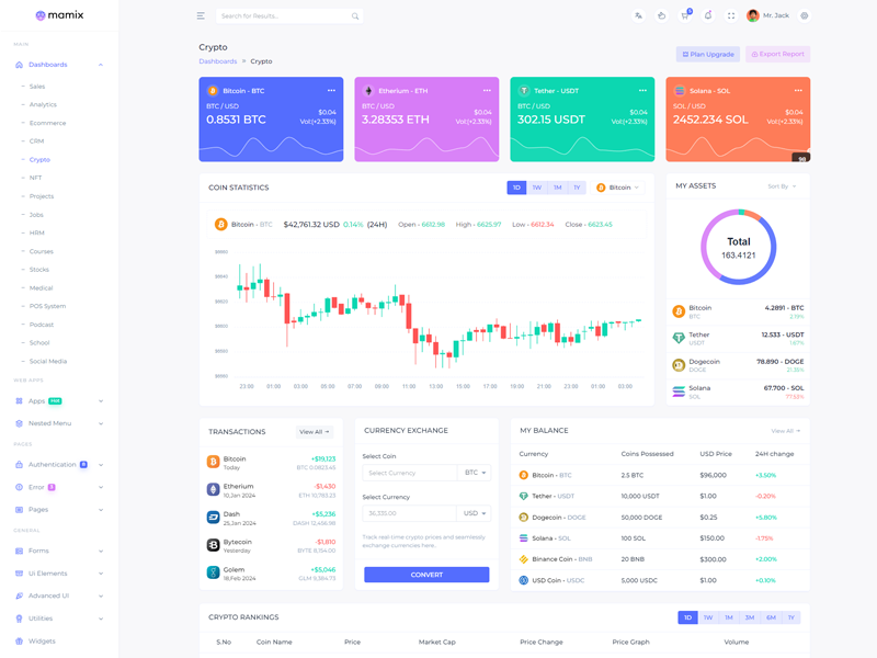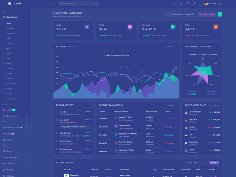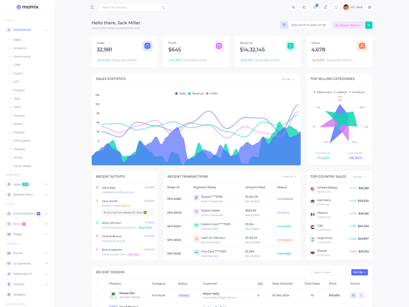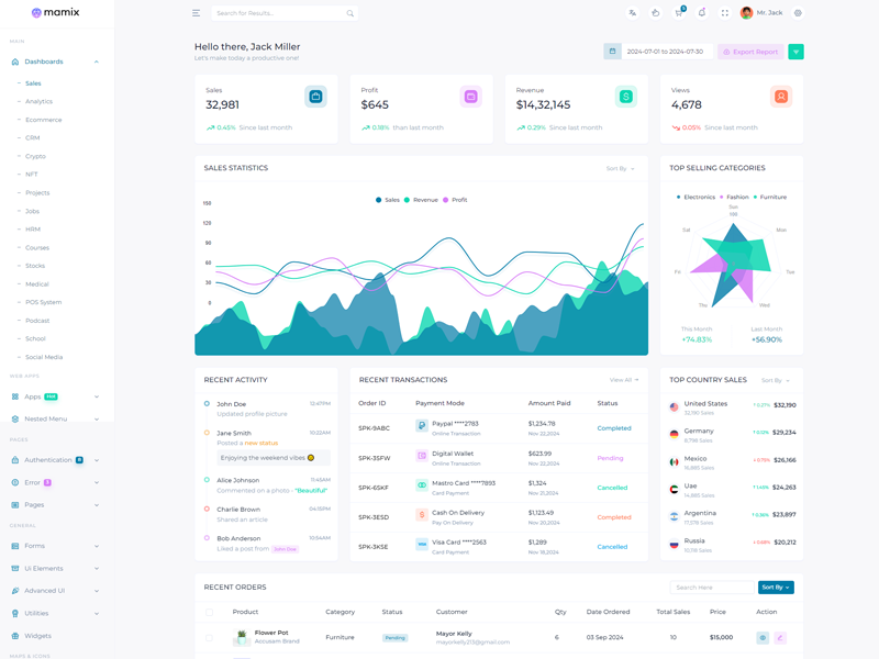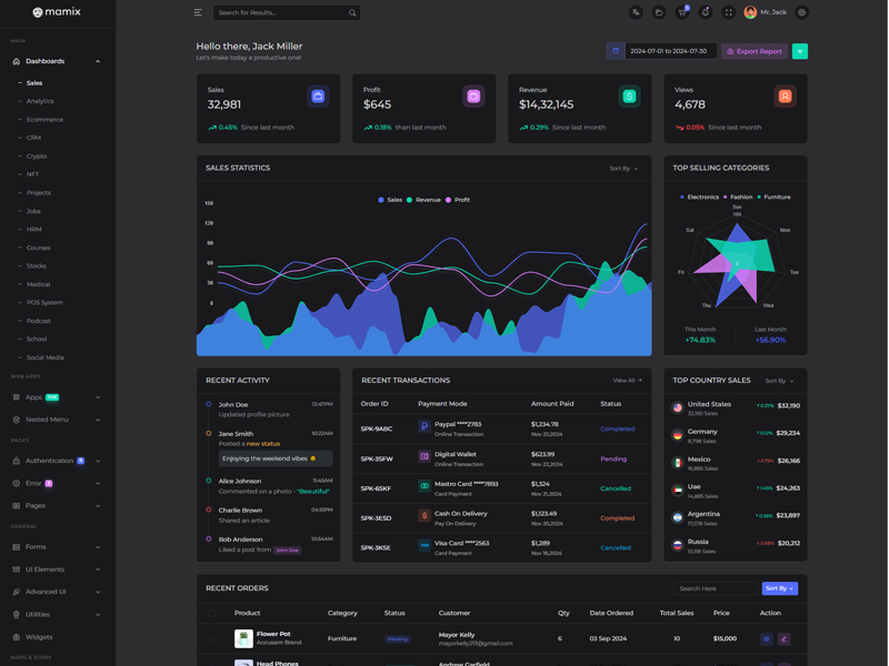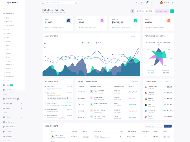 The Mamix Admin Dashboard template is flexible and fully customizable. To use your own content, you can easily customize the source files.