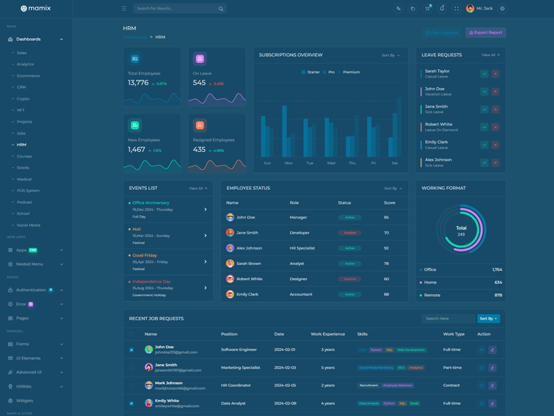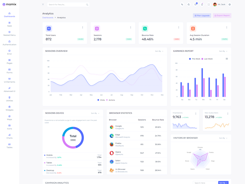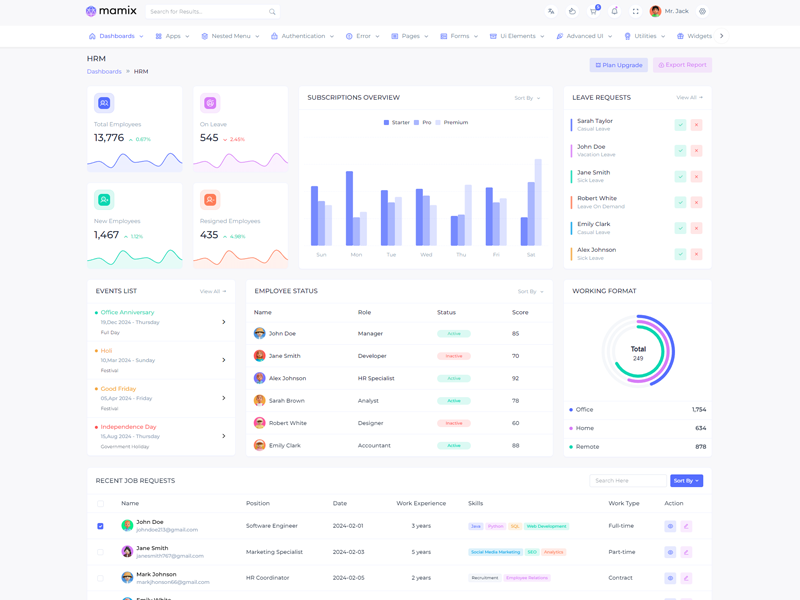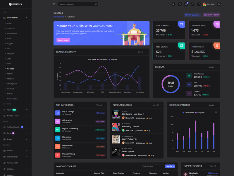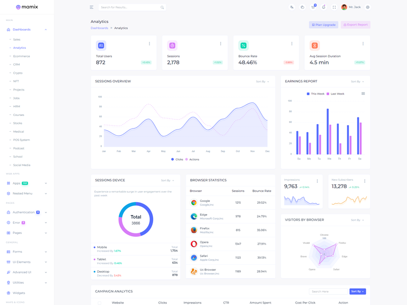 Explore the latest trending features incorporated into the Mamix NextJS Typescript Admin template, showcasing how we have enhanced and designed our template. When it comes to design, we always keep a close watch on the most trending features.