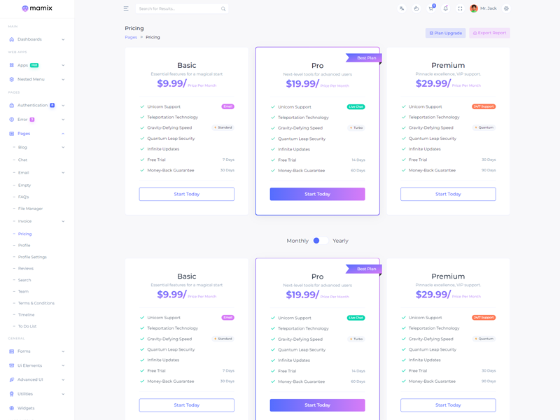 Mamix - NextJS Typescript Page-Router Admin & Dashboard Template boasts essential features such as design quality, compatibility with your front-end framework, responsiveness, ease of customization, comprehensive documentation, and dedicated support. Additionally, it includes integrated plugins and other supplementary features.