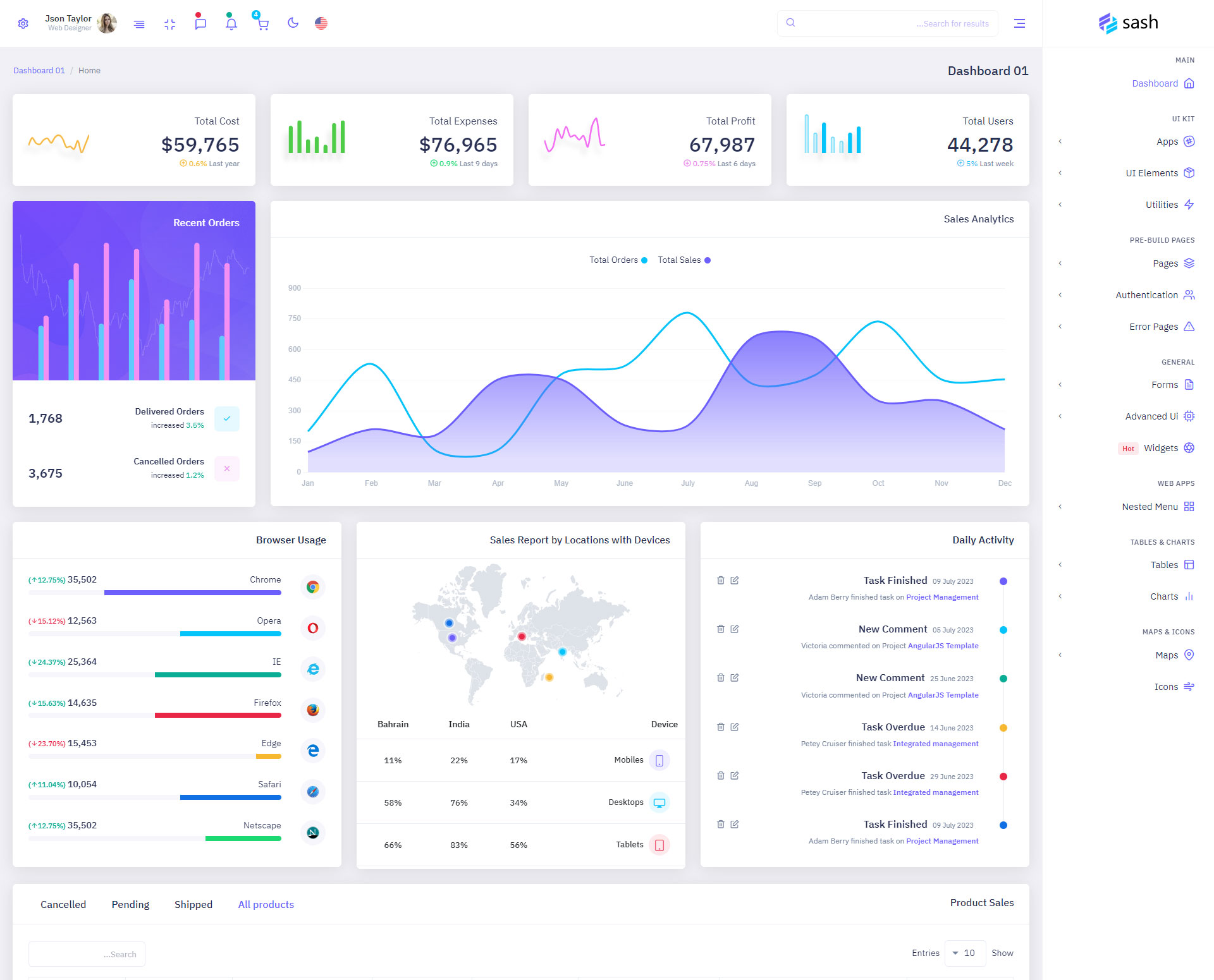 Sash-NextJS Javascript Admin & Dashboard Template comes with ready to use features. It has lots of ready-made features saves more time for developers.
