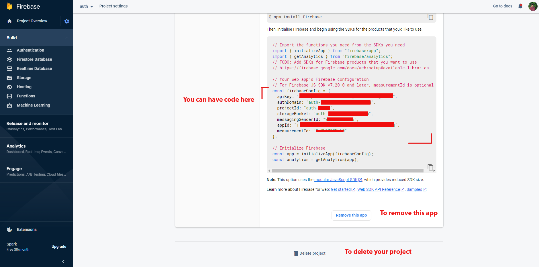 step-2: Add firebase API configuration details(create database on firebase) to the