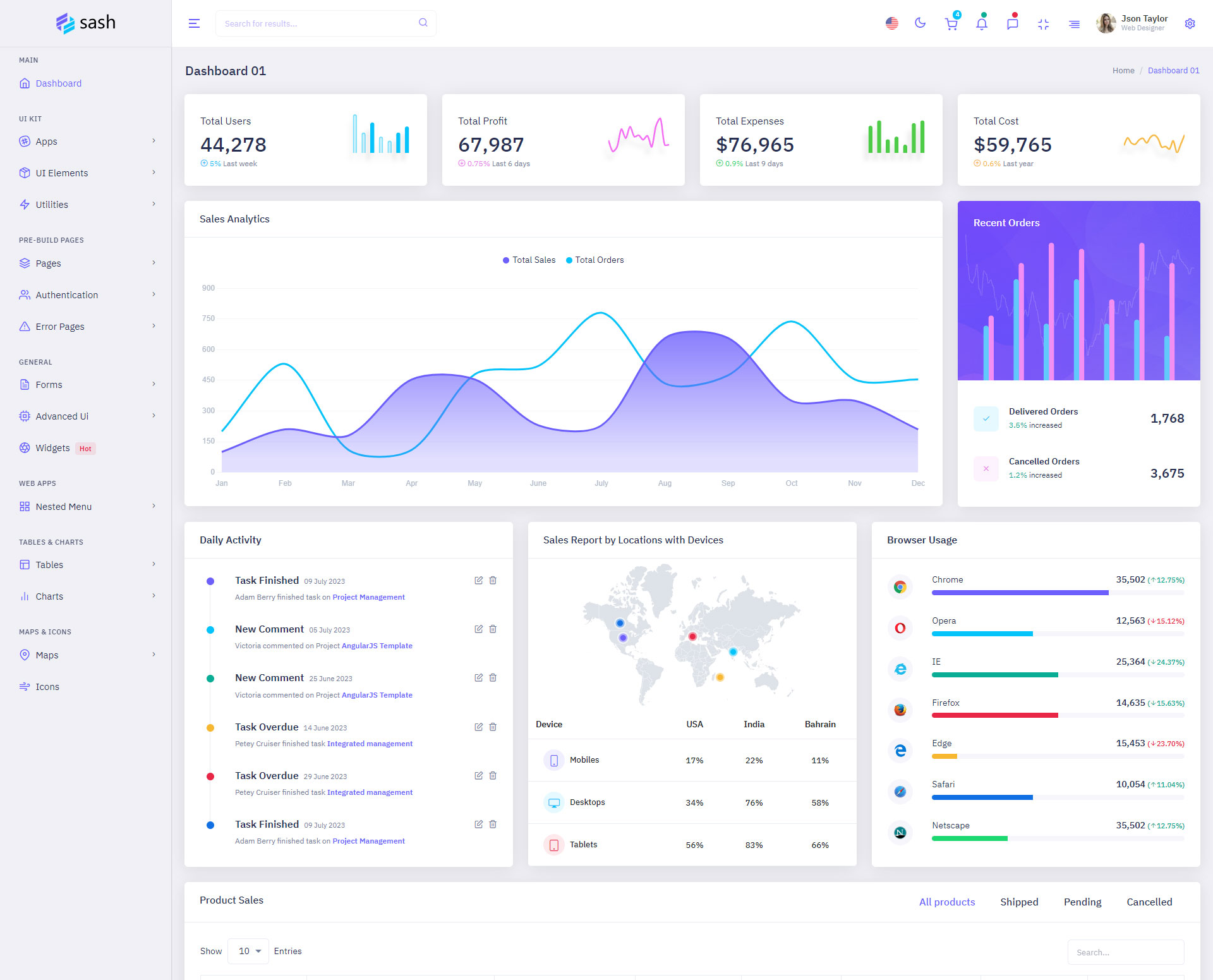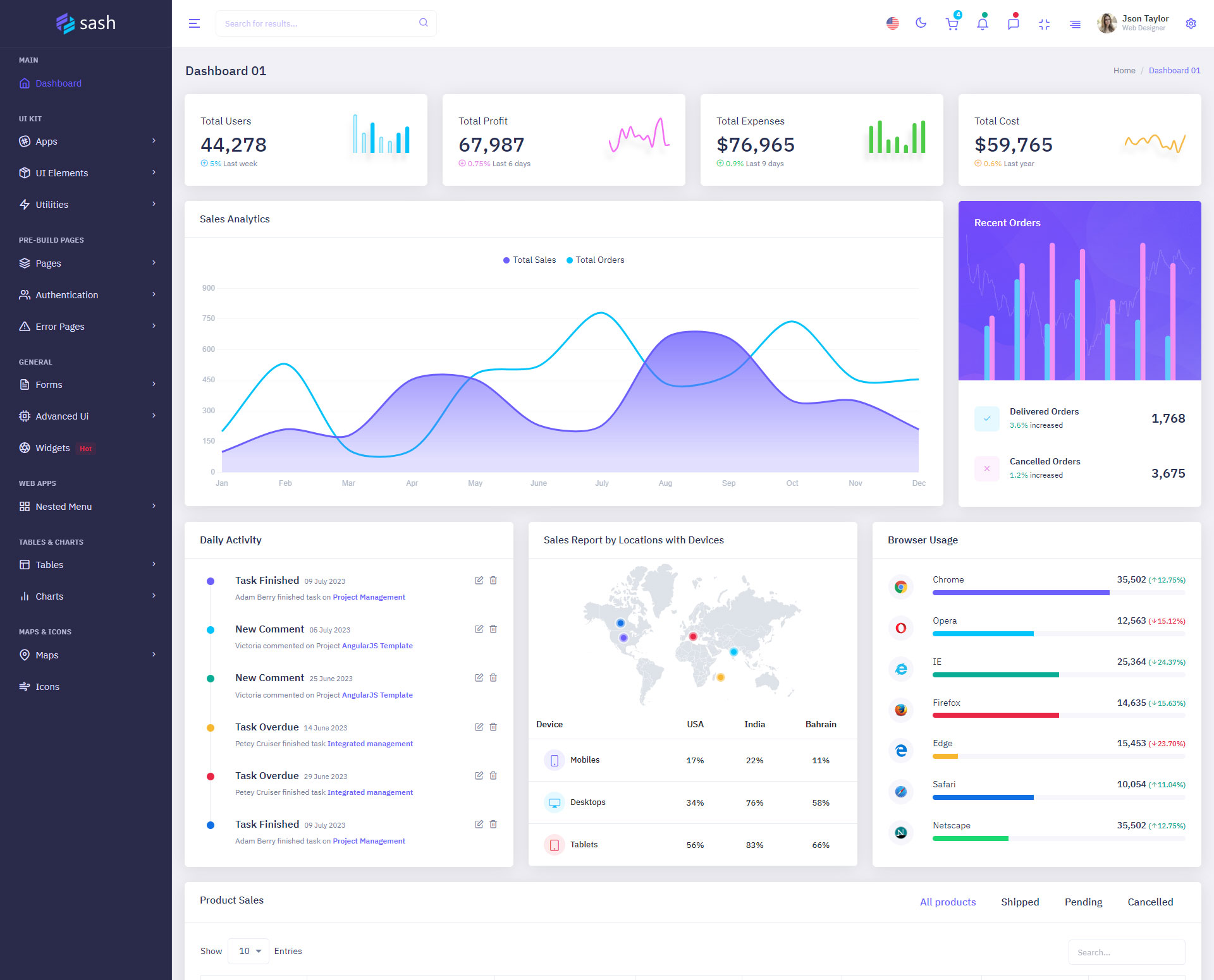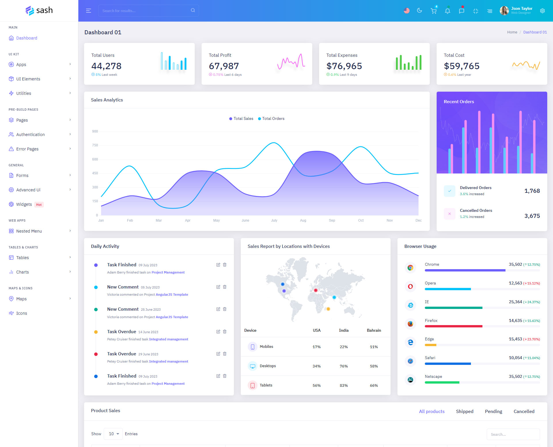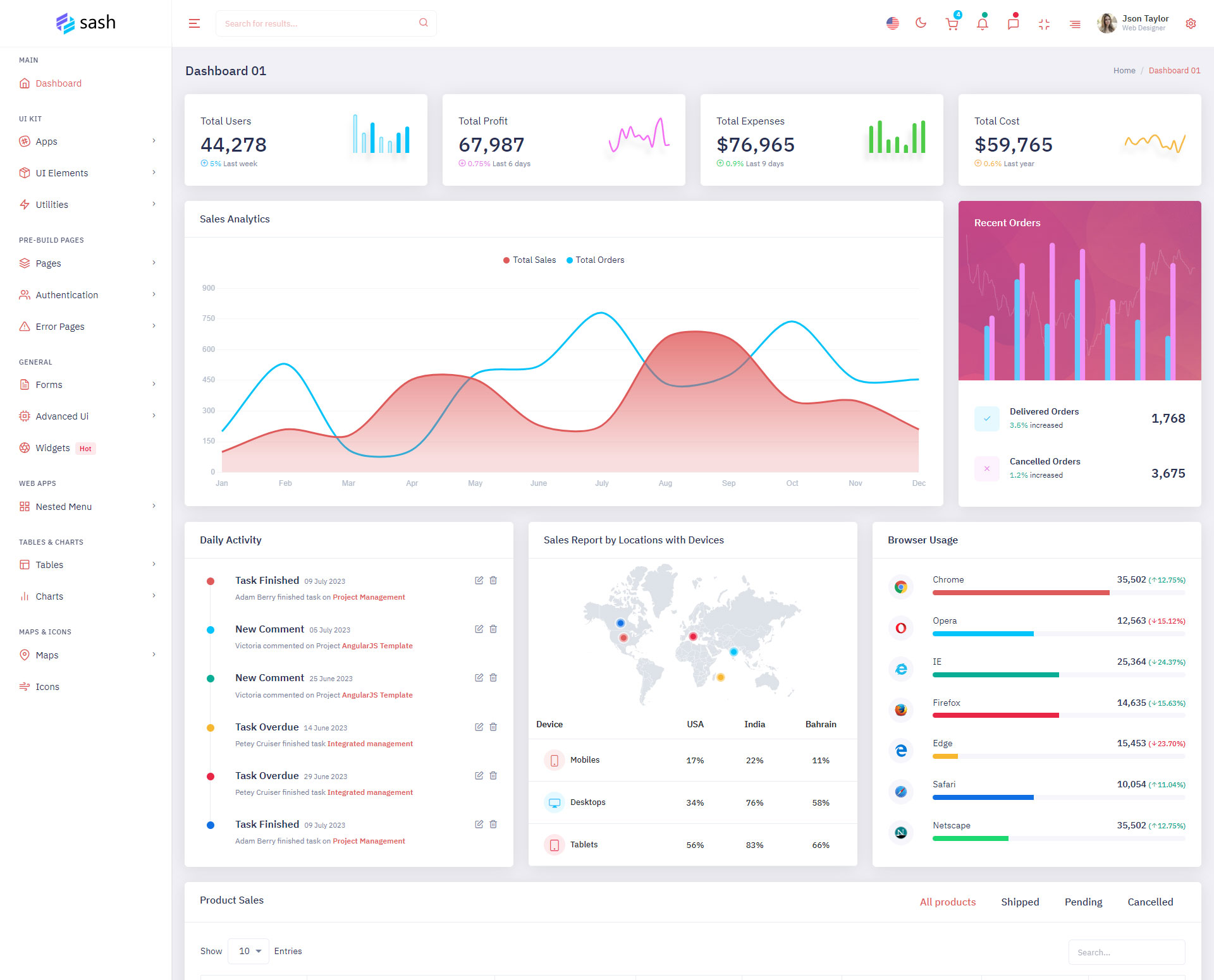 Sash Admin Template Main Features