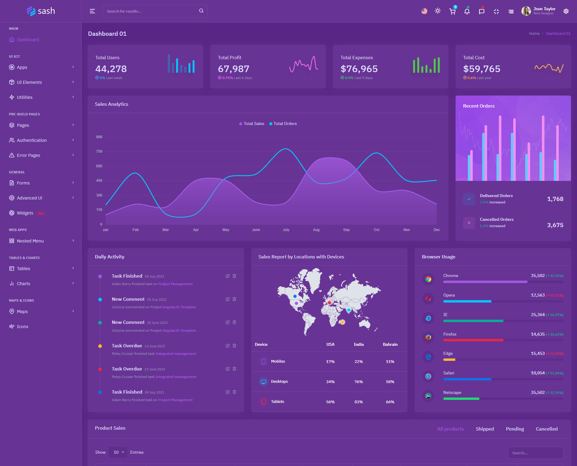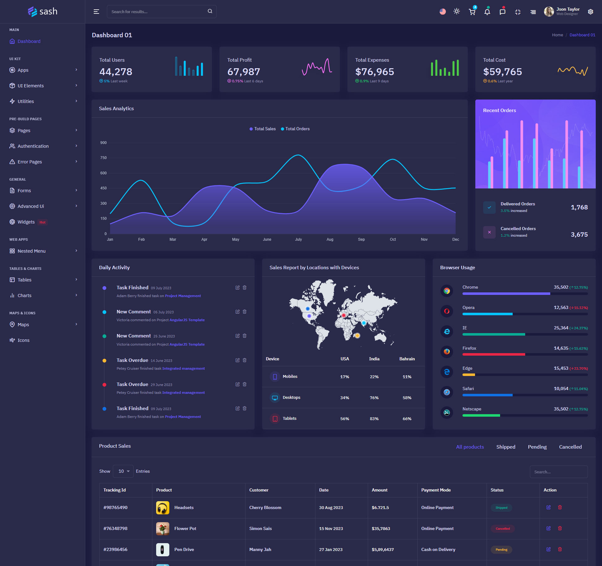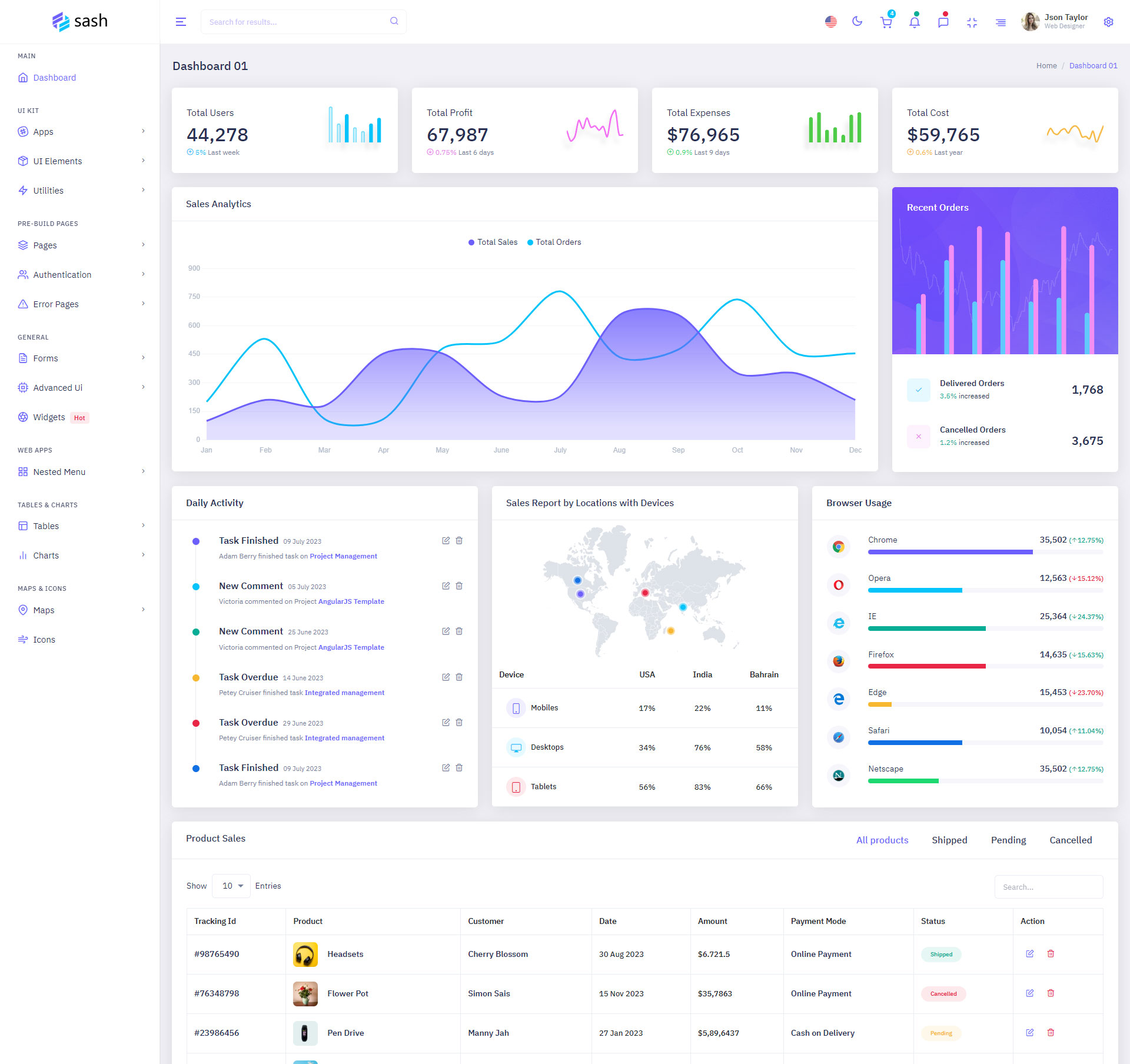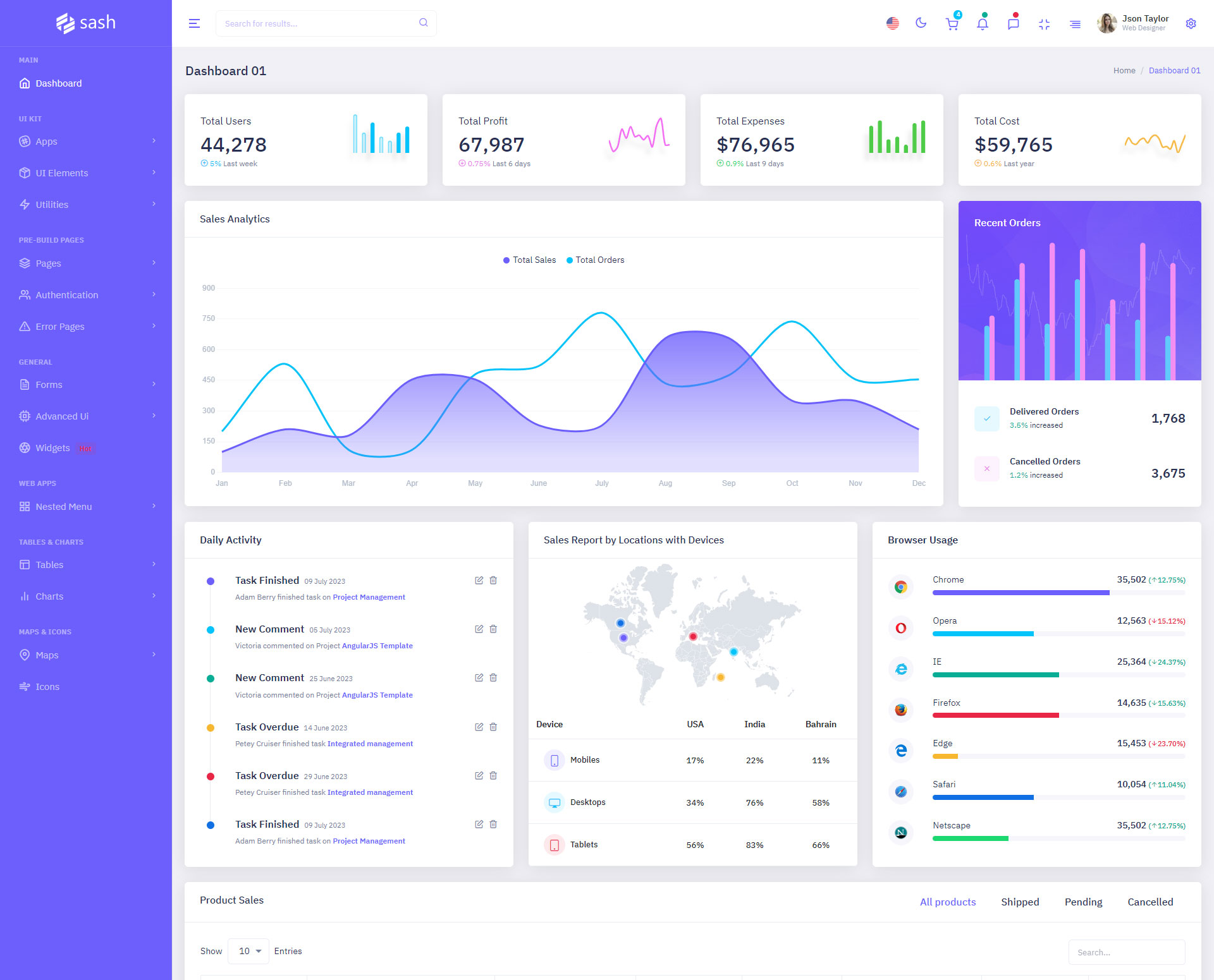 Sash Admin Template Main Features