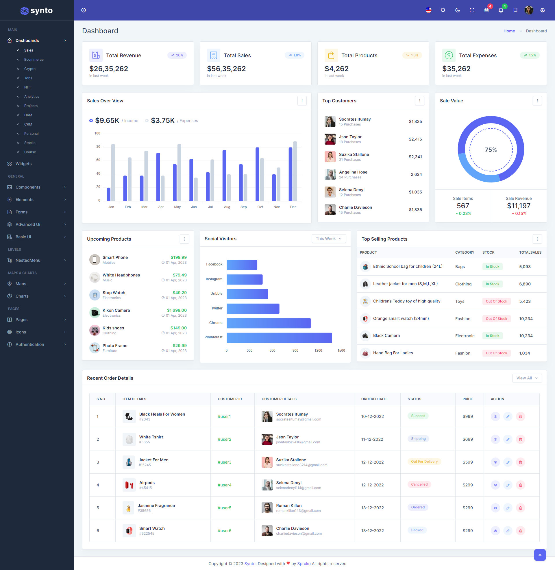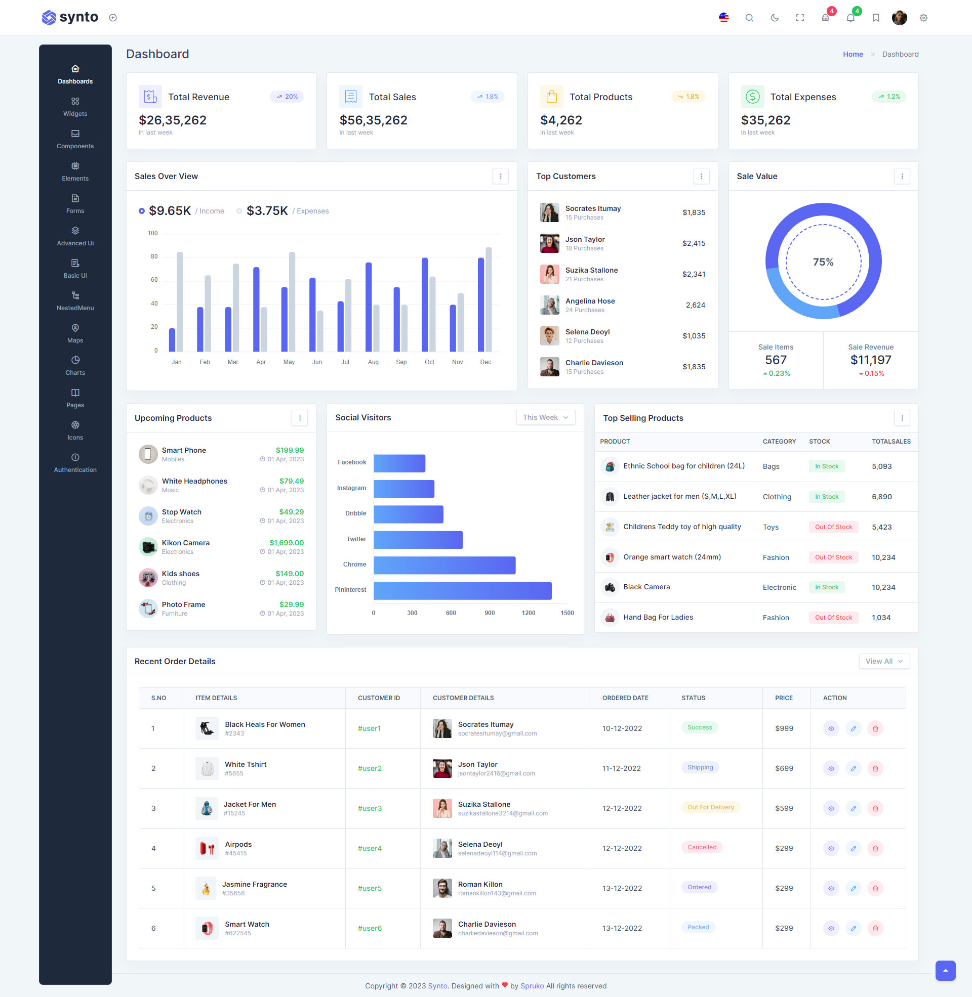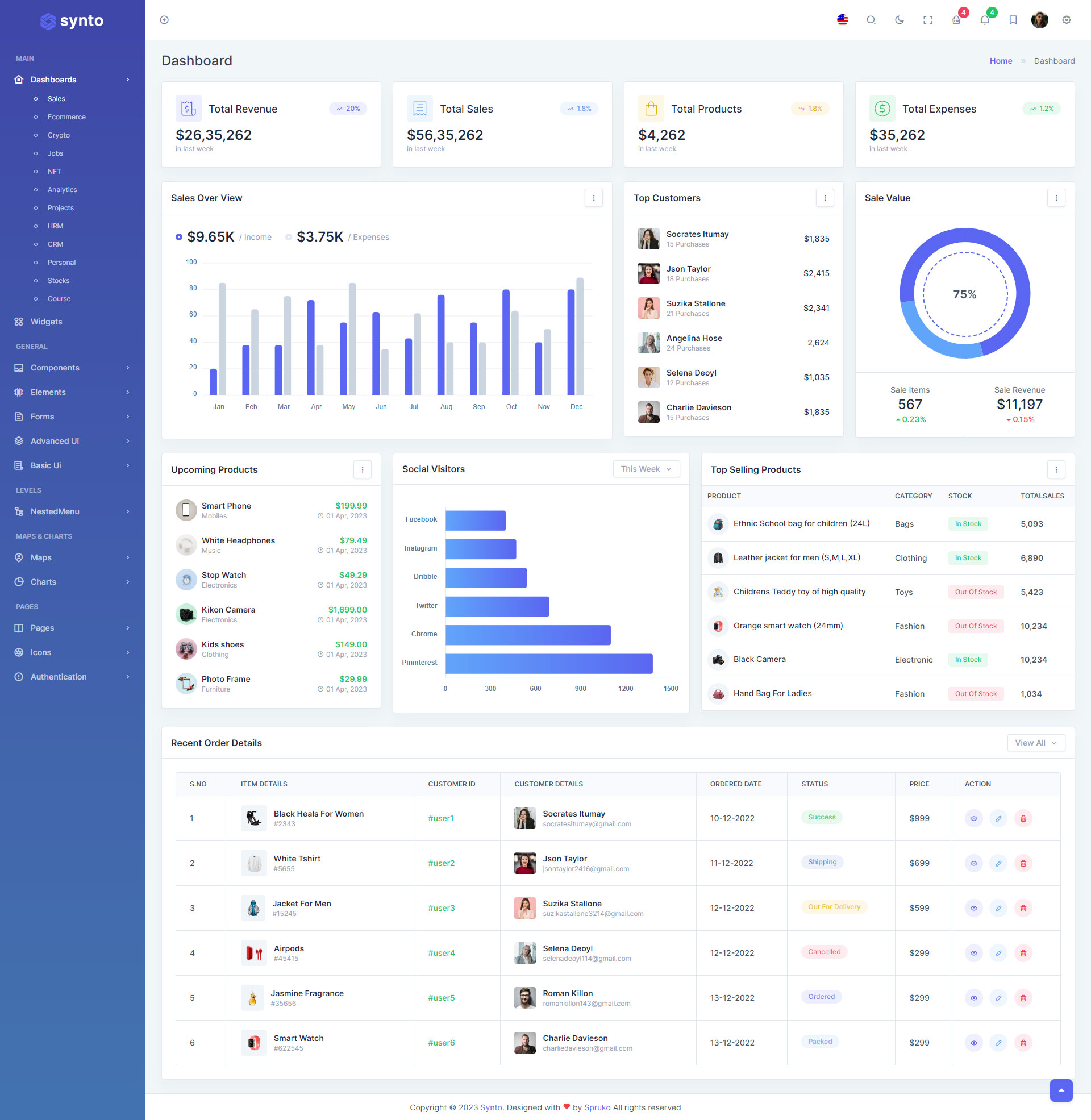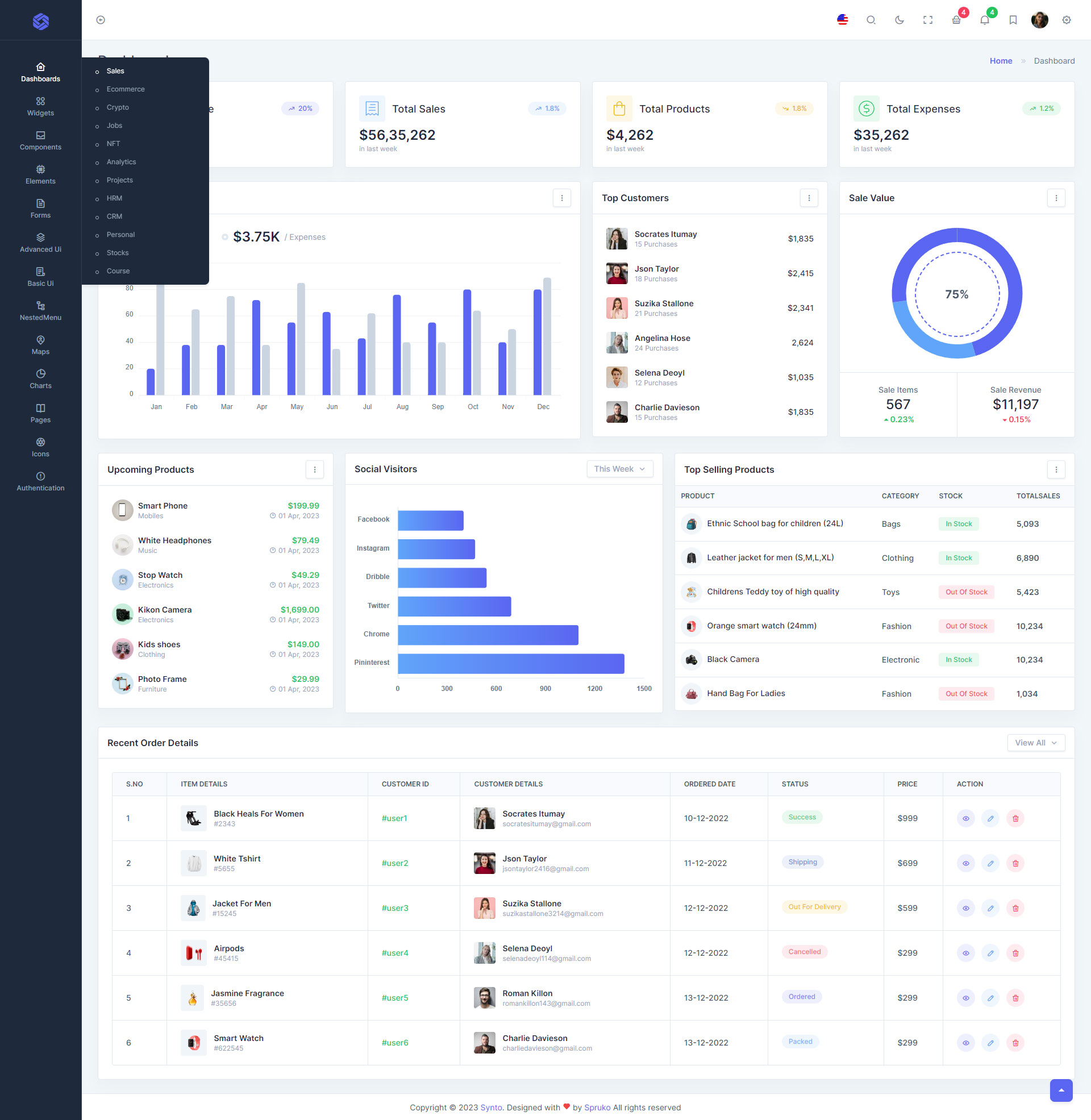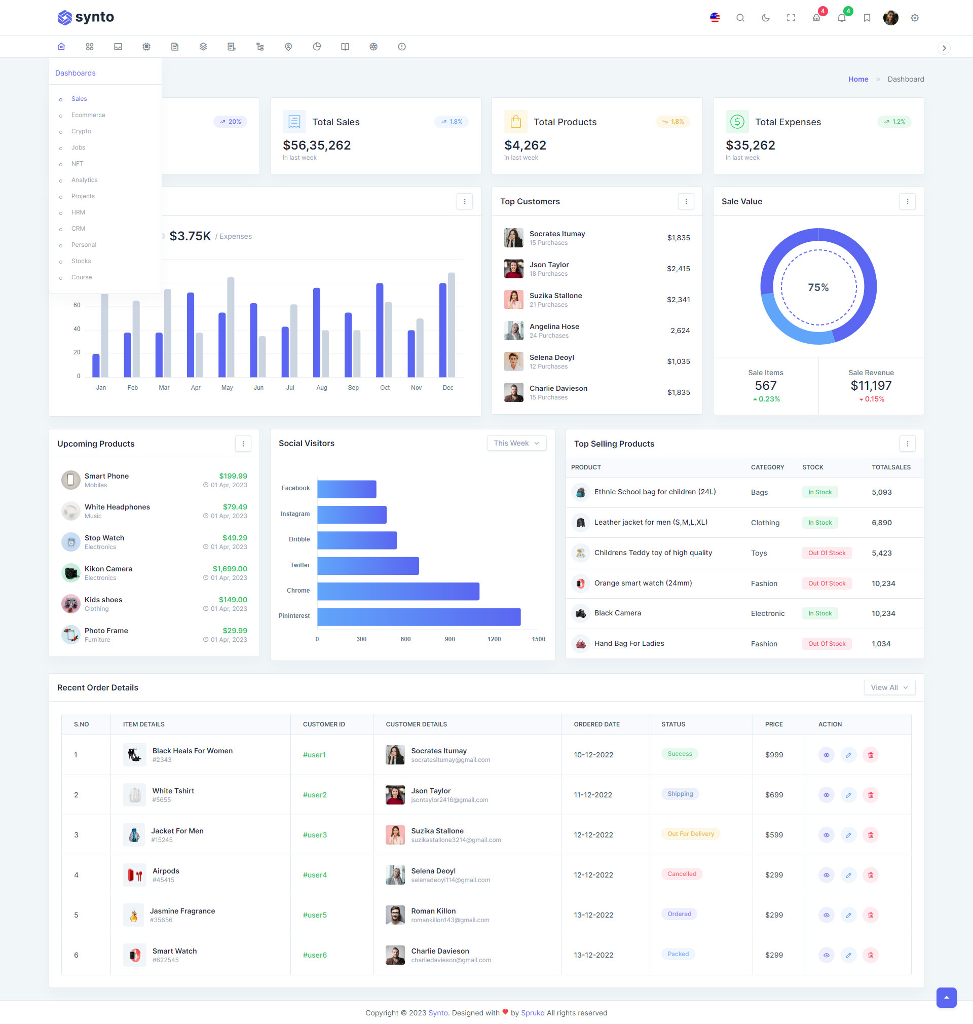 This Synto Nextjs Admin template comes with 12 beautiful dashboards and different types of themes. So that users can choose their best theme and customize the template according to their choice.