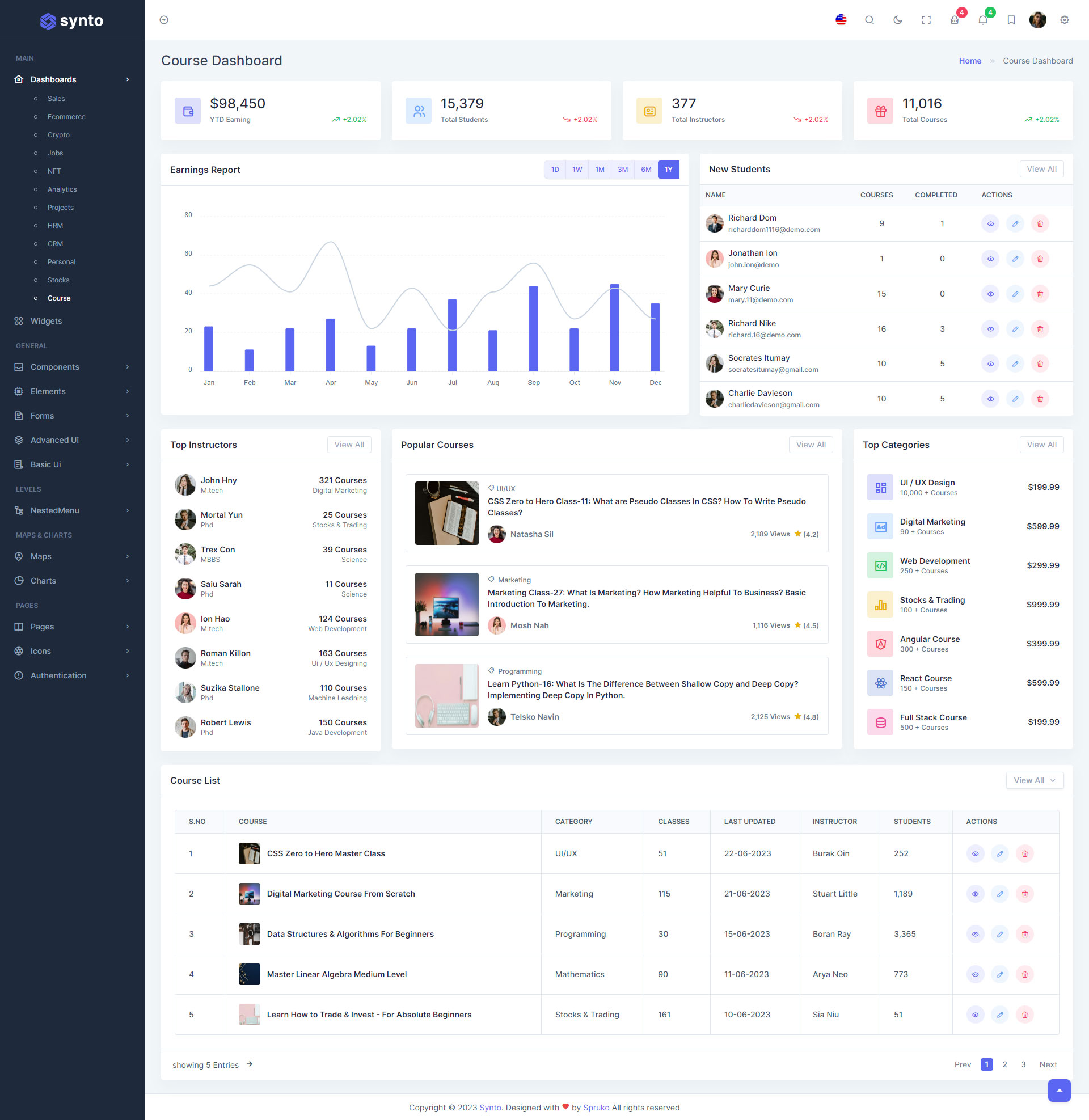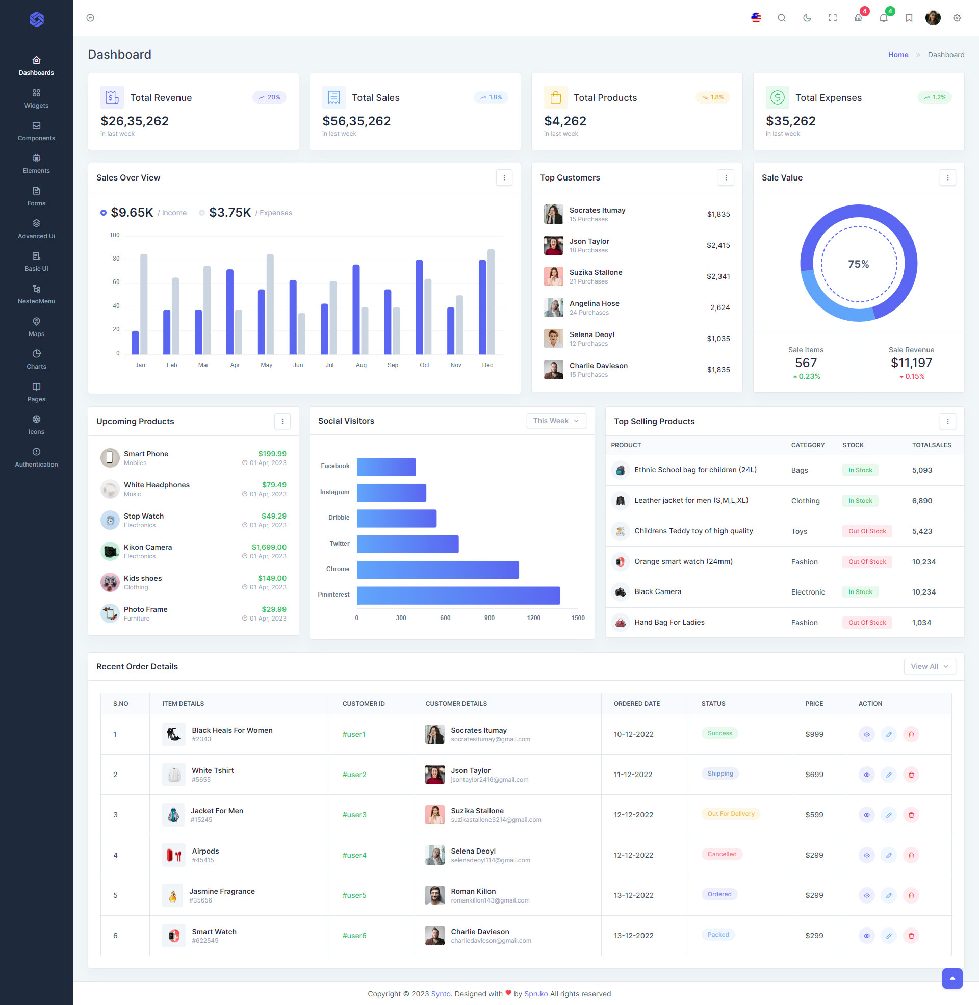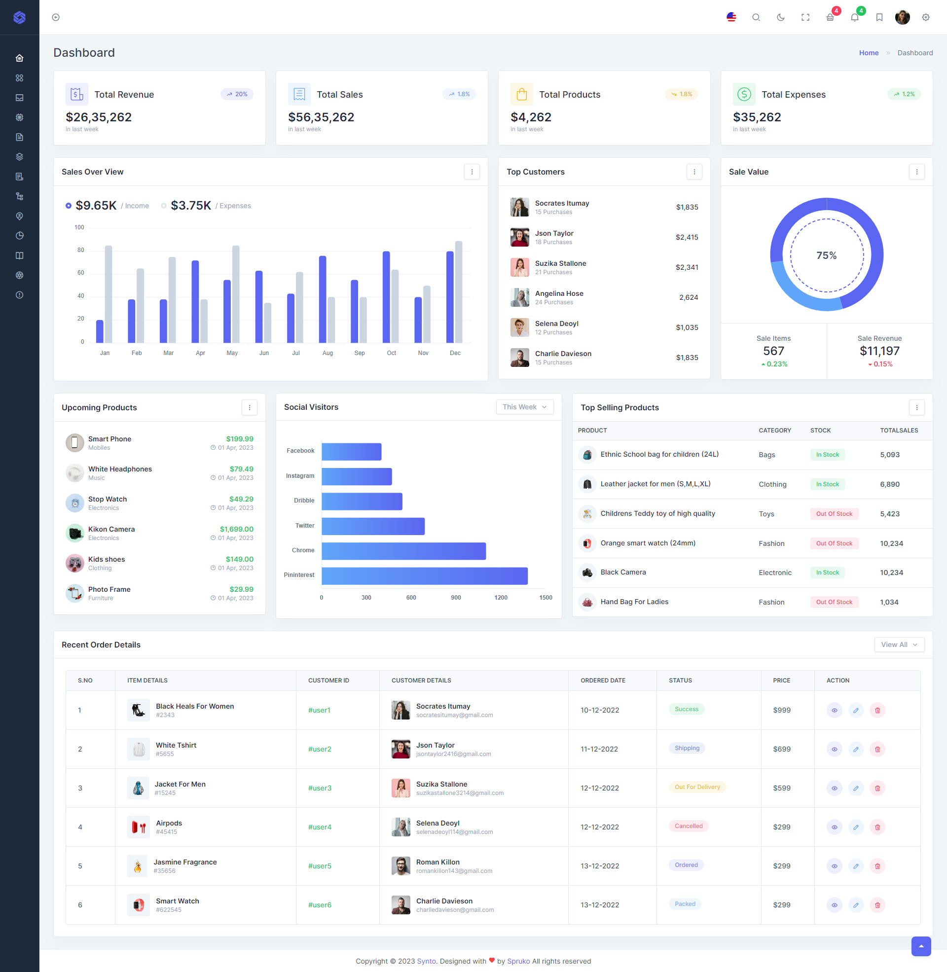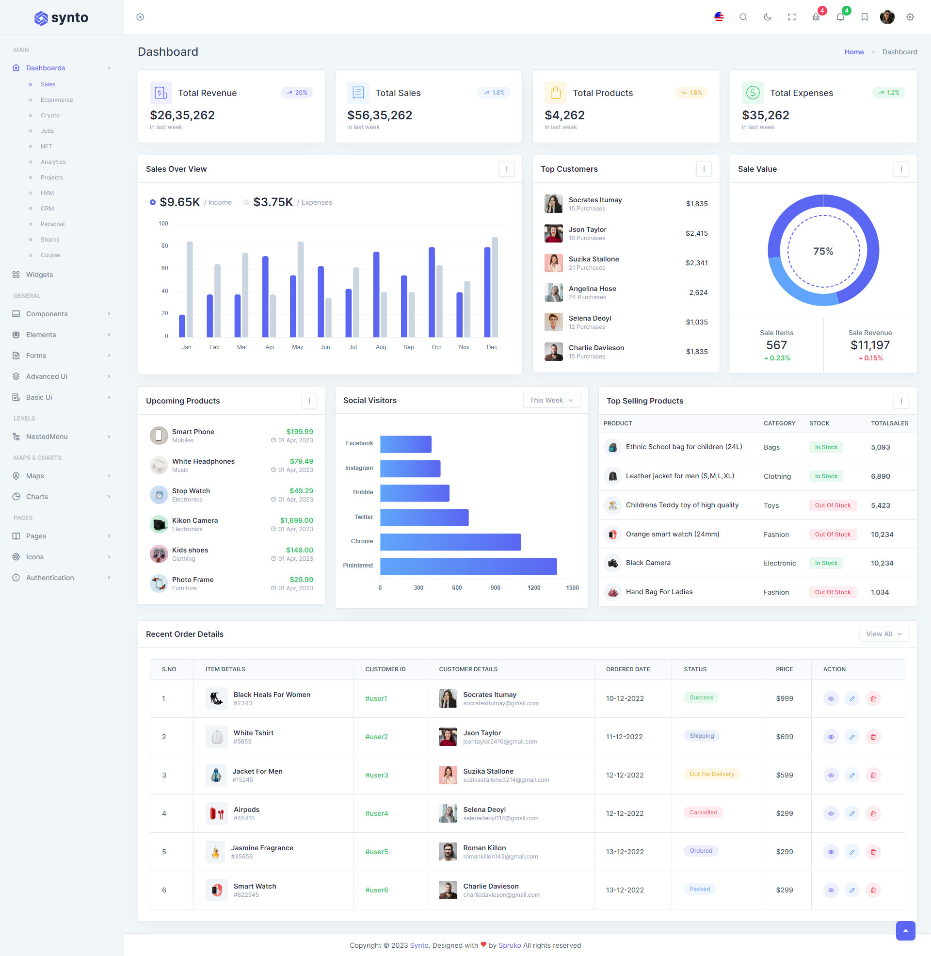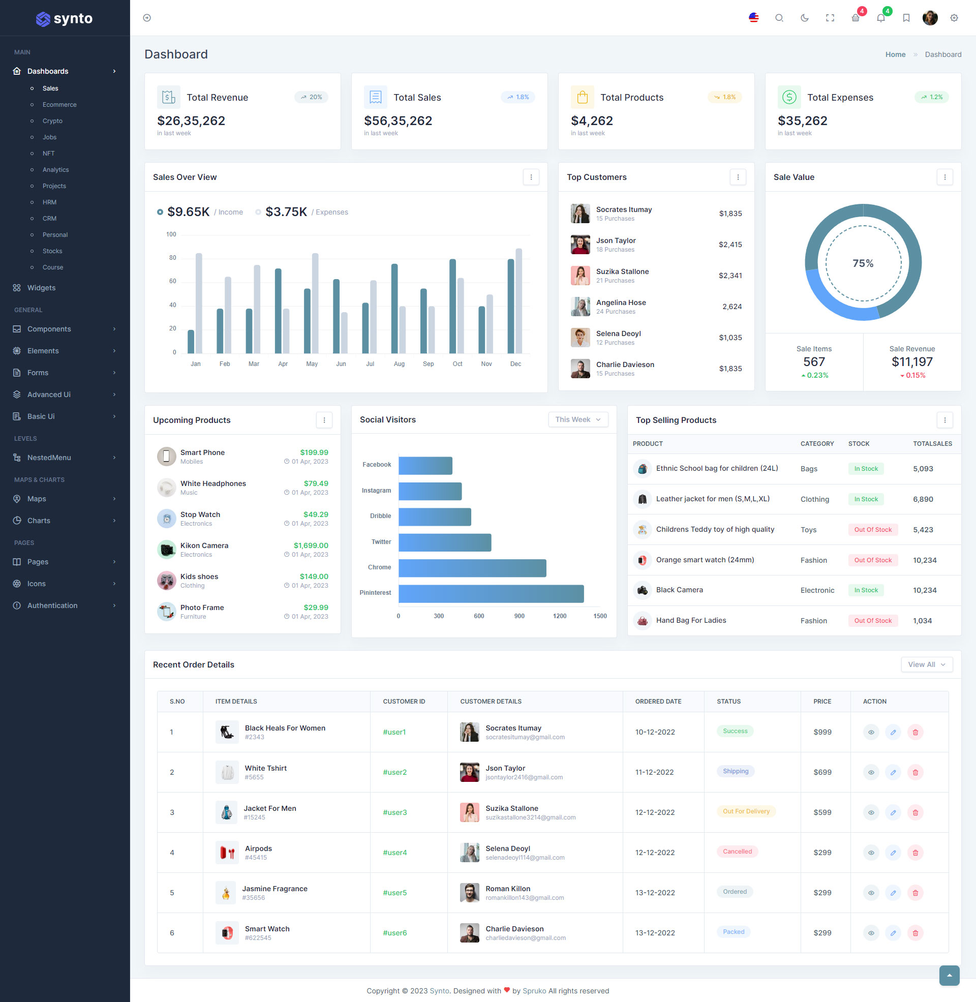 This Synto Nextjs Admin template comes with 12 beautiful dashboards and different types of themes. So that users can choose their best theme and customize the template according to their choice.