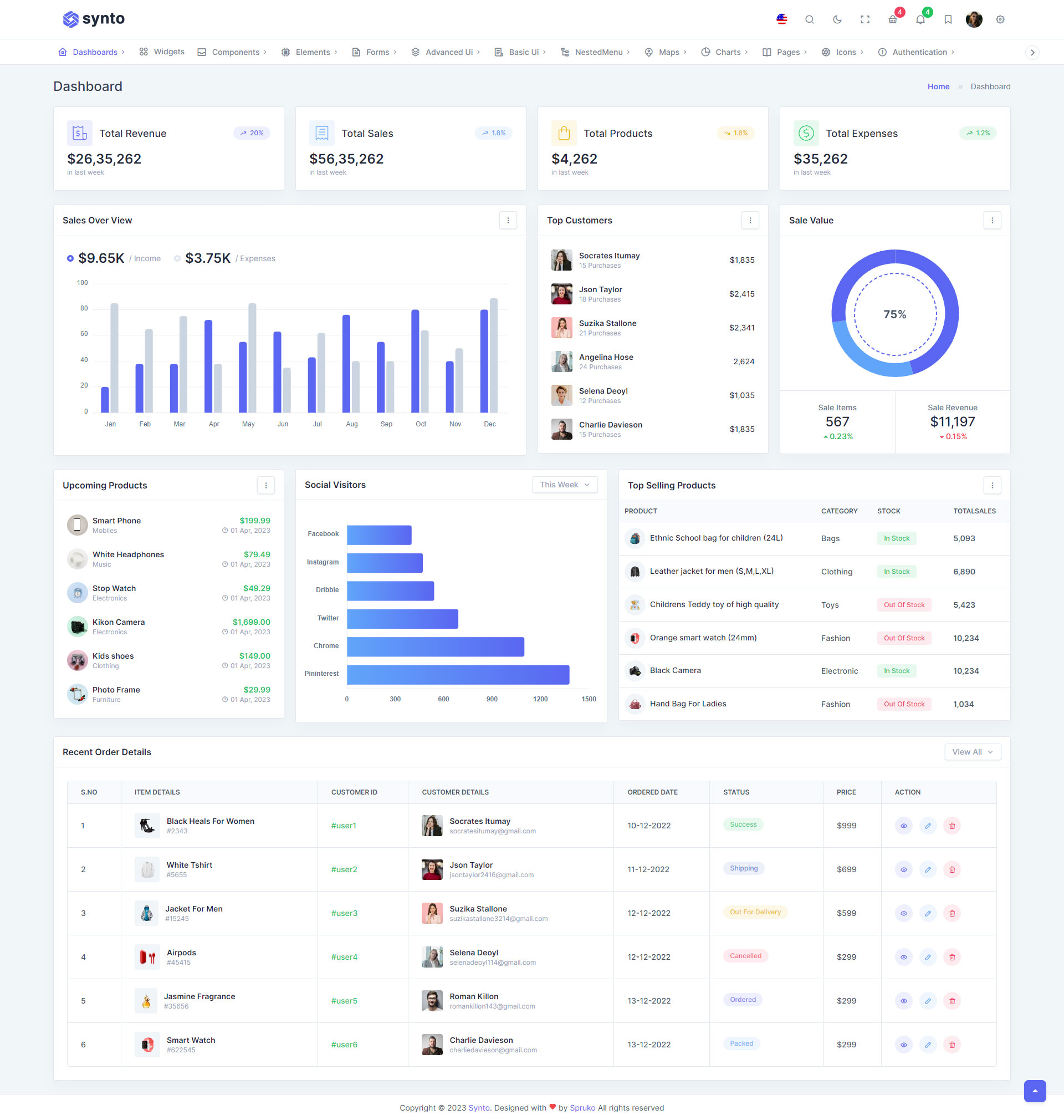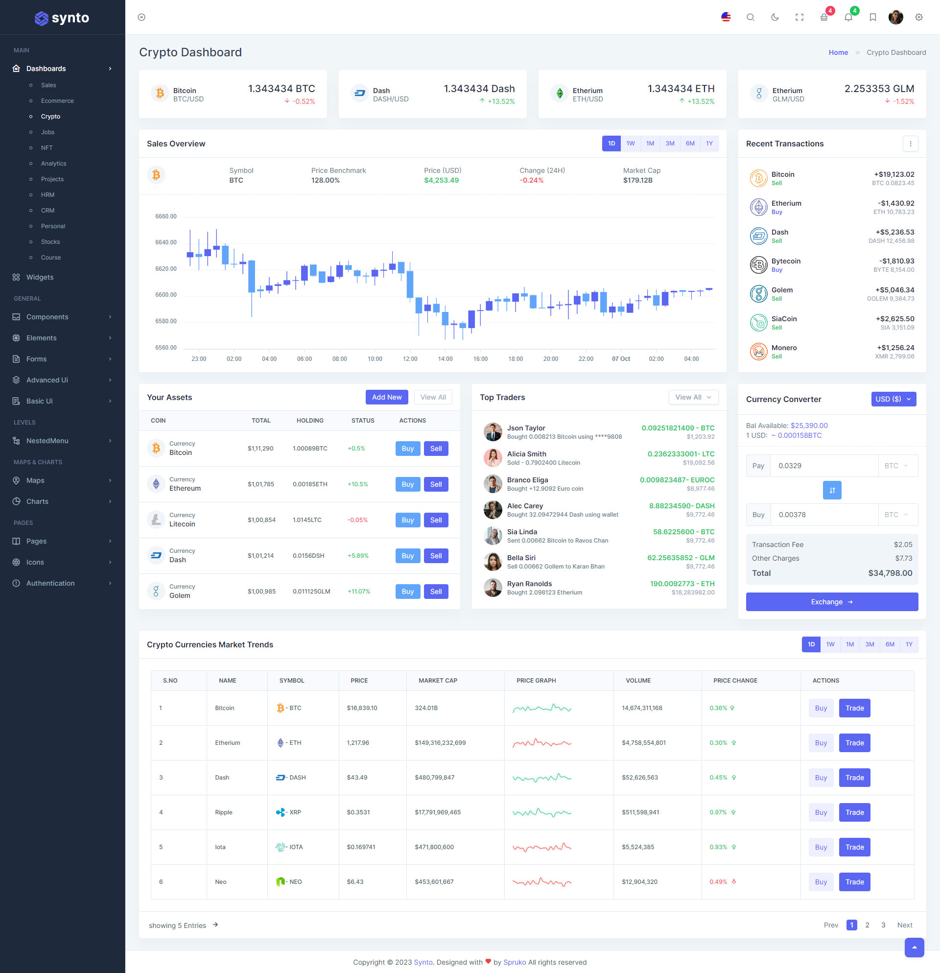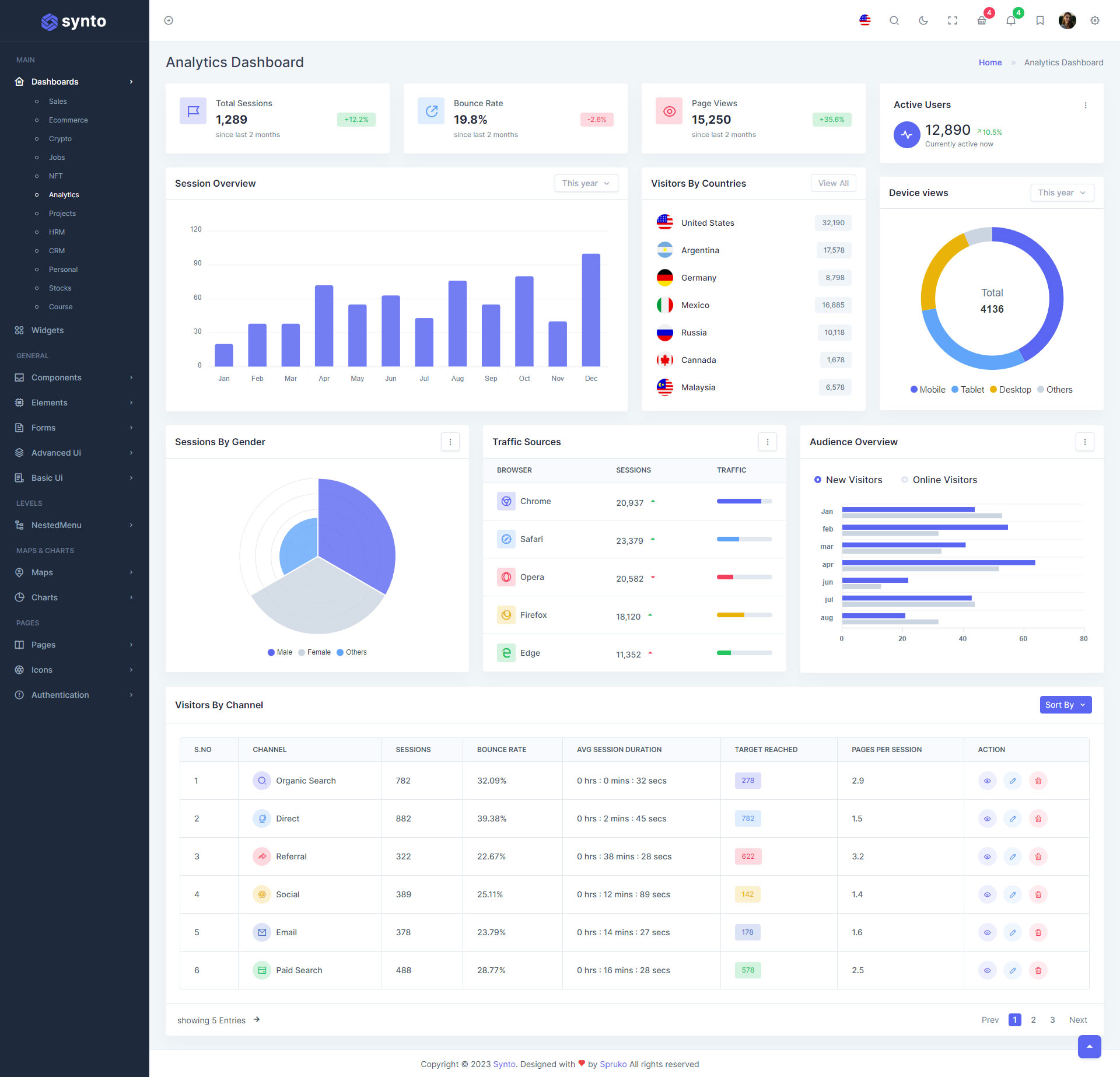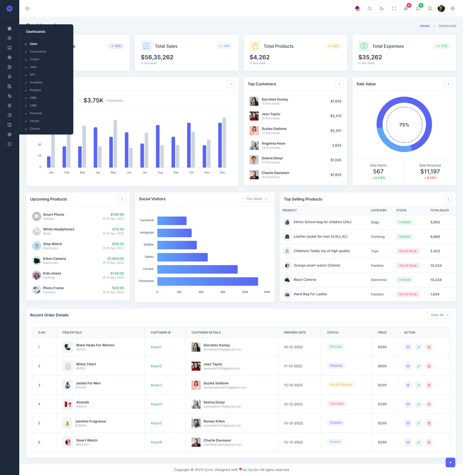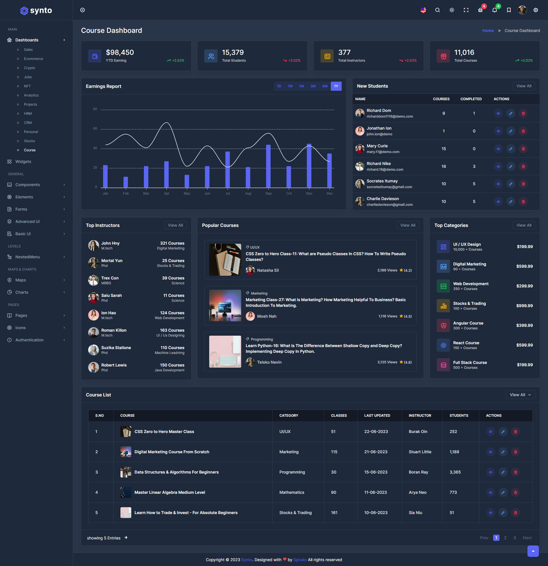 This Synto Nextjs Admin template comes with 12 beautiful dashboards and different types of themes. So that users can choose their best theme and customize the template according to their choice.