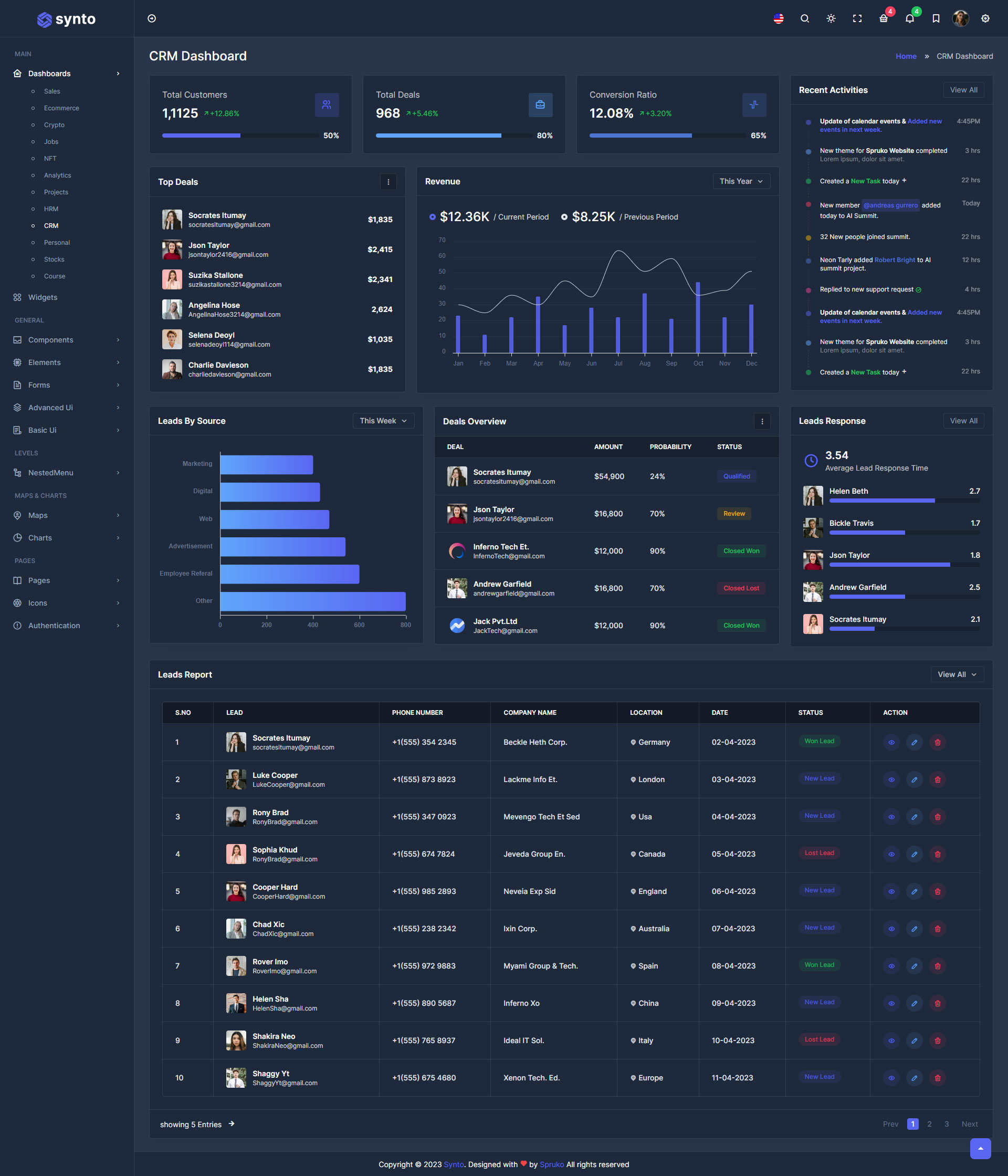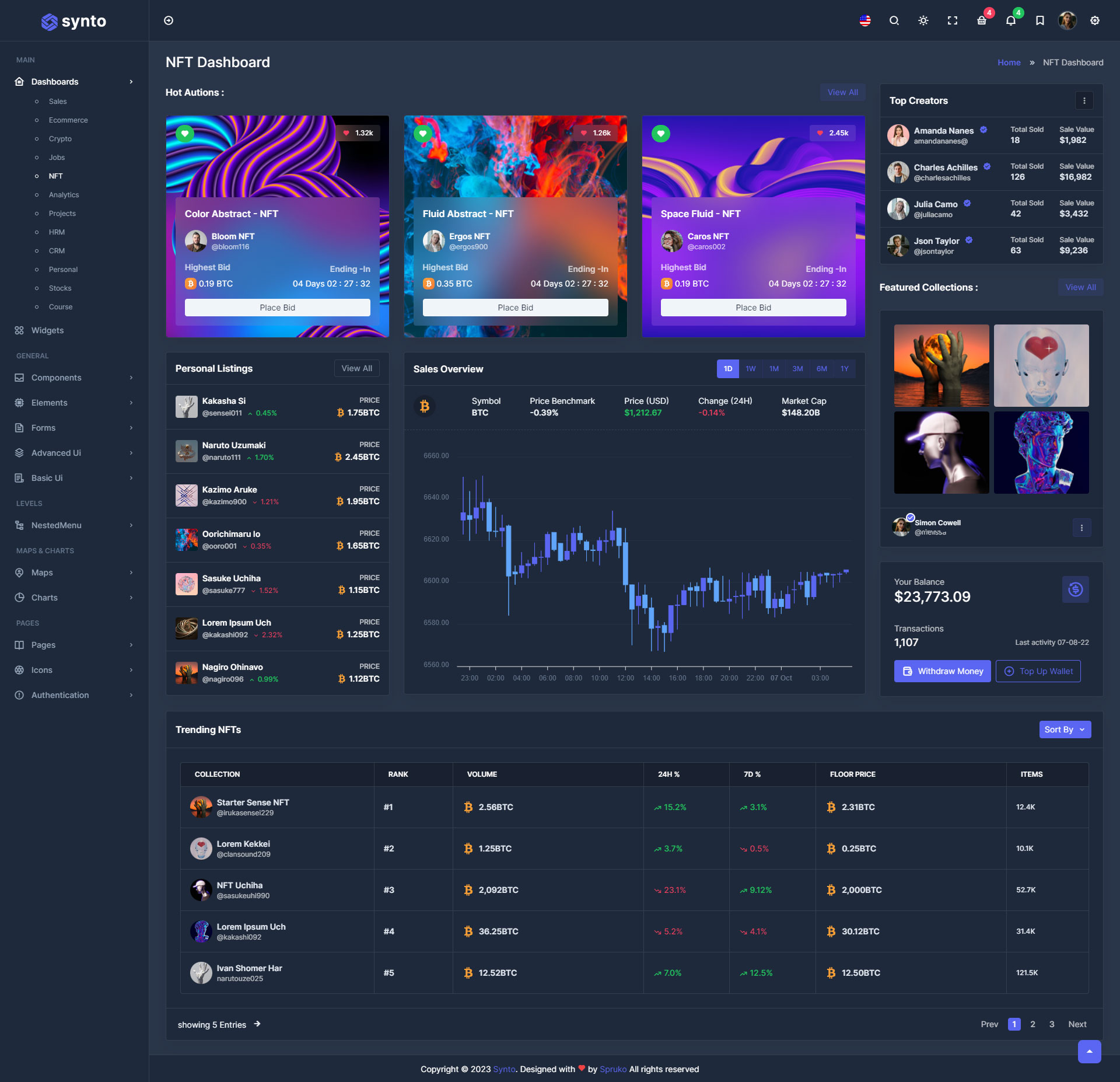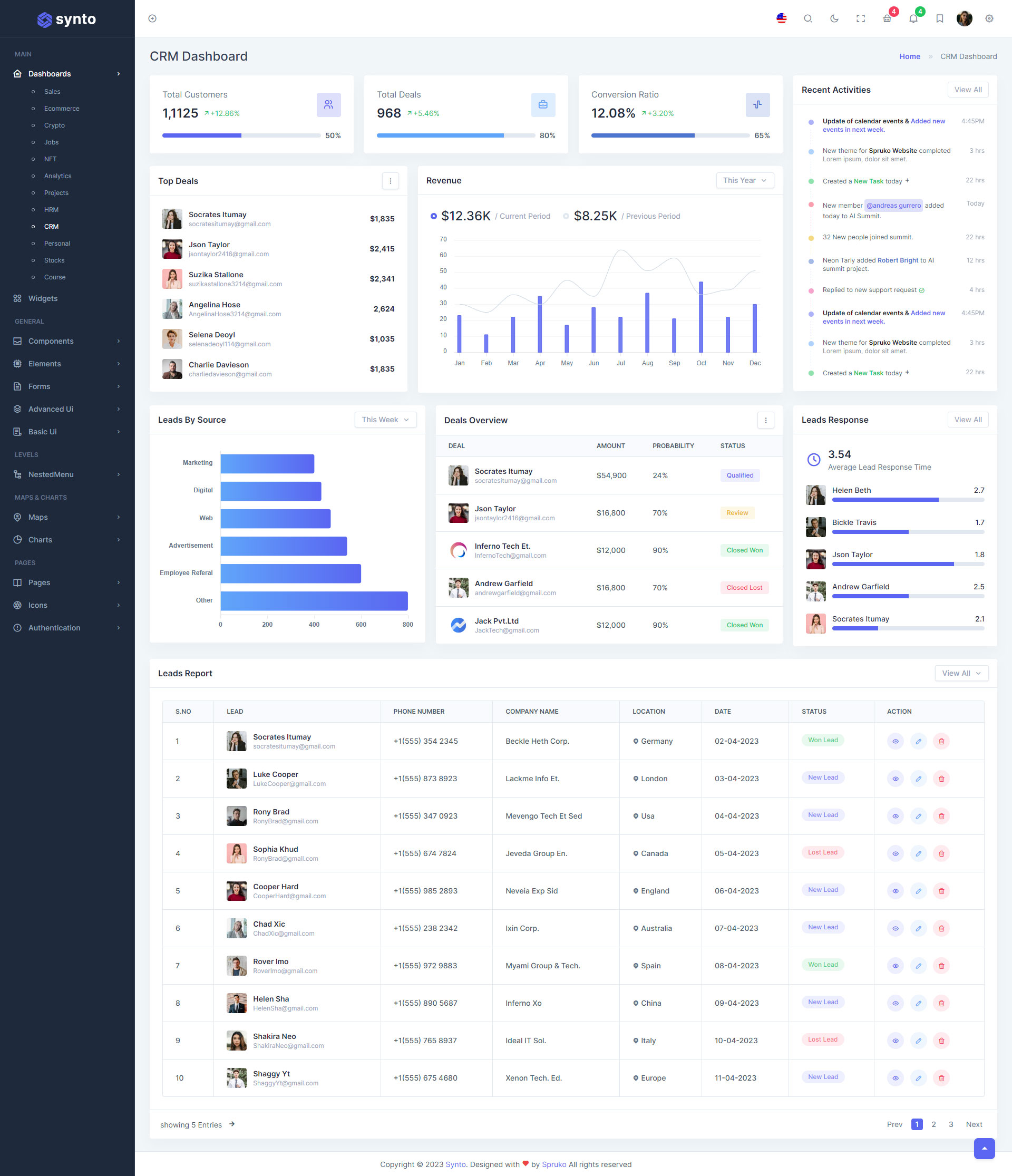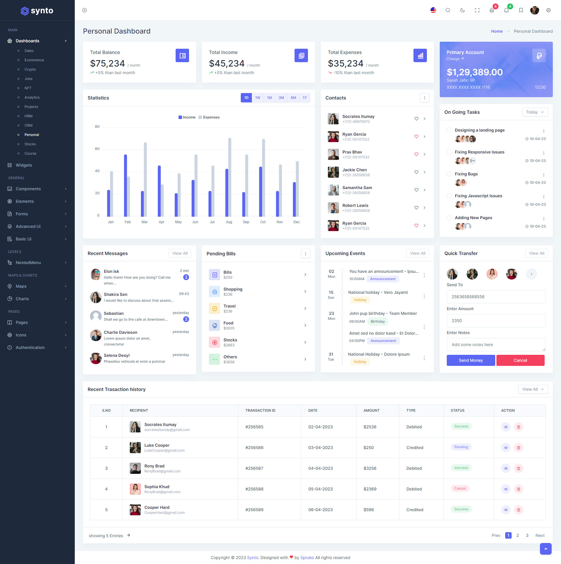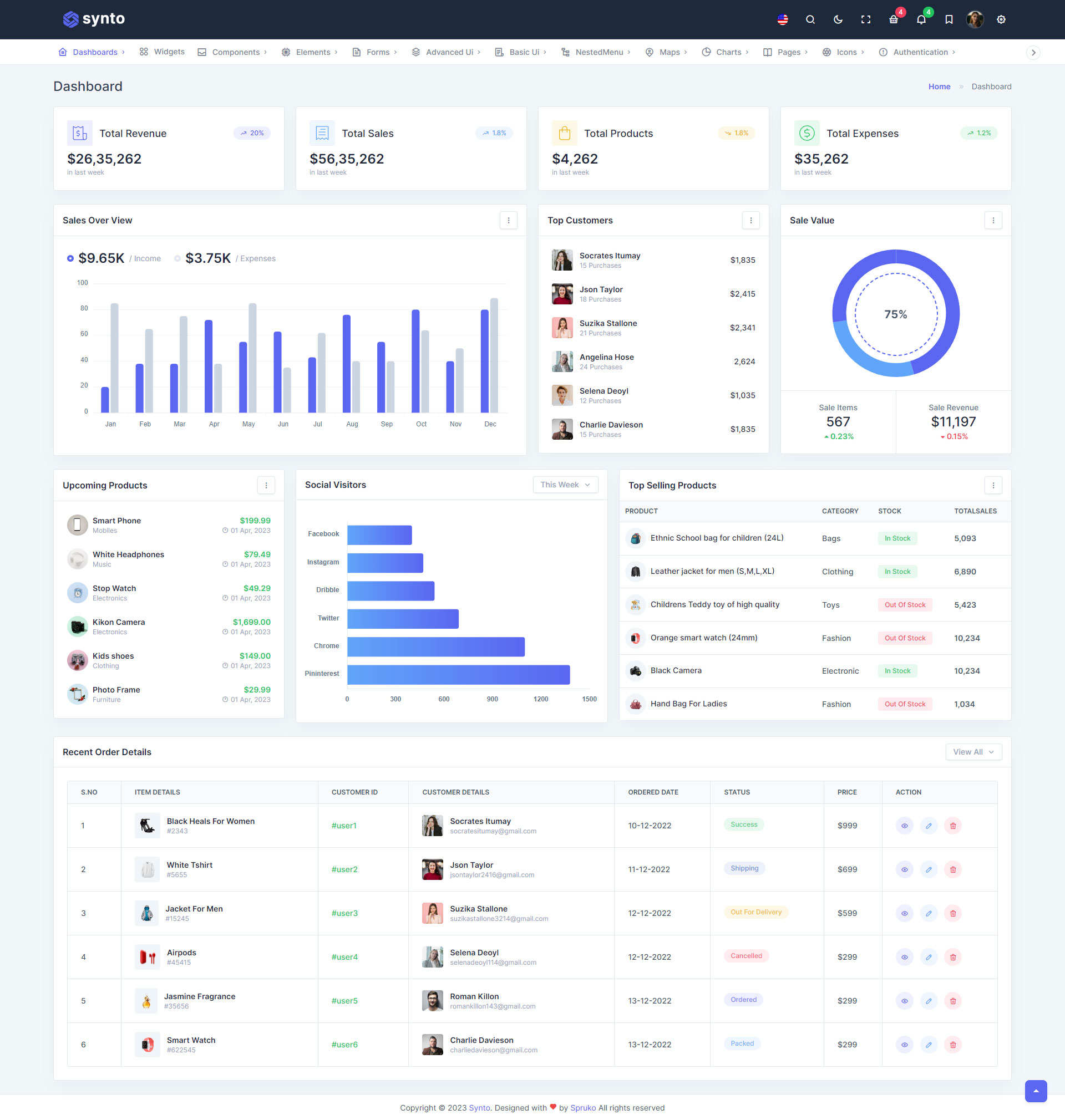 This Synto Nextjs Admin template comes with 12 beautiful dashboards and different types of themes. So that users can choose their best theme and customize the template according to their choice.