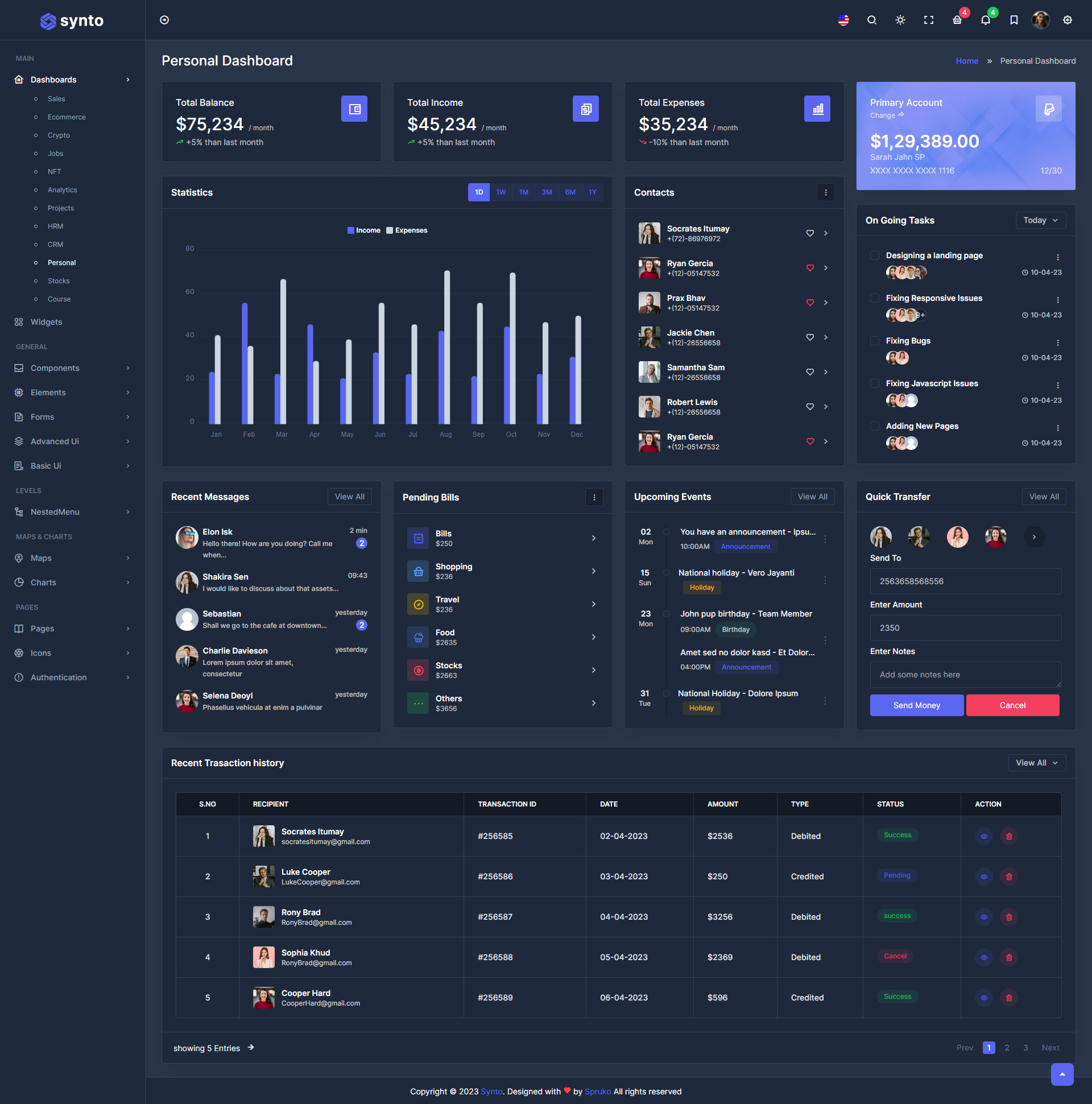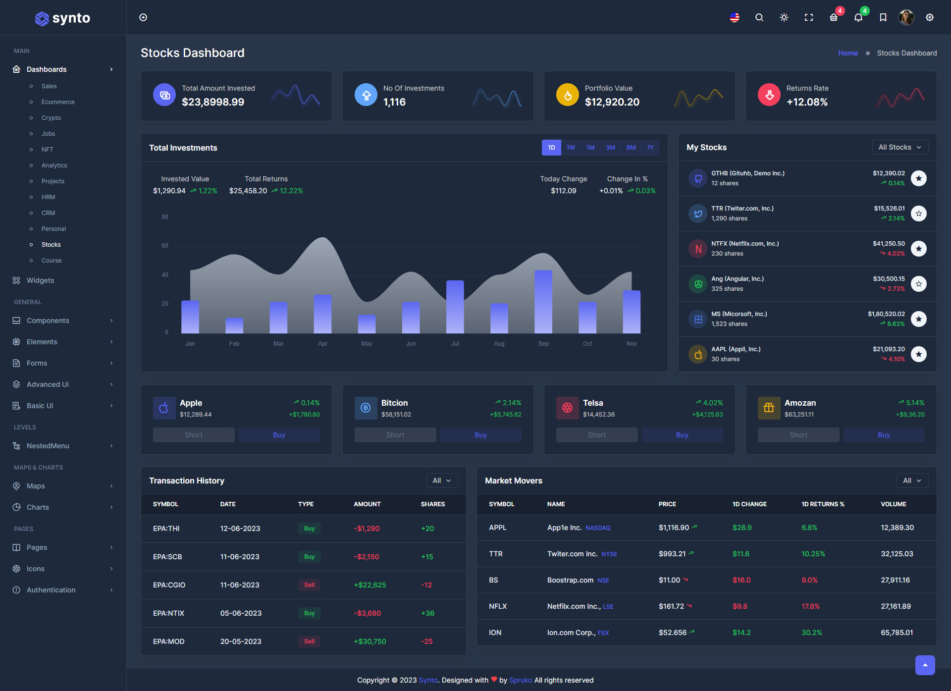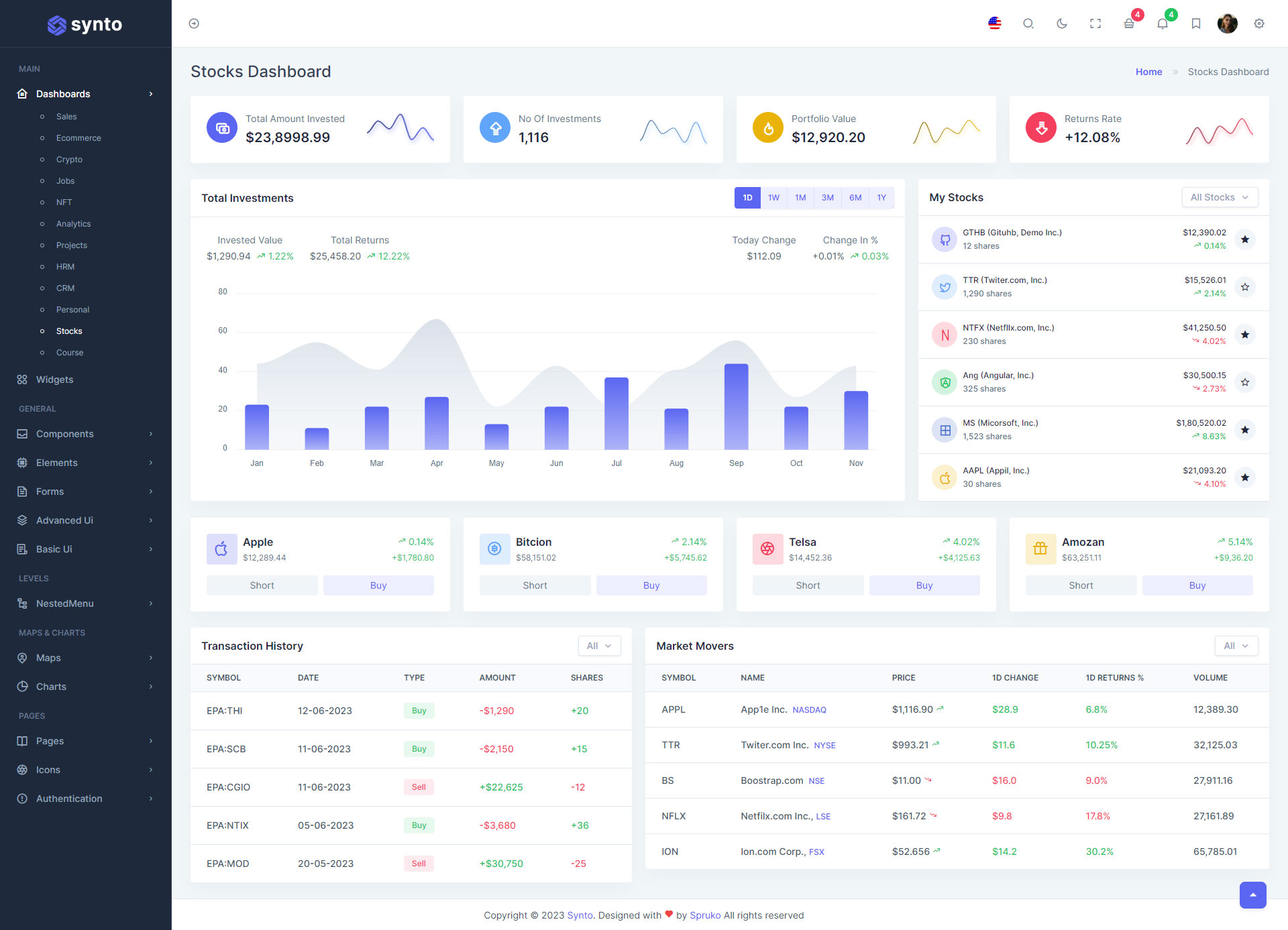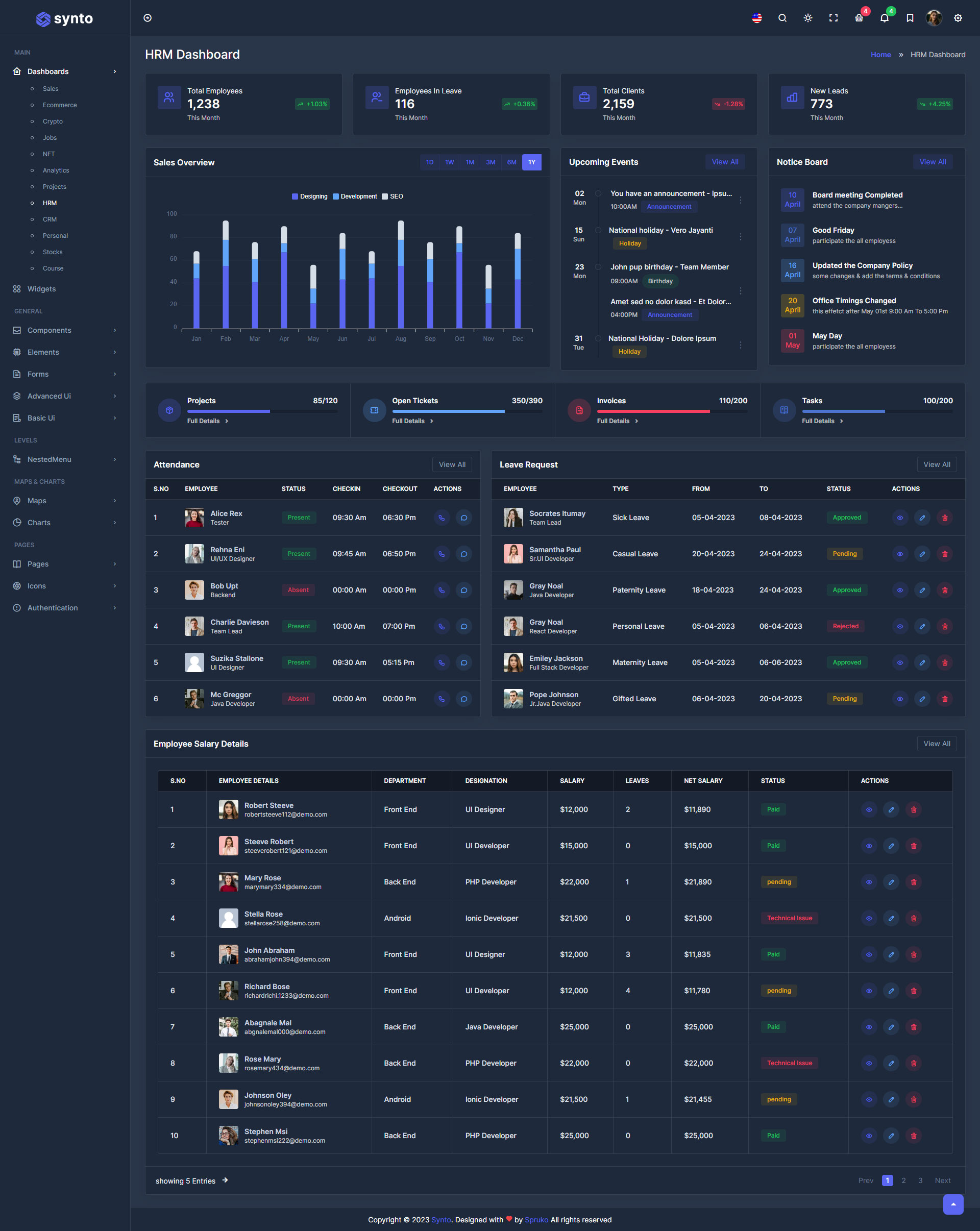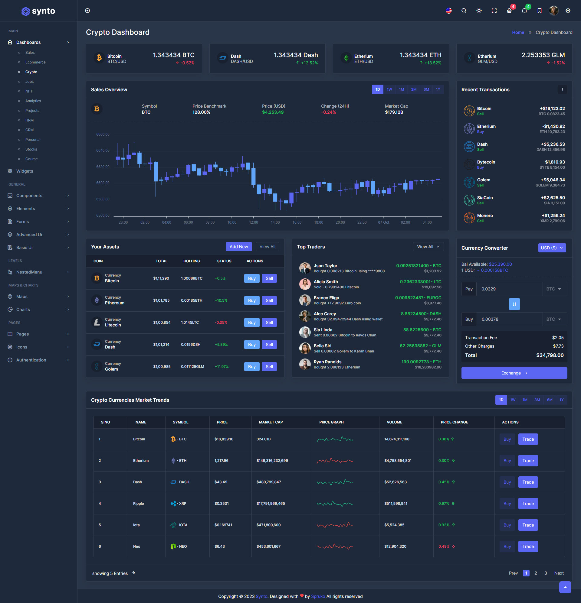 This Synto Nextjs Admin template comes with 12 beautiful dashboards and different types of themes. So that users can choose their best theme and customize the template according to their choice.