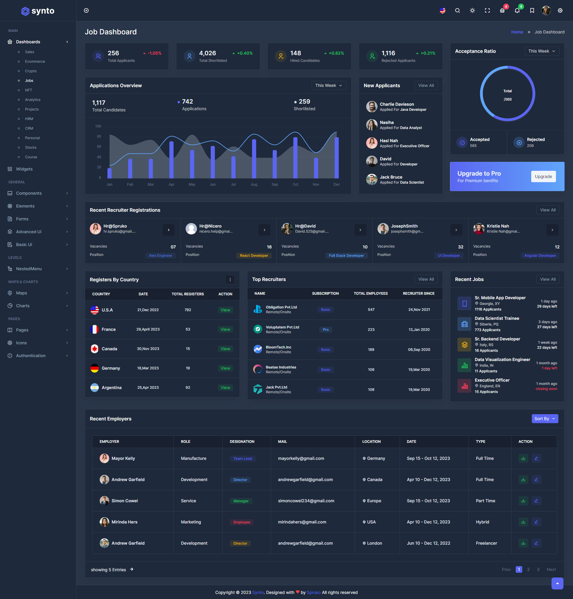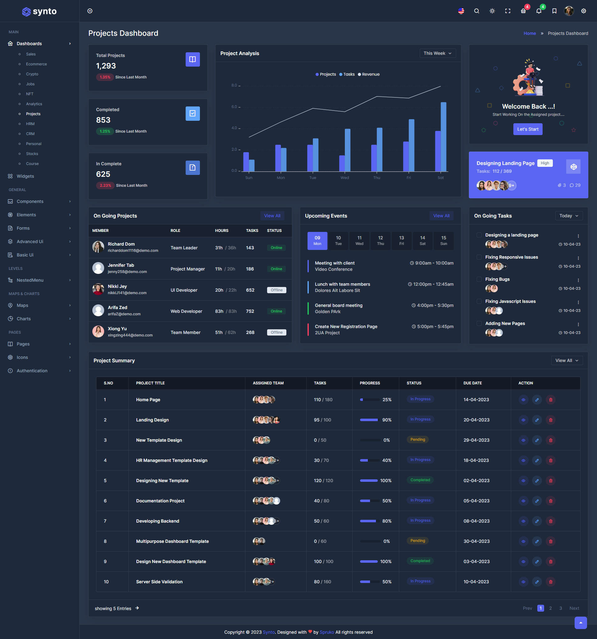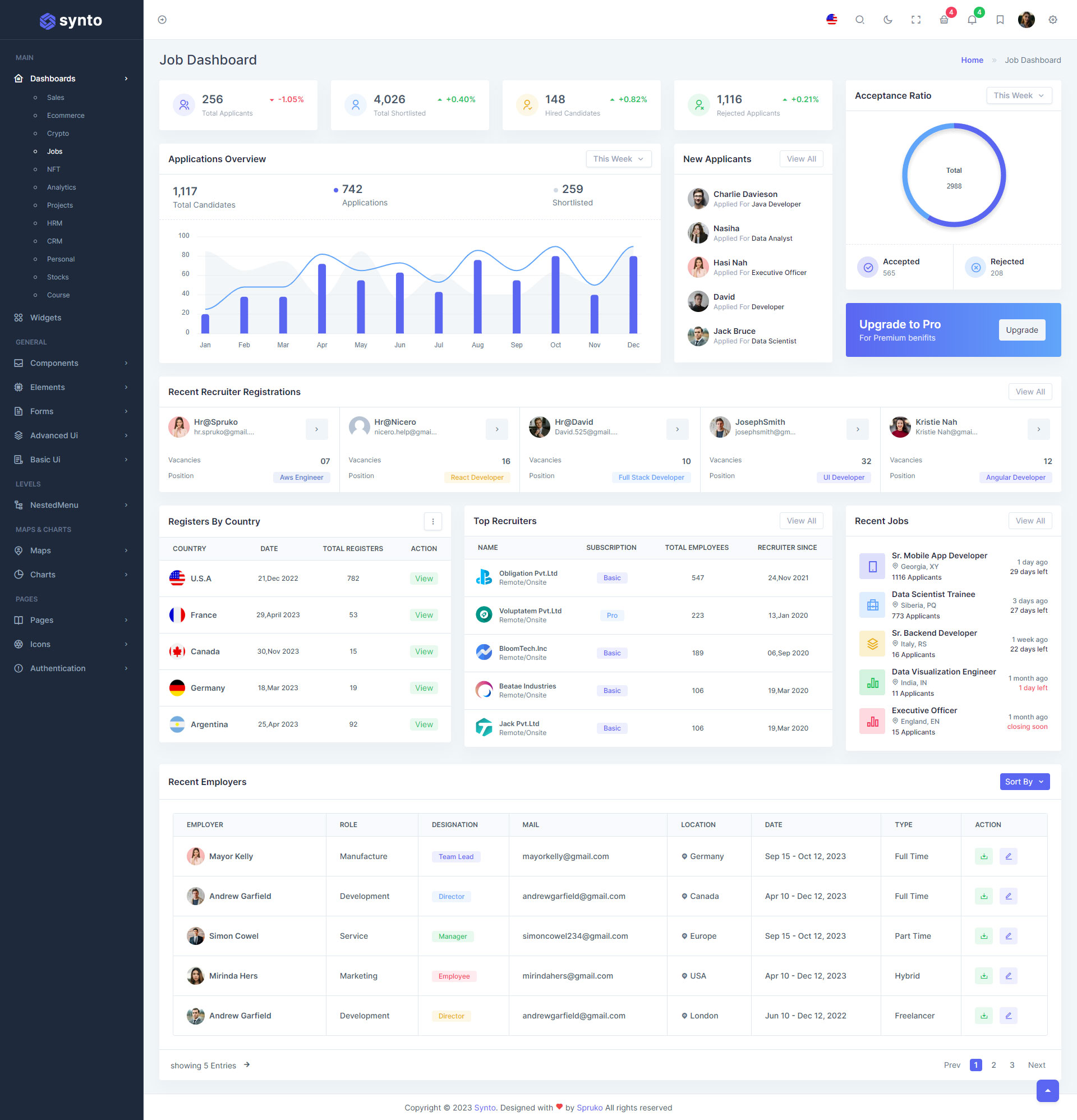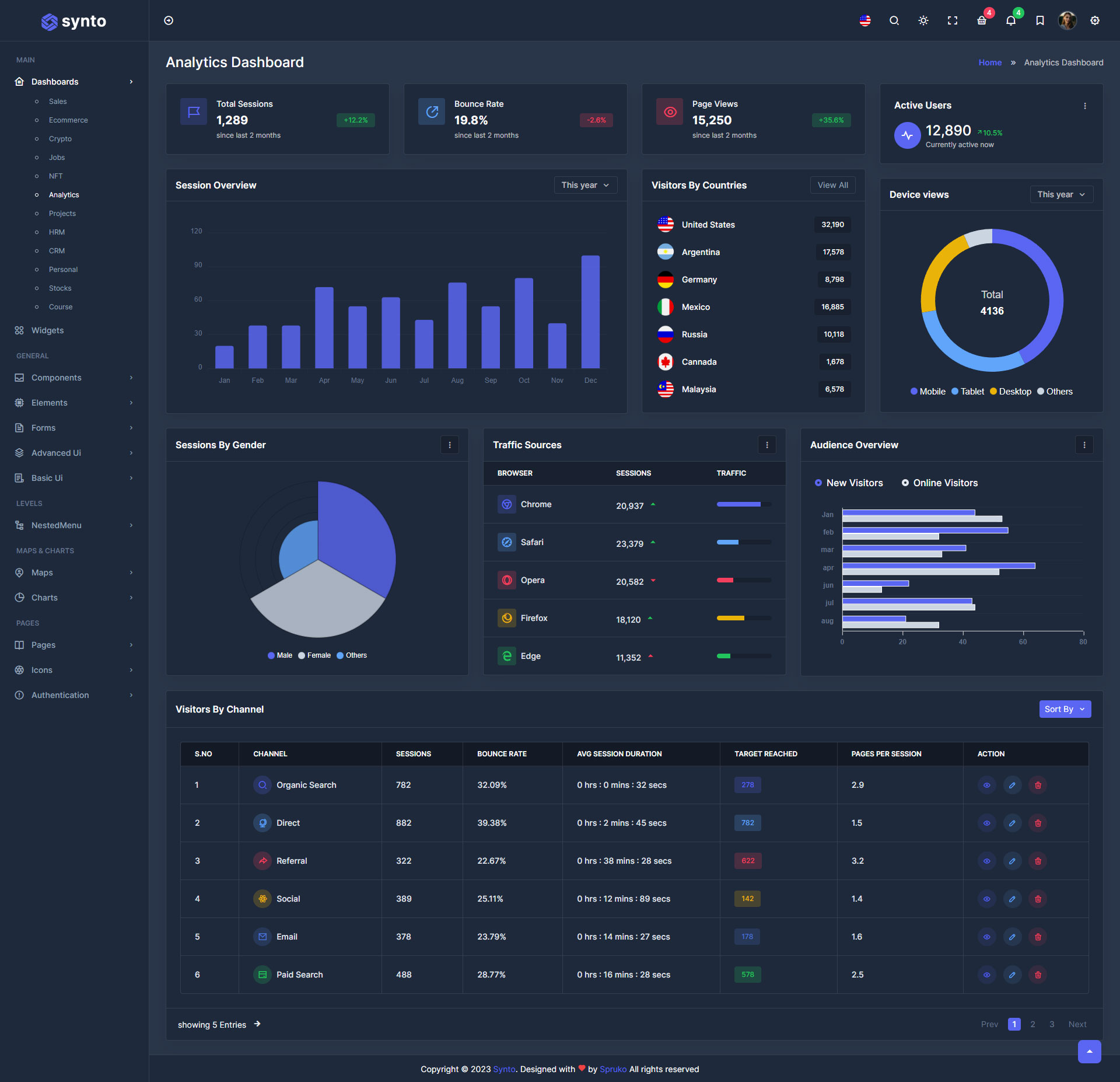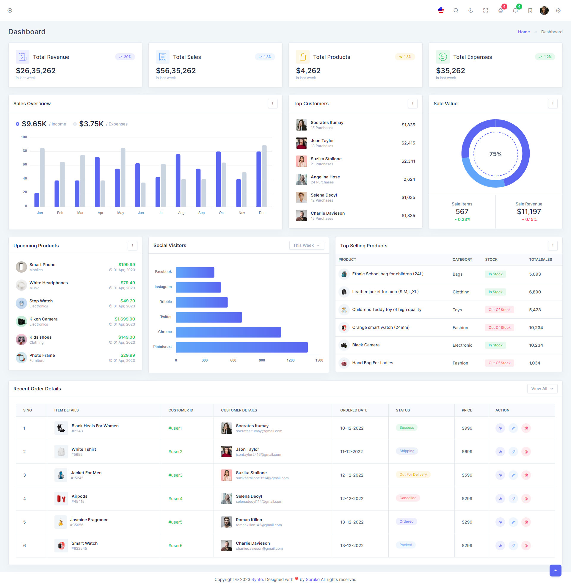 This Synto Nextjs Admin template comes with 12 beautiful dashboards and different types of themes. So that users can choose their best theme and customize the template according to their choice.
