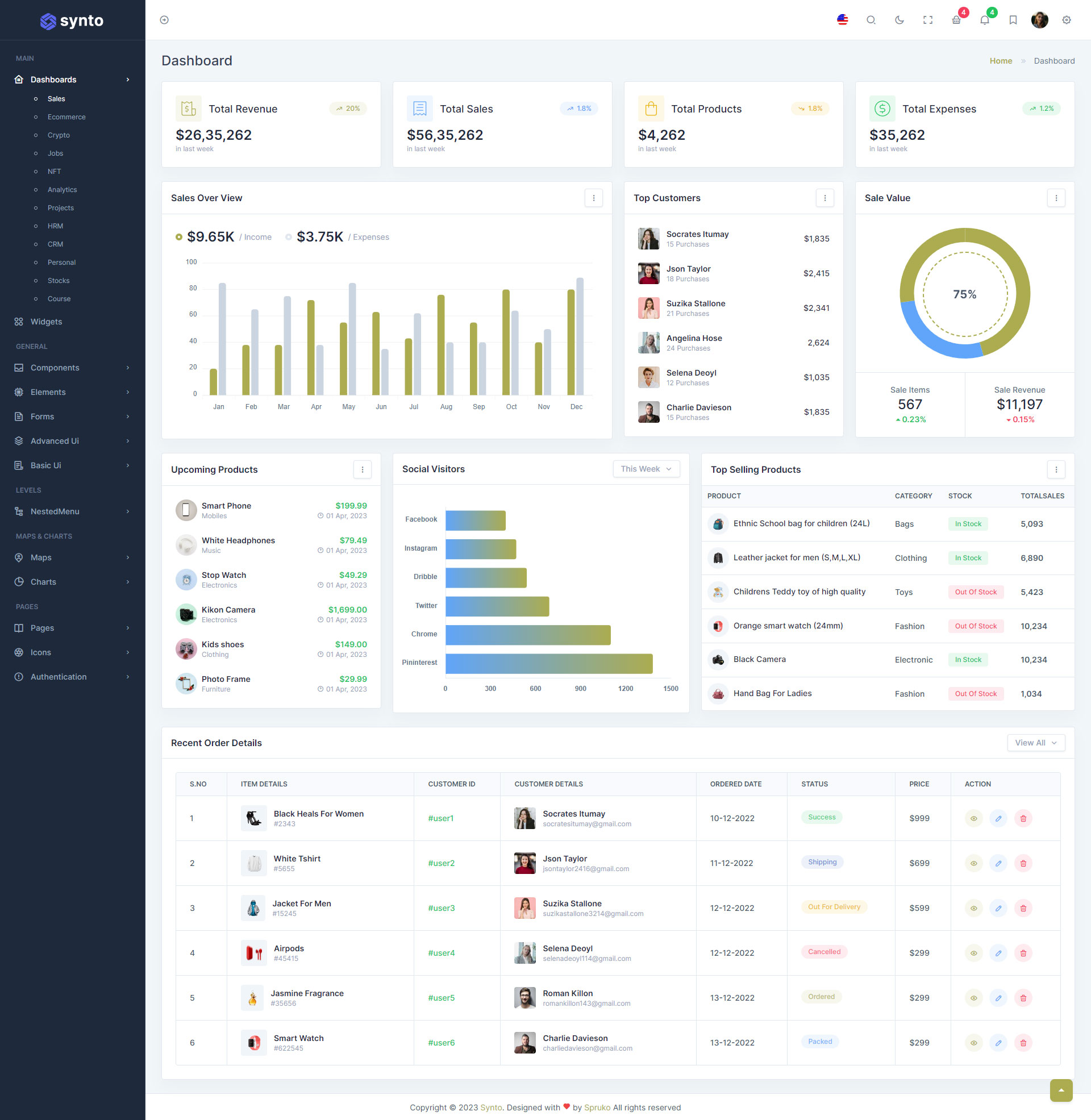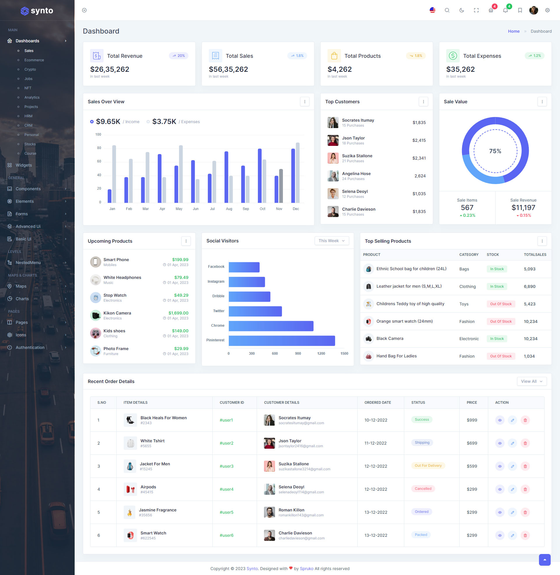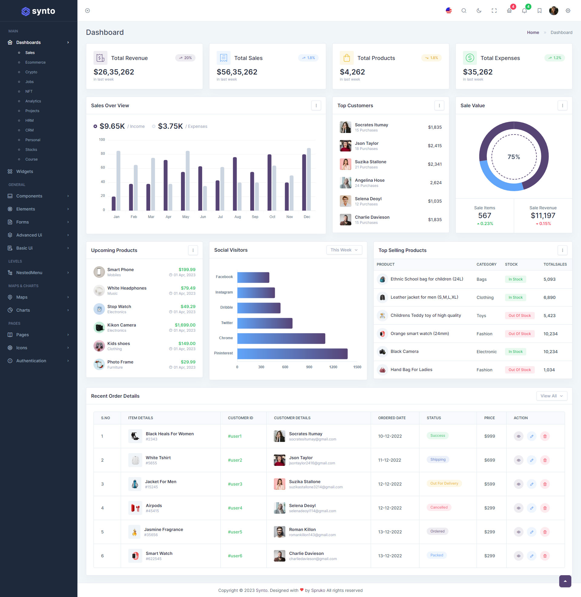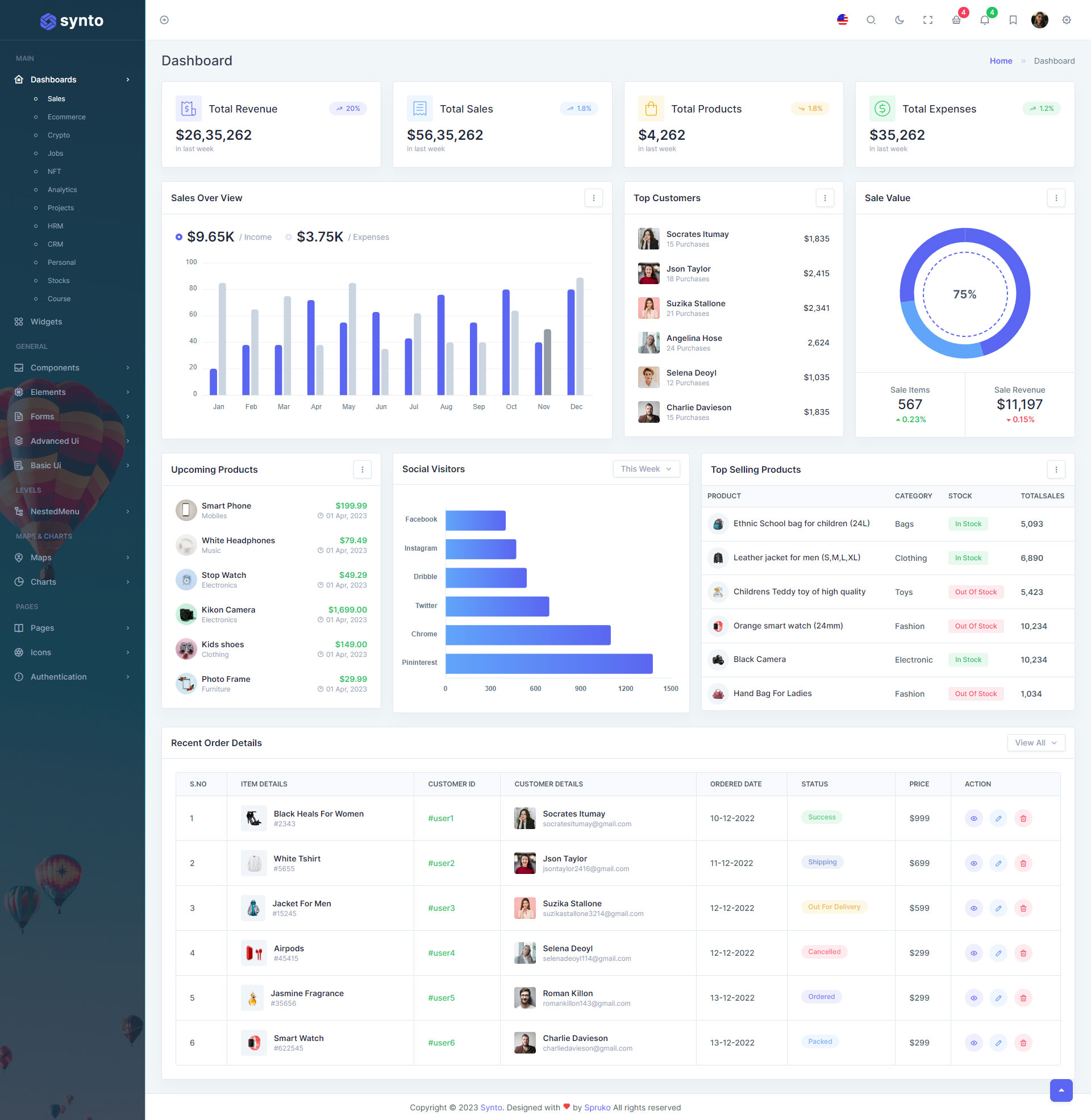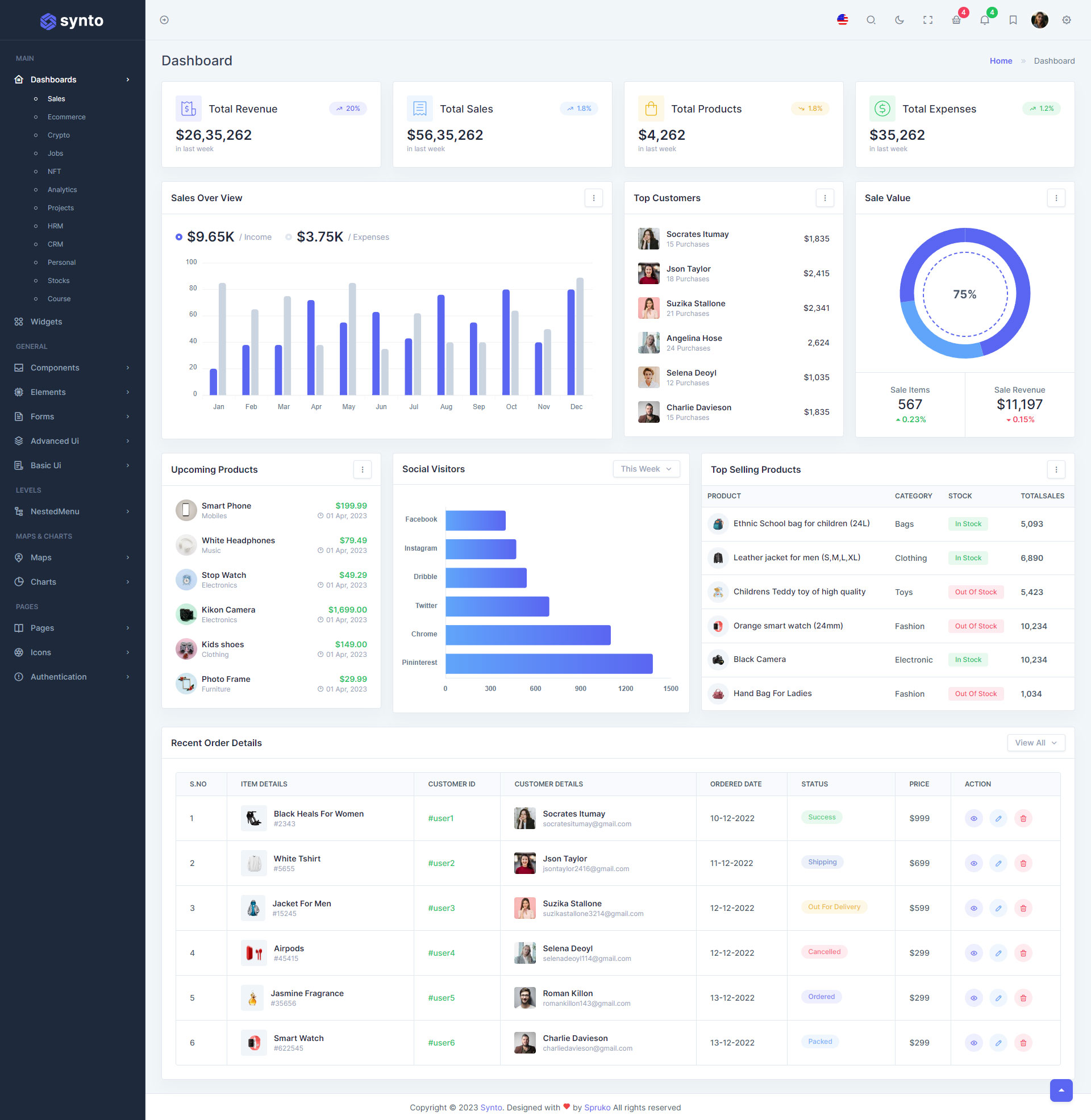 This Synto Nextjs Admin template comes with 12 beautiful dashboards and different types of themes. So that users can choose their best theme and customize the template according to their choice.