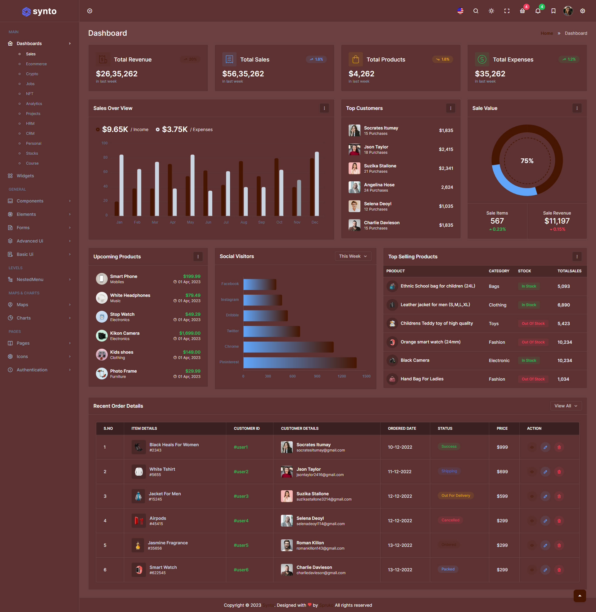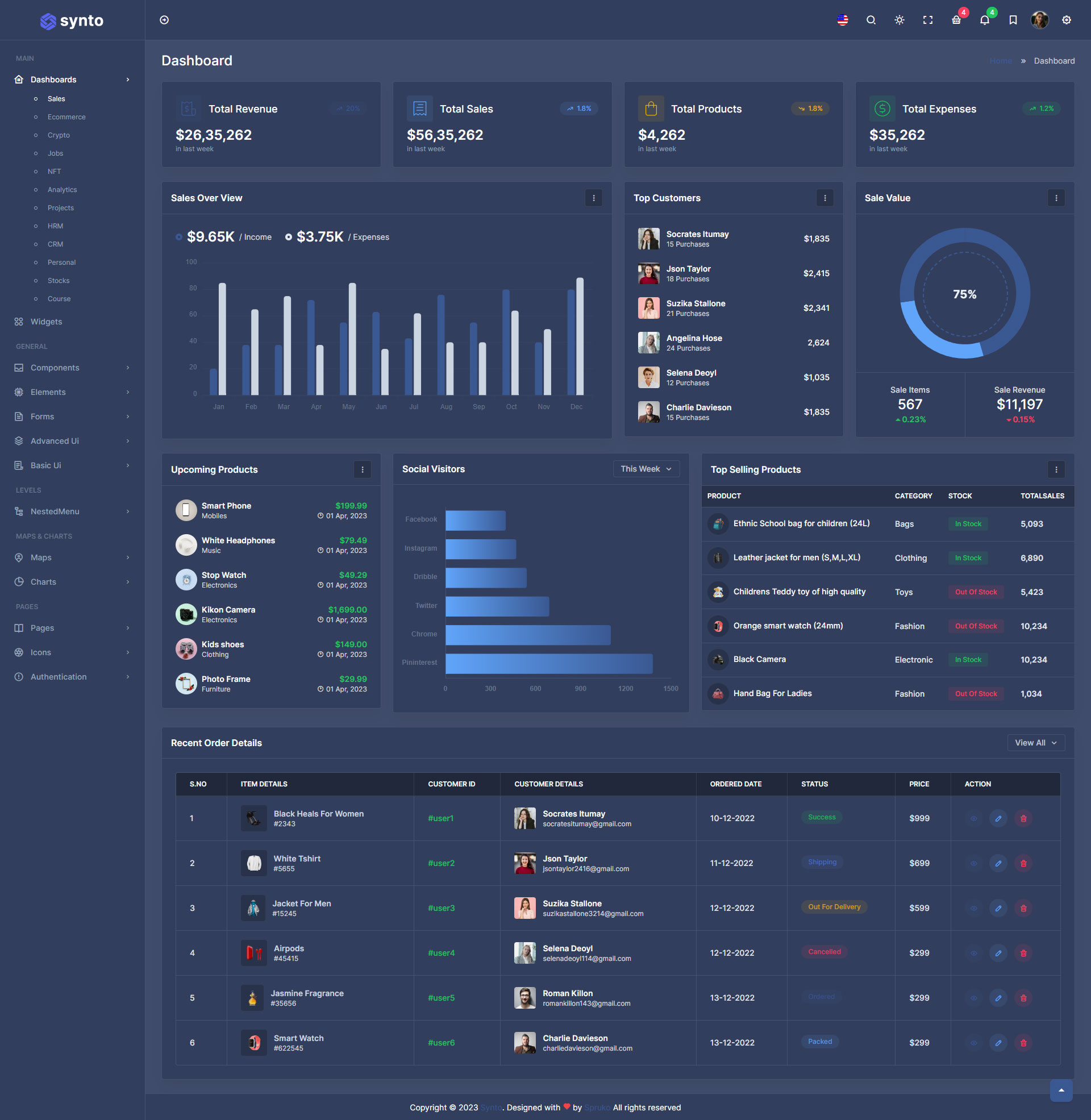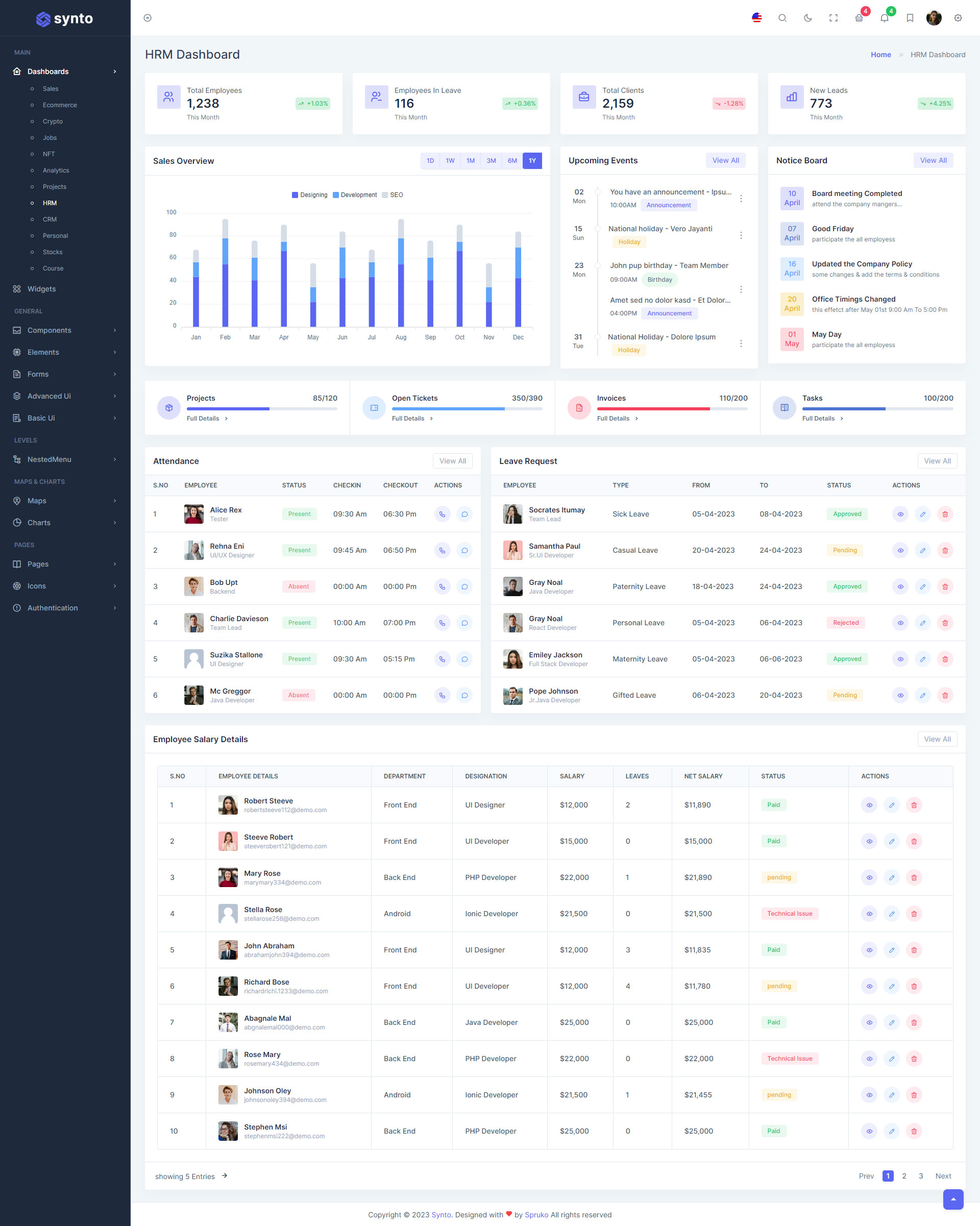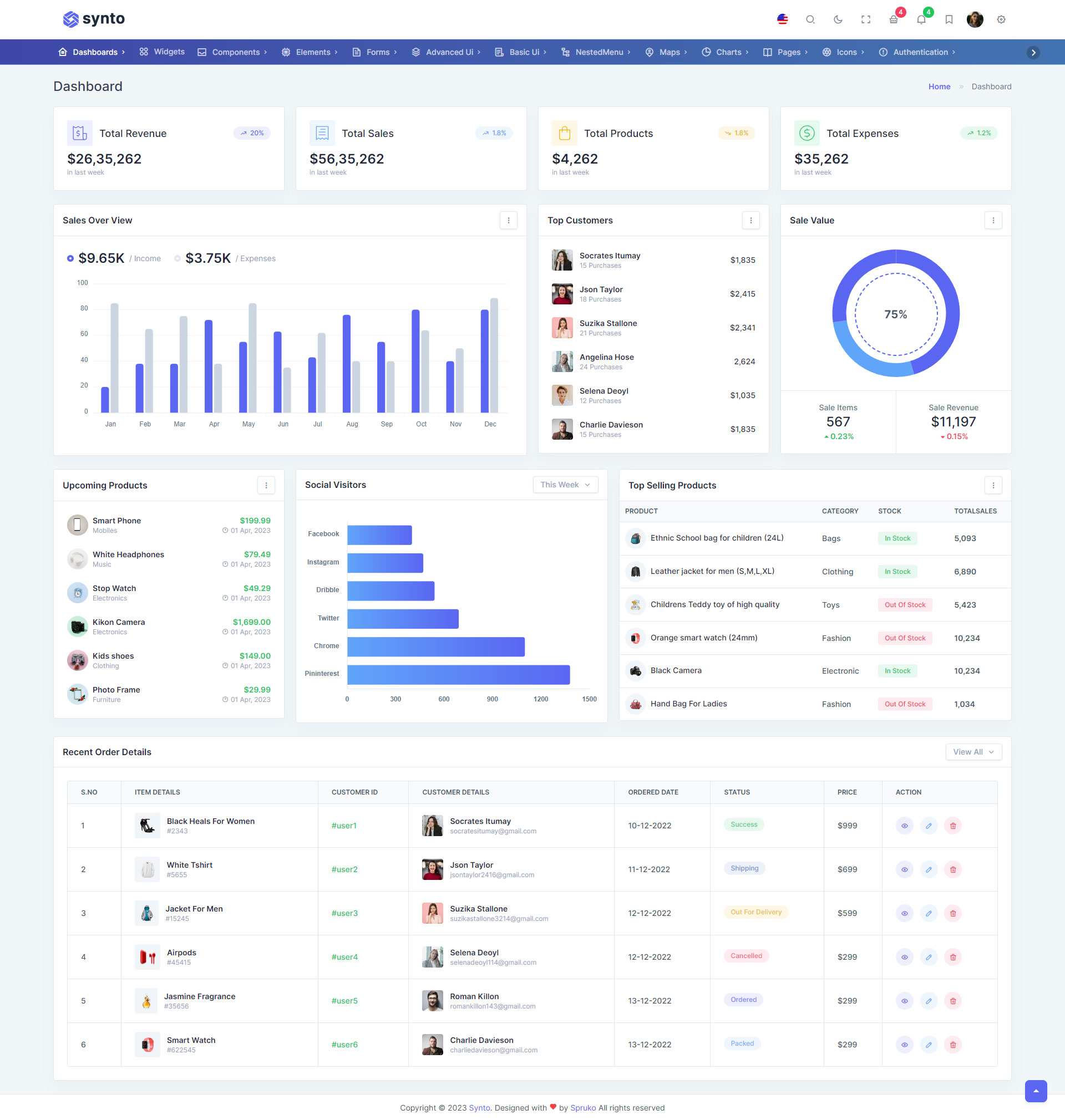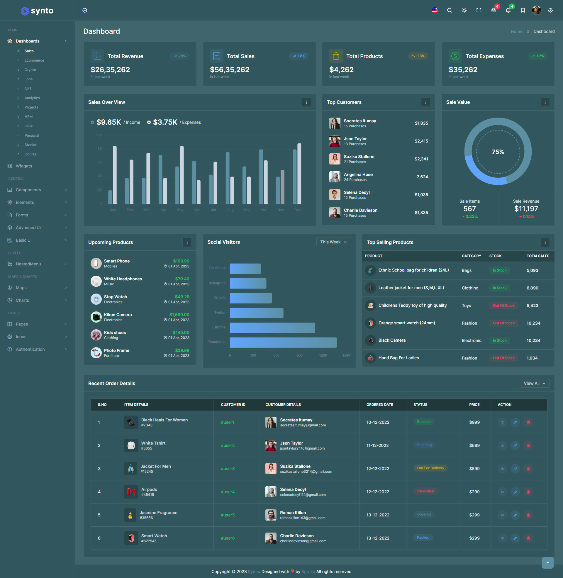 This Synto Nextjs Admin template comes with 12 beautiful dashboards and different types of themes. So that users can choose their best theme and customize the template according to their choice.