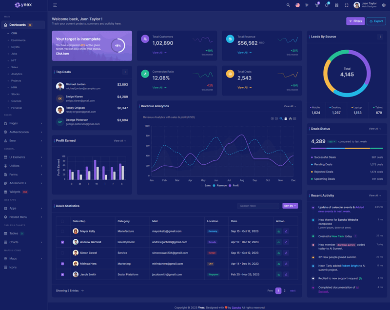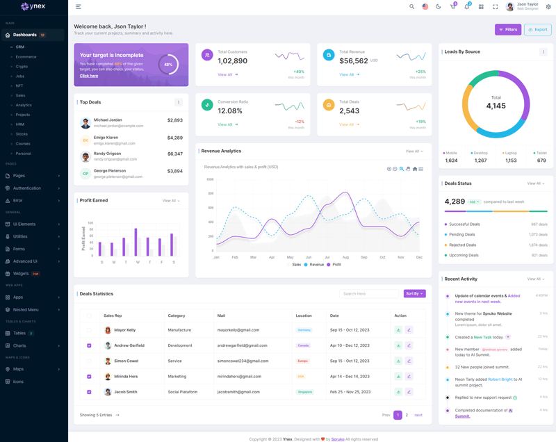 Ynex - Now you can use this Ynex Nextjs App-Router Typescript & Tailwind CSS admin template to design stunning dashboards that will wow your target viewers or users to no end. To create a good and well-structured dashboard, you need to start from scratch with Nextjs, SCSS, CSS, and TS and with lots of coding, but by using this Ynex - Nextjs Typescript & Tailwind CSS admin template, you can customise your dashboard effortlessly within no time.