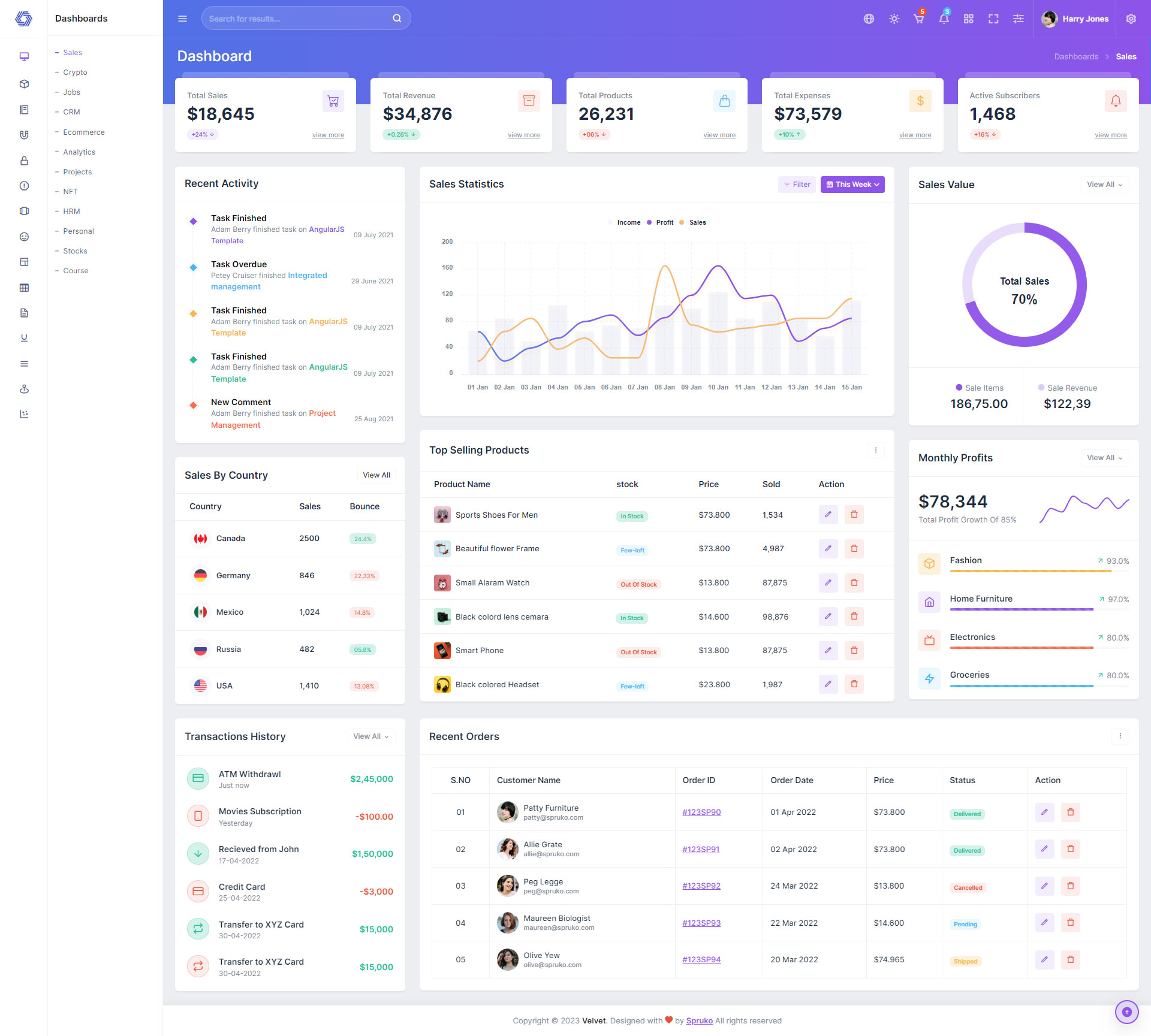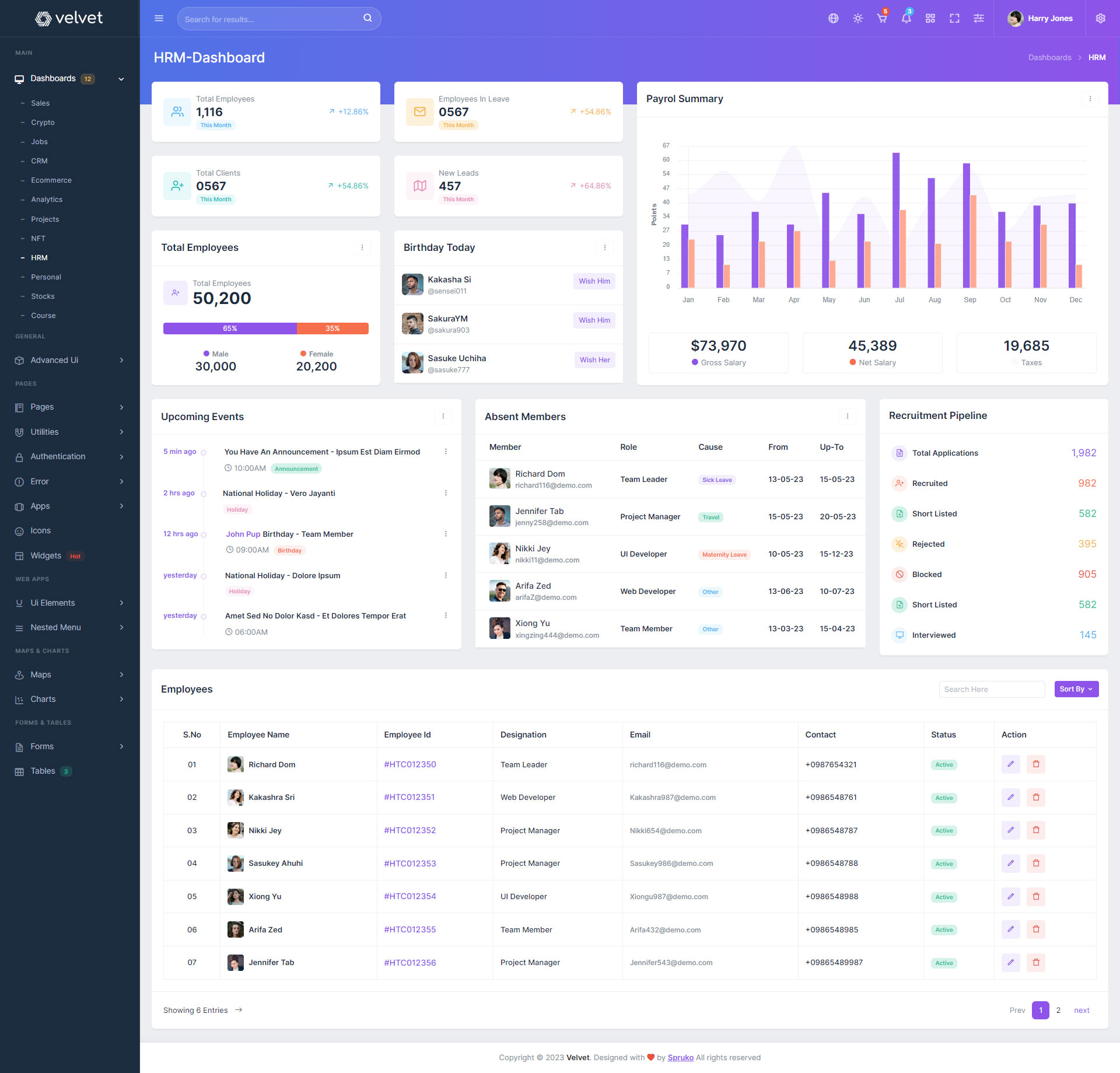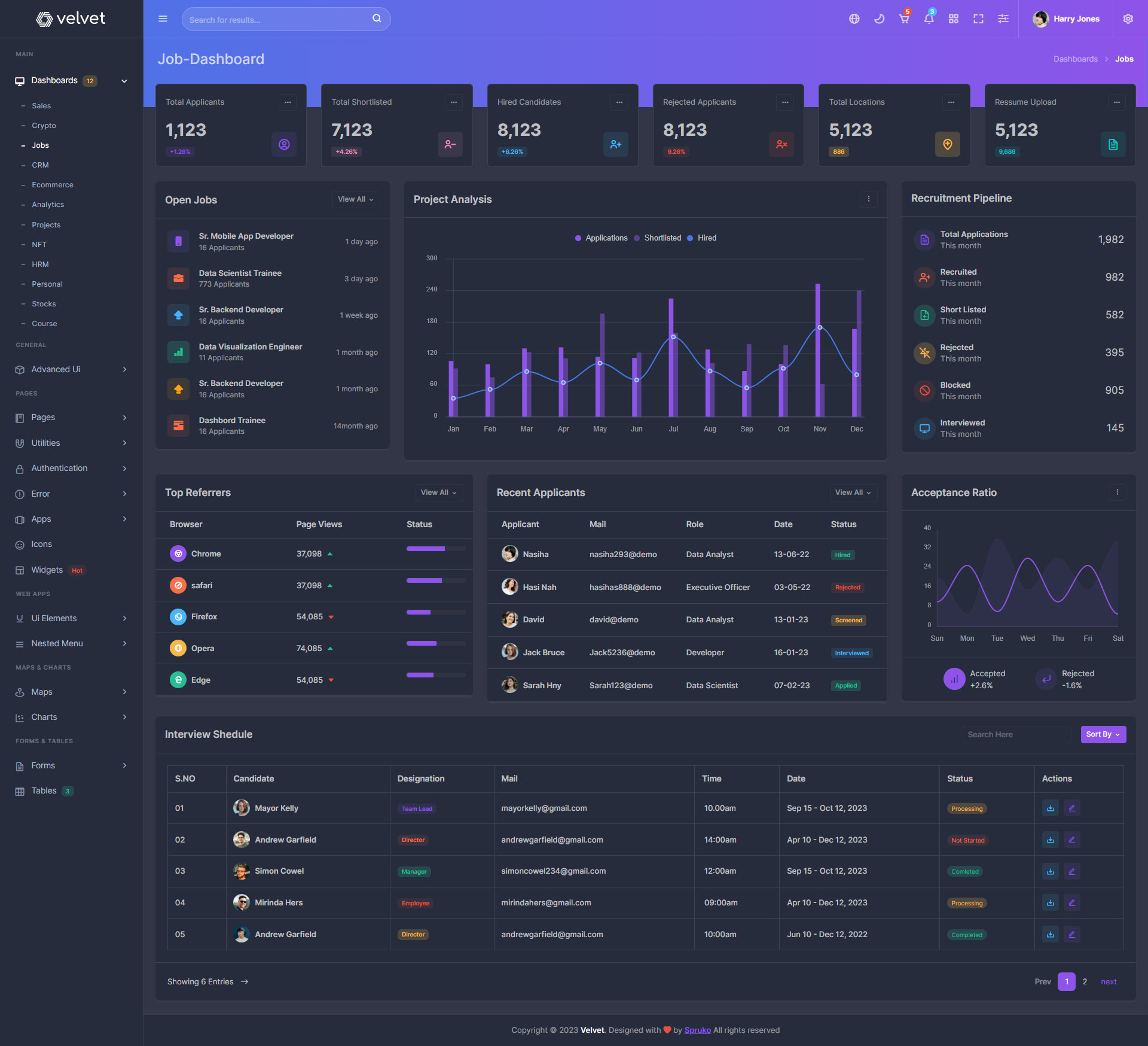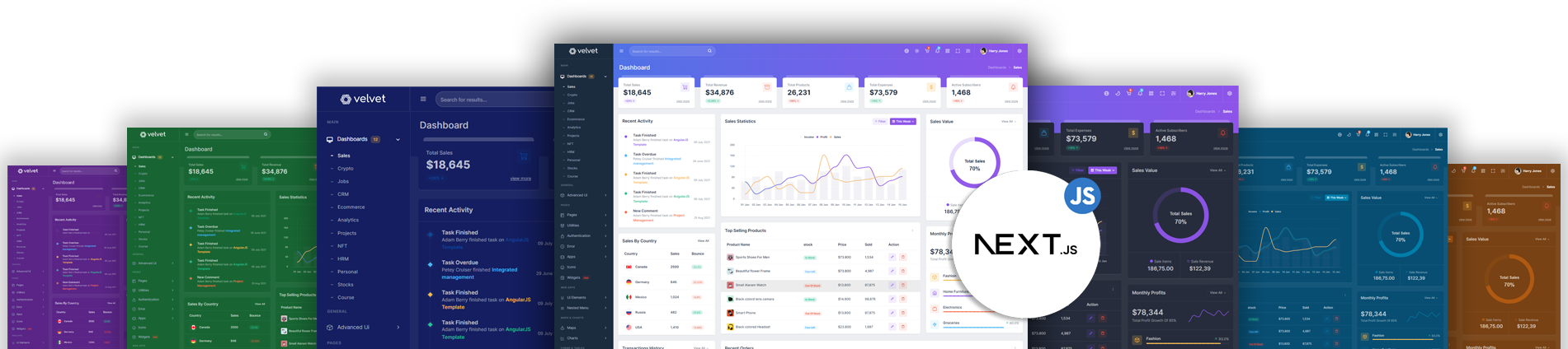 Here, Velvet 12 beautiful dashboards and comes with different types of themes. So that users can choose their best theme and customize the Velvet - NextJS Admin Template according to their choice.