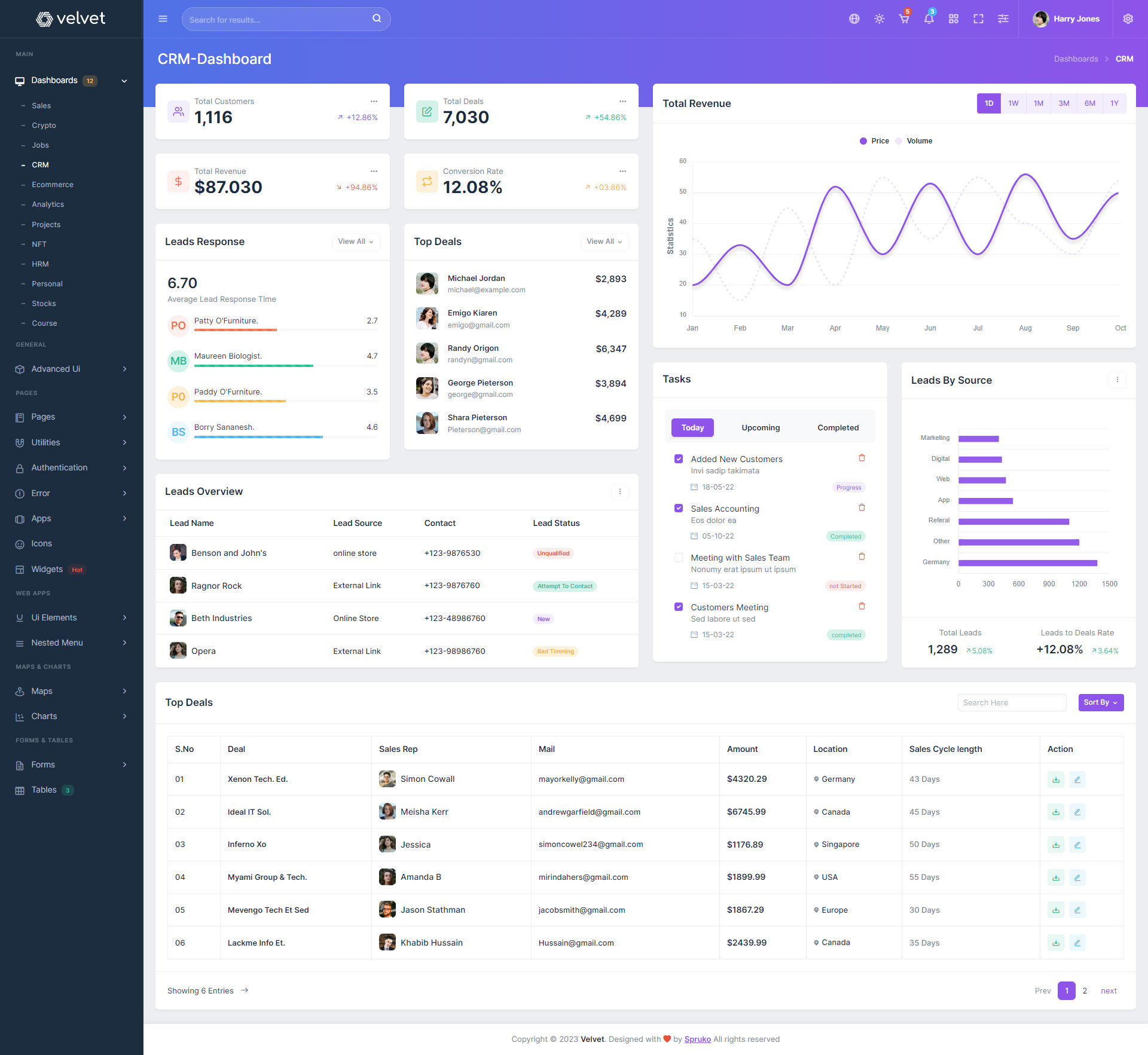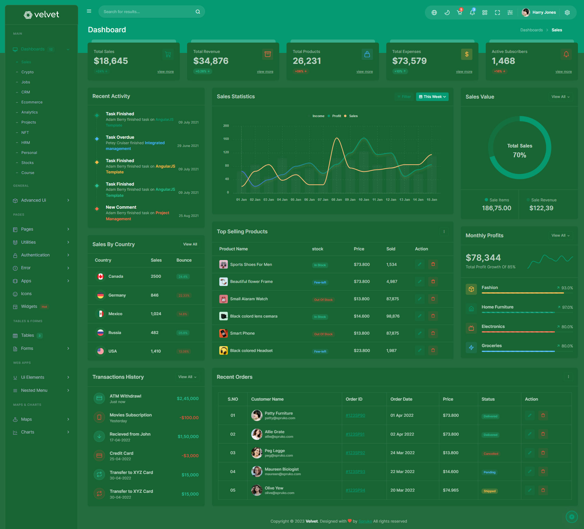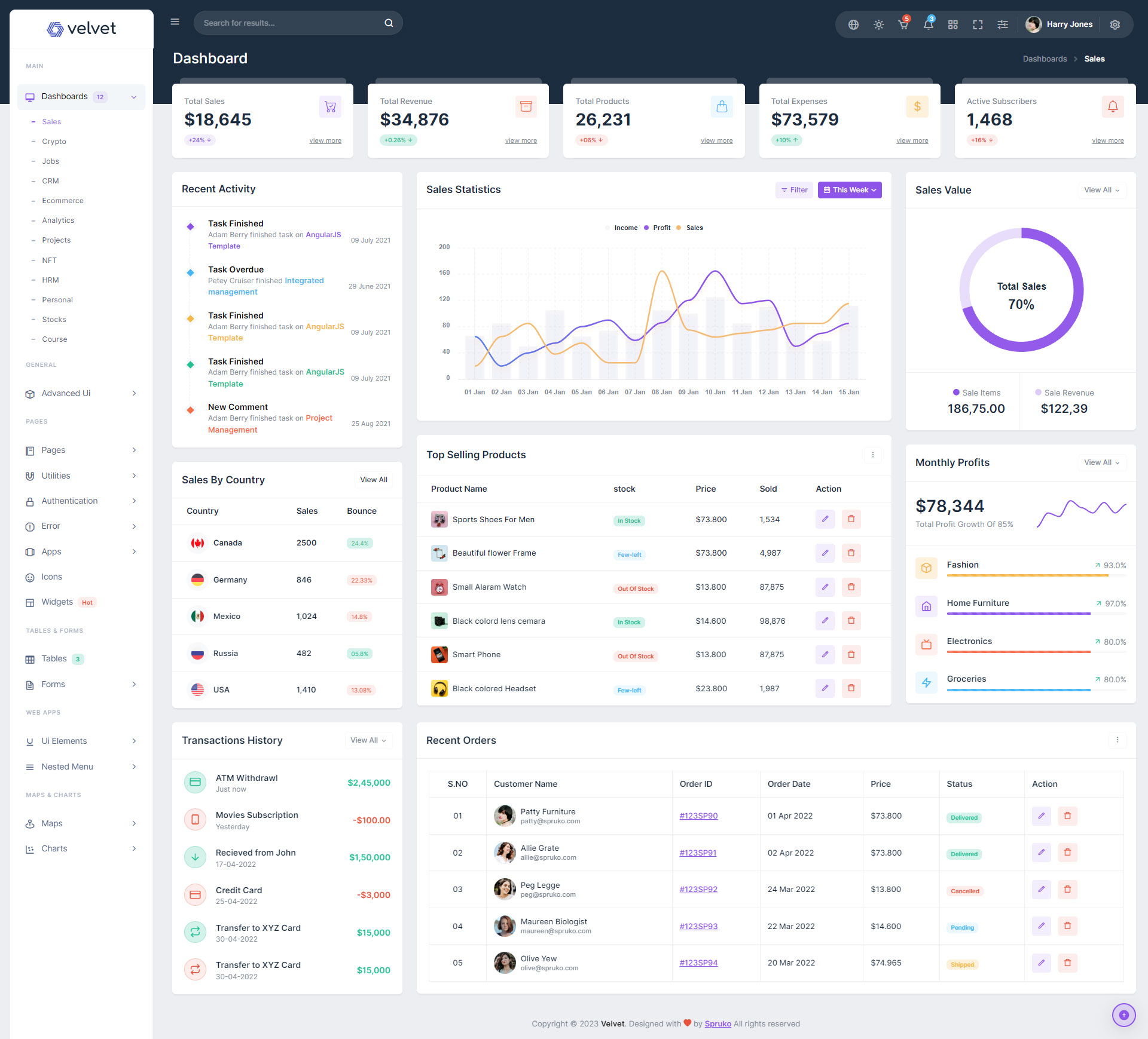 Here, Velvet 12 beautiful dashboards and comes with different types of themes. So that users can choose their best theme and customize the Velvet - NextJS Admin Template according to their choice.