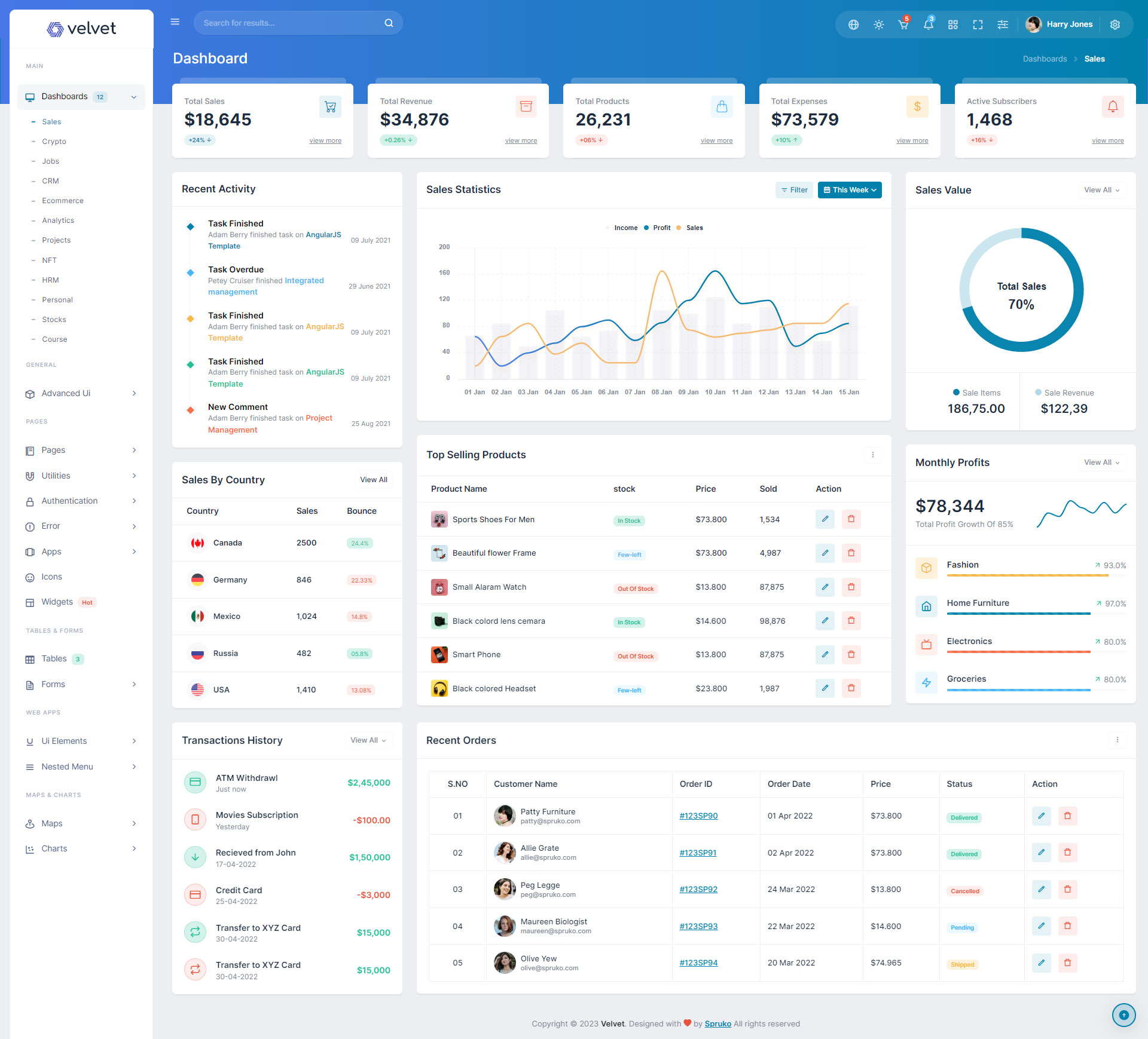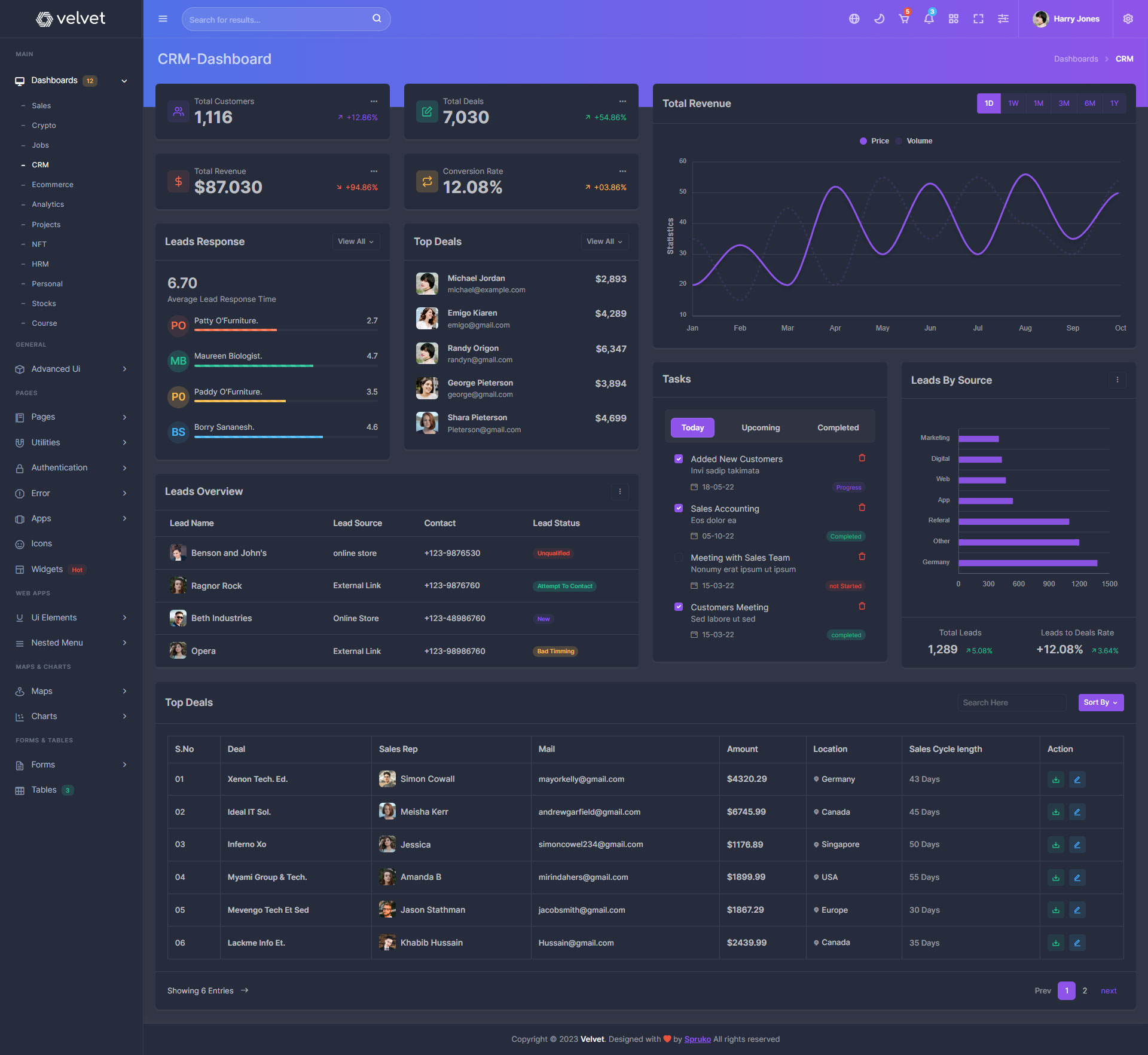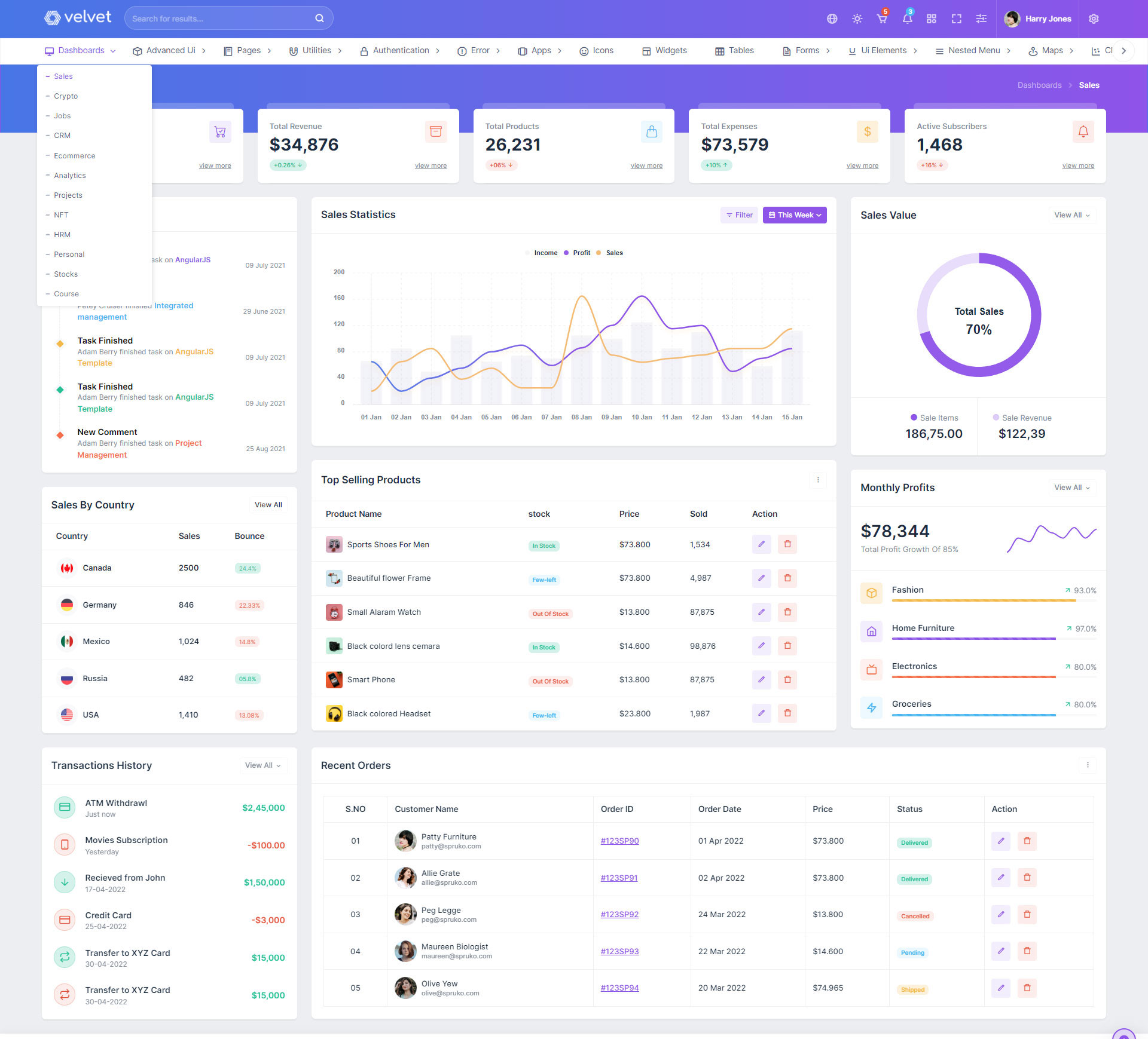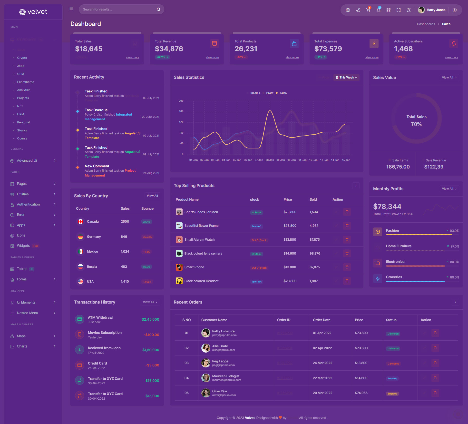 Here, Velvet 12 beautiful dashboards and comes with different types of themes. So that users can choose their best theme and customize the Velvet - NextJS Admin Template according to their choice.