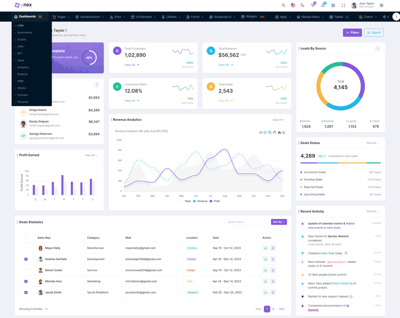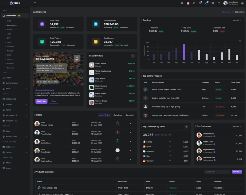 The Ynex React Type Admin Dashboard Template comes with a wealth of ready-to-use features, saving developers significant time with its array of pre-built functionalities.