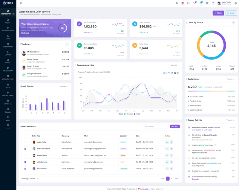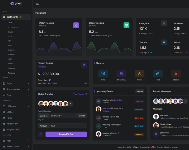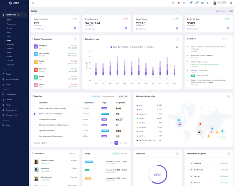 Here, Ynex 12 beautiful dashboards and comes with different types of themes. So that users can choose their best theme and customize the Ynex - Premium Bootstrap Admin Template according to their choice.