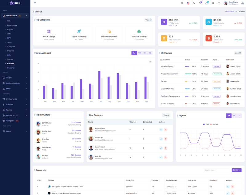 Here are some of the pages in Ynex NextJS admin template , no need of additional customization required for this template, because we have designed perfectly and this template is ready to use.
